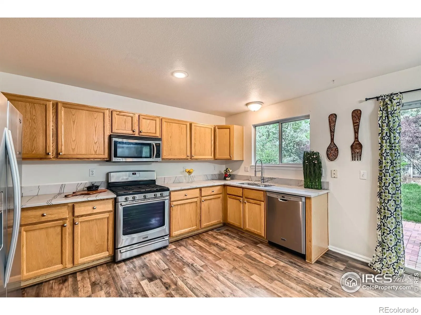 Tucked at the end of a quiet cul-de-sac with no through traffic, this beautifully renovated 3-bed, 3-bath home (plus office) offers nearly 2,100 sq ft of light-filled living space. An incredible value compared to nearby homes, this property combines comfort, style, and a desirable setting.Step inside to find wood-look vinyl floors across the main level and an open-concept kitchen featuring granite countertops, stainless appliances, and a spacious pantry-perfect for everyday cooking and entertaining alike. The kitchen flows seamlessly to the dining area, family room with fireplace, and an inviting outdoor patio. A formal living room, powder bath with a custom stone sink, and convenient laundry complete the main floor.Upstairs, the private primary retreat includes a large ensuite bath, walk-in closet, and an adjacent office/den-ideal for work-from-home or a quiet adult getaway. Two secondary bedrooms and a full bath provide comfortable accommodations. Enjoy tree-lined views from the windows, plus a lush, fenced backyard with brick patio for outdoor relaxation.Additional highlights include a two-car garage, newer roof (2019), and an unfinished basement offering room to expand. The neighborhood features excellent schools, pools, tennis courts, parks, ponds, and miles of trails-all within minutes of both Boulder and Denver.