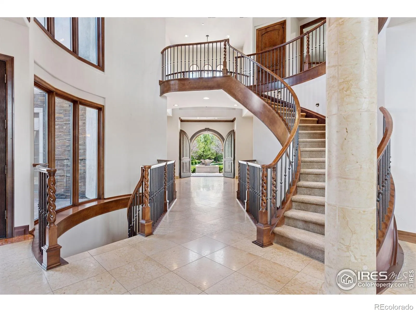 Discover this opulent yet refined architectural masterpiece in the esteemed Legend Ridge community of Niwot that feels like an undiscovered treasure and transports you to five star living every day. This custom home is designed to immerse you in breathtaking views of the spectacular Rocky Mountains and provides the opportunity to embrace a Colorado lifestyle unlike any other. With miles of trails out your door and close proximity to charming downtown Niwot and excellent public and private schools, this one of a kind property is not to be missed. As twilight falls, watch the birds swoop gracefully from arch to arch, moving between flowering trees – a serene backdrop to your evenings. Enjoy a fine Super Tuscan on the covered patio as cyclists and neighbors stroll the wonderful gravel trail with its mountain backdrop on their nightly routines. By sunrise, start your day with a view of the alpenglow touching Long’s Peak, an almost surreal experience framed perfectly by the home’s various viewpoints – courtyards, balconies, and patios.The centerpiece of this home is its stunning three-story curved staircase, topped with an illuminated dome ceiling. Spacious rooms are impeccably detailed with crown moldings, coffered ceilings, and premium designer finishes. The chef’s kitchen flows seamlessly into the great room with soaring ceilings, leading to the covered porch with a Viking gas grill, perfect for entertaining al fresco. The exquisite gardens, complete with water features, are ideal for gatherings under the open sky. The primary suite offers a spa-like bathroom, massive custom closet, sitting area & private balcony facing Long’s Peak. Additional amenities speak to a home that is built for a crowd with plenty of flexibility for multi-generational living – an elevator, 5 en-suite bedrooms, two main floor offices, a high end movie theater, home gym, wine cellar, & six-car heated garage with separate workspace. This exceptional Niwot property offers an unrivaled lifestyle.