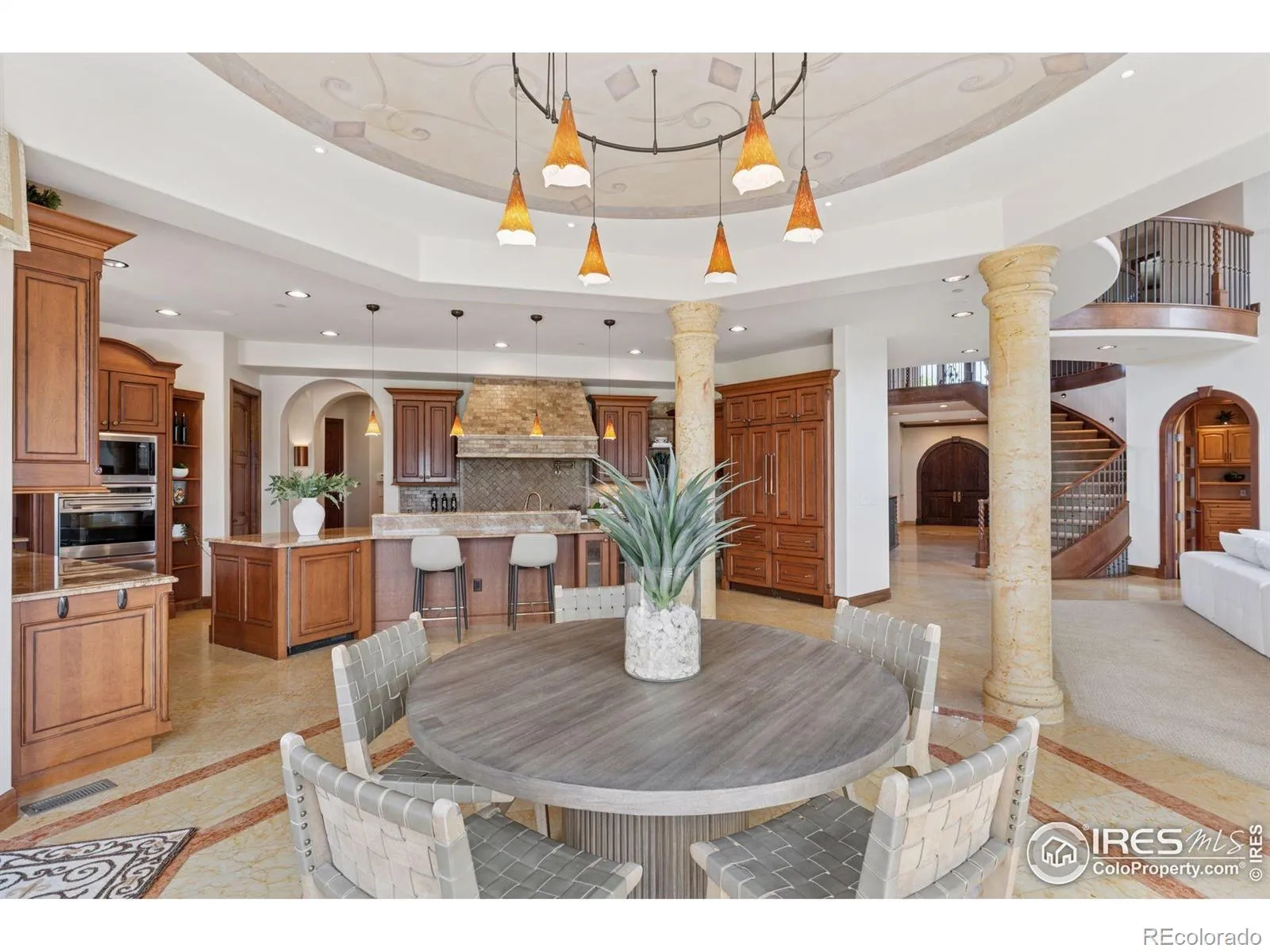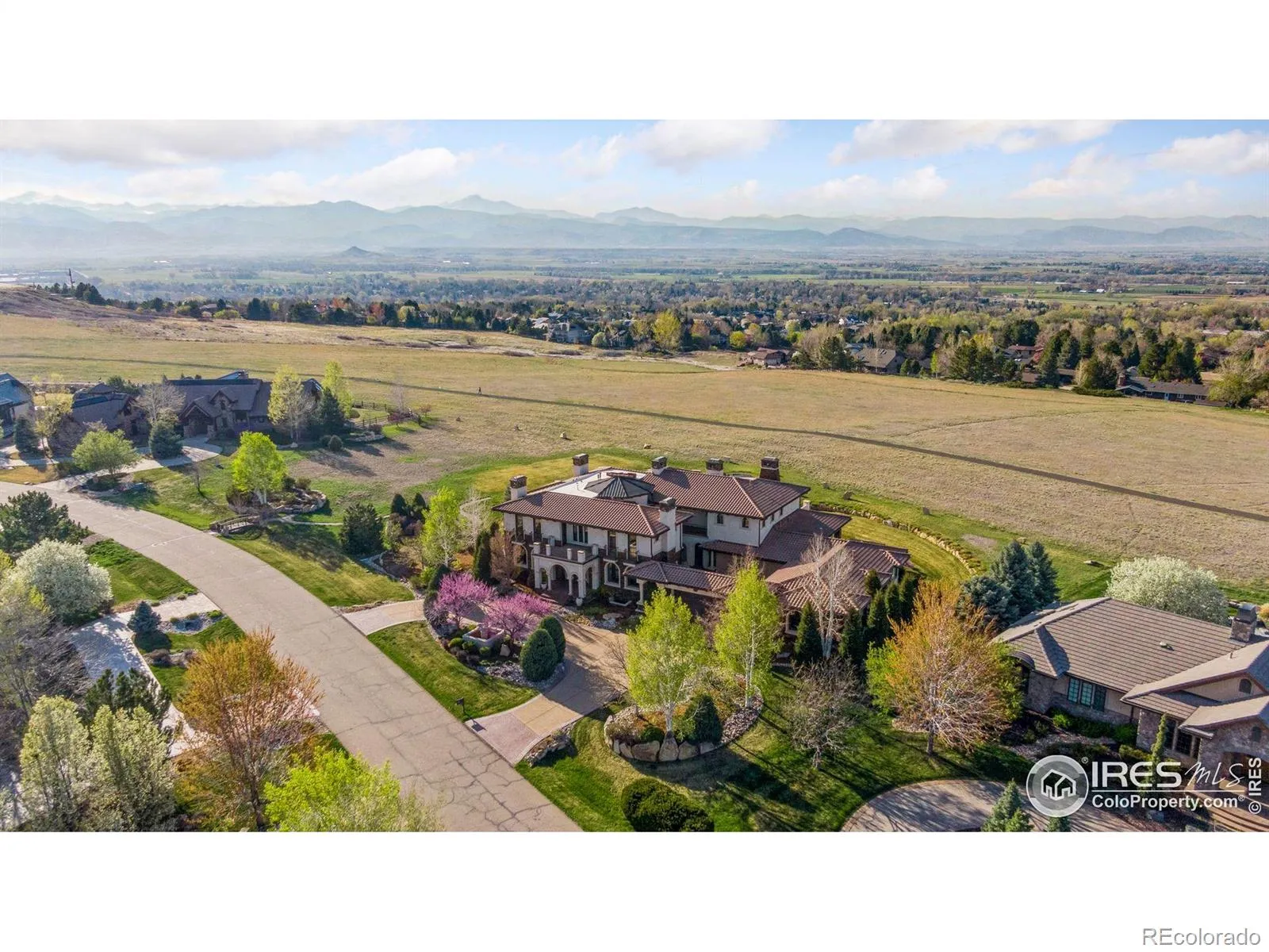Discover this opulent yet refined architectural masterpiece in the esteemed Legend Ridge community of Niwot that feels like an undiscovered treasure and transports you to five star living every day. This custom home is designed to immerse you in breathtaking views of the spectacular Rocky Mountains and provides the opportunity to embrace a Colorado lifestyle unlike any other. With miles of trails out your door and close proximity to charming downtown Niwot and excellent public and private schools, this one of a kind property is not to be missed. As twilight falls, watch the birds swoop gracefully from arch to arch, moving between flowering trees – a serene backdrop to your evenings. Enjoy a fine Super Tuscan on the covered patio as cyclists and neighbors stroll the wonderful gravel trail with its mountain backdrop on their nightly routines. By sunrise, start your day with a view of the alpenglow touching Long’s Peak, an almost surreal experience framed perfectly by the home’s various viewpoints – courtyards, balconies, and patios.The centerpiece of this home is its stunning three-story curved staircase, topped with an illuminated dome ceiling. Spacious rooms are impeccably detailed with crown moldings, coffered ceilings, and premium designer finishes. The chef’s kitchen flows seamlessly into the great room with soaring ceilings, leading to the covered porch with a Viking gas grill, perfect for entertaining al fresco. The exquisite gardens, complete with water features, are ideal for gatherings under the open sky. The primary suite offers a spa-like bathroom, massive custom closet, sitting area & private balcony facing Long’s Peak. Additional amenities speak to a home that is built for a crowd with plenty of flexibility for multi-generational living – an elevator, 5 en-suite bedrooms, two main floor offices, a high end movie theater, home gym, wine cellar, & six-car heated garage with separate workspace. This exceptional Niwot property offers an unrivaled lifestyle.