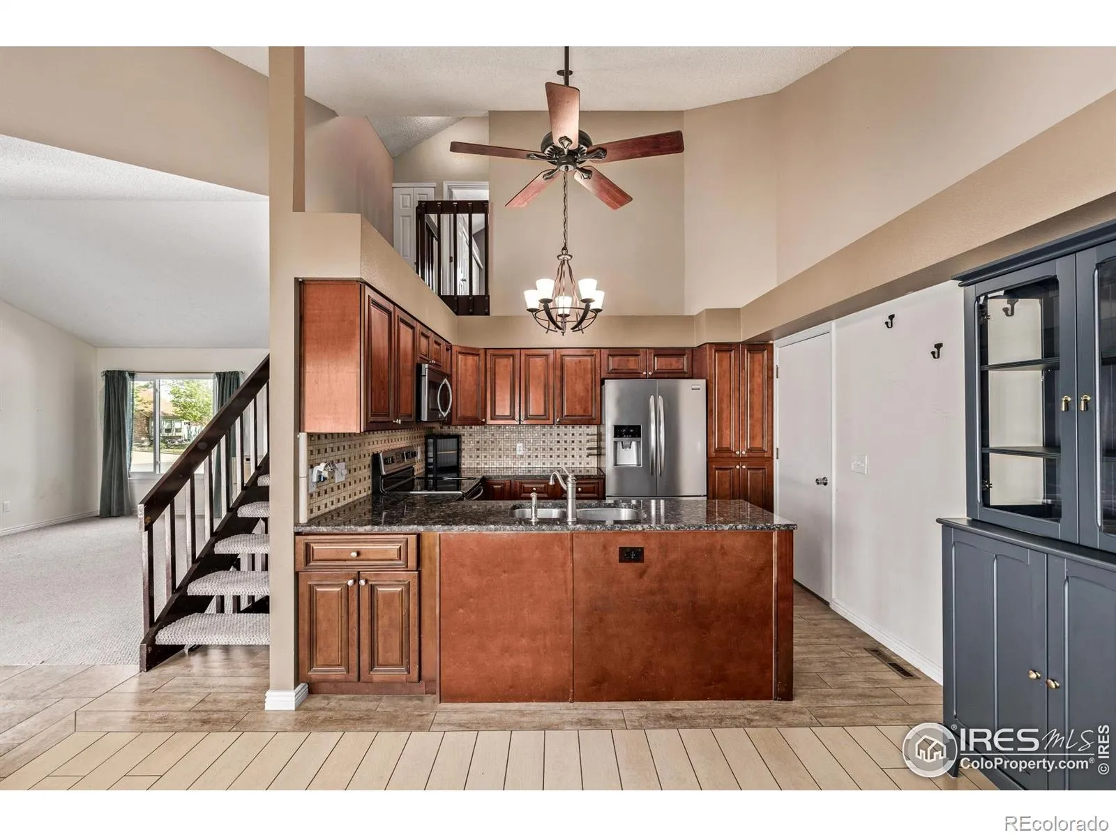 MAJOR PRICE REDUCTION!! A rare financial advantage sets the stage for this thoughtfully maintained home in the heart of the Cherry Creek School District. With a 4.625% assumable loan available to qualified buyers, this offering presents a remarkably low cost of entry and long-term value – an increasingly elusive combination in today’s market. For those seeking both opportunity and stability, this is a home that delivers. Set on a gently sloping lot beneath mature trees, the home’s classic architecture and crisp white trim offer understated curb appeal. Inside, vaulted ceilings and a large picture window fill the main living space with natural light, creating an airy and open ambiance. A neutral palette and plush carpeting lead the eye toward a refined fireplace, an architectural focal point that adds quiet character to the space. The adjacent kitchen is designed with intention, featuring rich wood cabinetry, wood-look tile flooring, a timeless backsplash, and an undermount sink. A bright breakfast nook captures morning light and offers views of the backyard-an open space filled with potential. An open-riser staircase enhances the home’s sense of flow, leading to an upper-level primary suite with soaring ceilings, an oversized window, ample closet space, and a spacious en suite bath. A second main-level bedroom with its own en suite bath provides flexibility for guests or multigenerational living. The finished basement adds a third bedroom, full bath, versatile flex area, and dedicated laundry room with a 2022 washer and dryer. A single-car garage adds convenience and storage. Outside, a flat fenced yard framed by mature trees and a concrete patio awaits personal expression-perfect for entertaining, play, or garden retreat. Recent updates include new HVAC and energy-efficient dual-pane windows, all within a warm, well-kept neighborhood known for its sense of community and regular events.