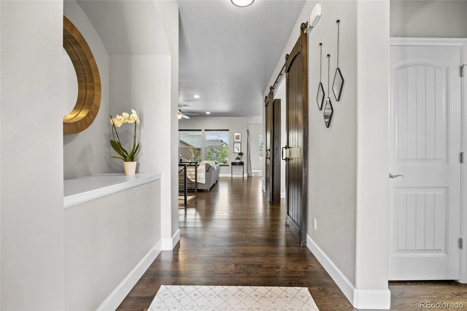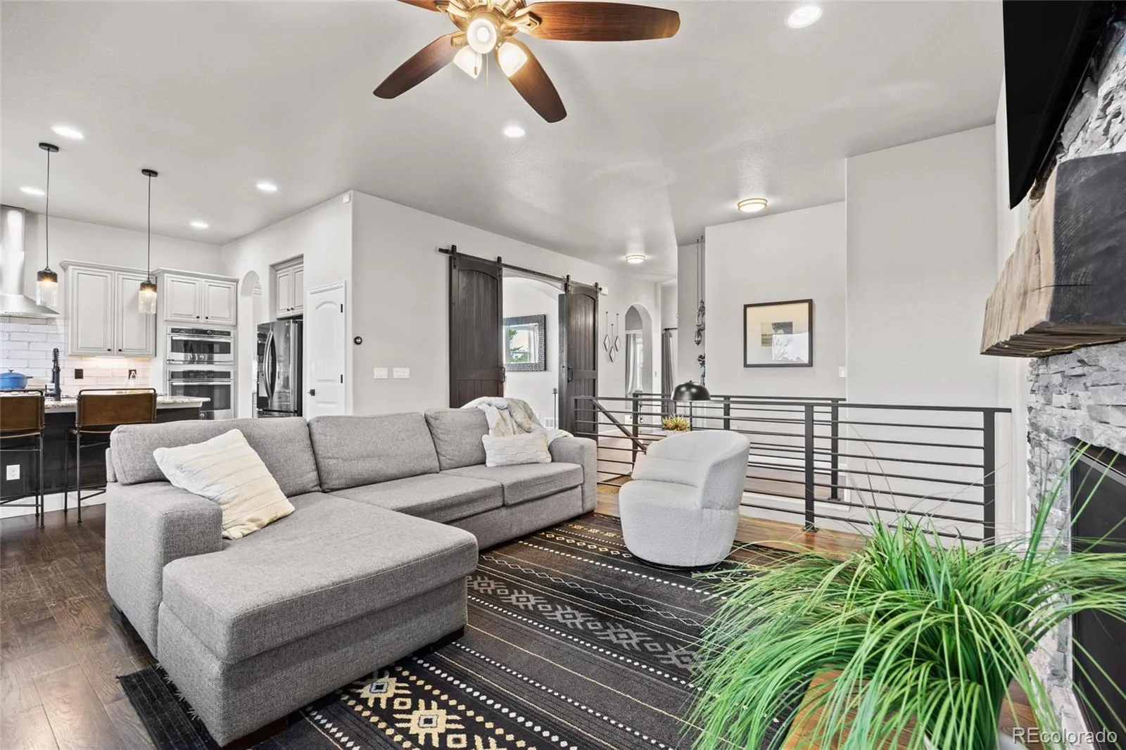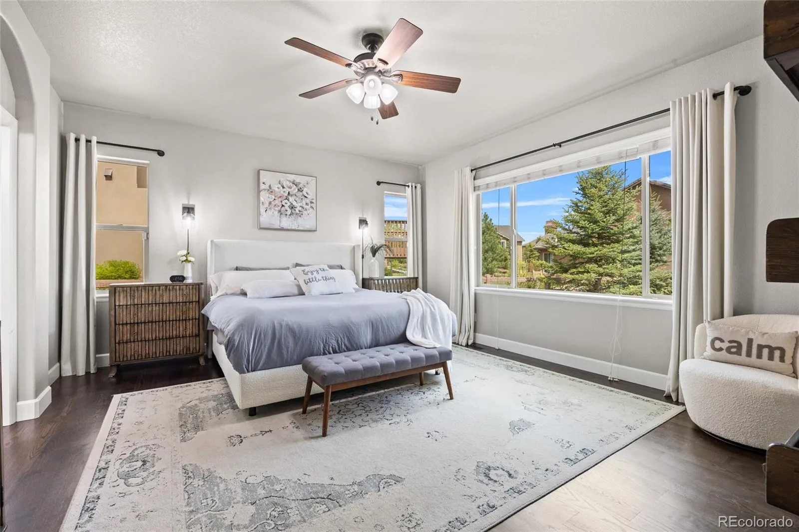 SELLER OFFERING UP TO $20,000 CONCESSION FOR RATE BUY DOWN, CLOSING COSTS, HOA, OR COMBINATION! Nestled in the sought-after Flying Horse community, this extraordinary 5-bedroom, 4-bathroom Classic Homes ranch-style home offers a perfect blend of luxury and comfort. Situated on over a quarter-acre lot providing privacy and spaciousness, enjoy spectacular, unobstructed Pikes Peak views from the patio, kitchen table, and formal dining room. The Magnolia-inspired design showcases soft grays and crisp white accents with custom barn doors adding personalized charm. The open-concept main floor bathes in natural light, featuring a Chef’s kitchen with high-end appliances, European-style grey cabinetry, and slab granite countertops. A generous island provides casual dining and ample workspace. The main floor master suite includes a spacious walk-in closet connected to the laundry room. A second bedroom doubles as an office space, complemented by a formal dining area and great room that blend functionality with style. Downstairs, find a junior en-suite, two additional bedrooms, and a fourth full bathroom. The family recreation room features high ceilings and a fully equipped kitchenette. Wine enthusiasts will appreciate the 120-bottle custom walk-in wine closet. Outside, professional landscaping with lighting upgrades creates a magical nighttime escape. Practical features include an oversized three-car garage with built-in cabinets and epoxy flooring. Located minutes from Discovery Canyon Campus, The Club at Flying Horse, I-25, local amenities, and the Air Force Academy’s north entrance. This cherished home reflects commitment to maintenance and aesthetic excellence—a rare opportunity to own a truly exceptional Flying Horse property.