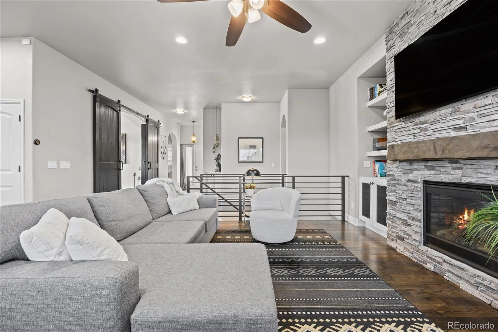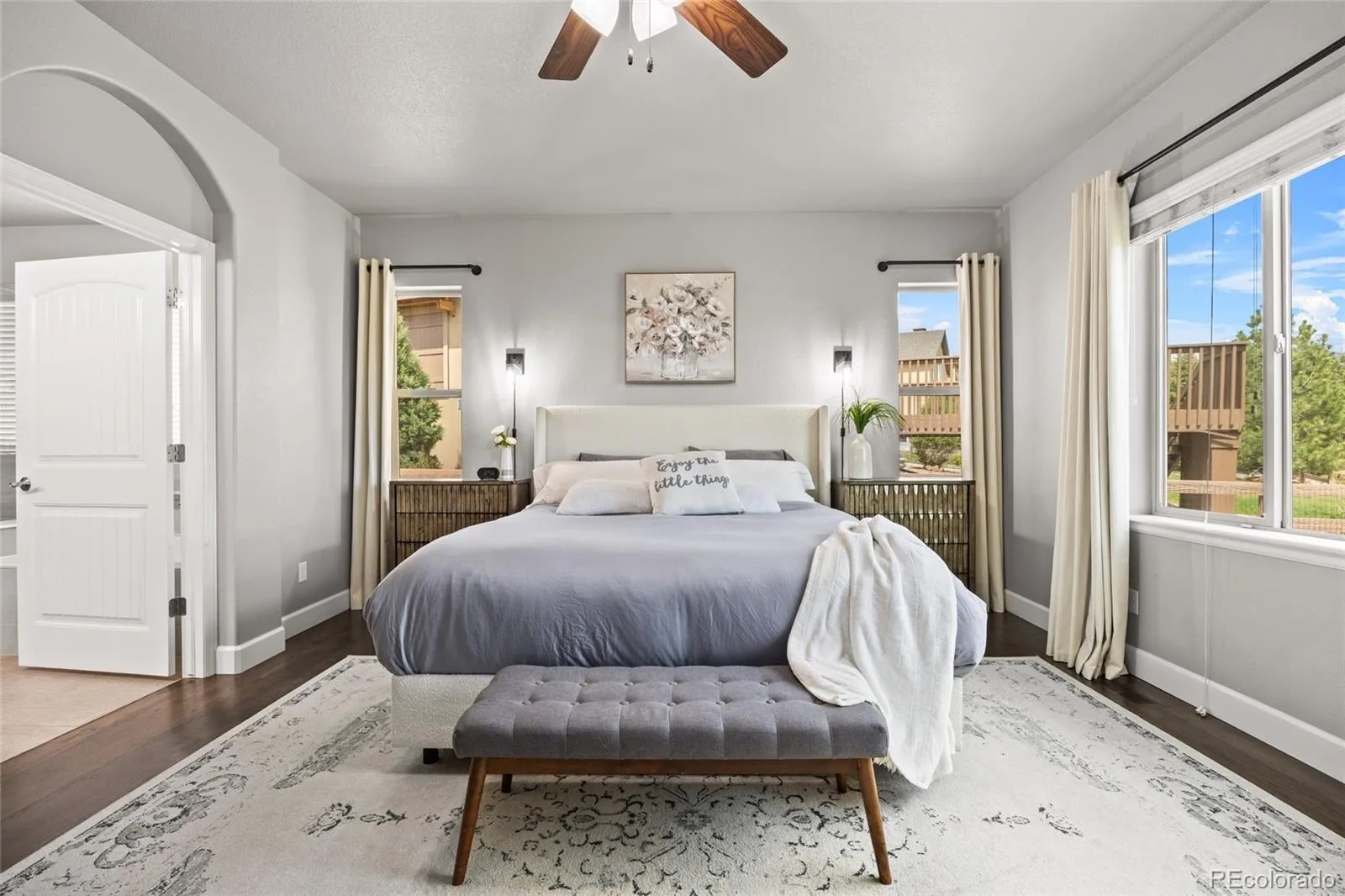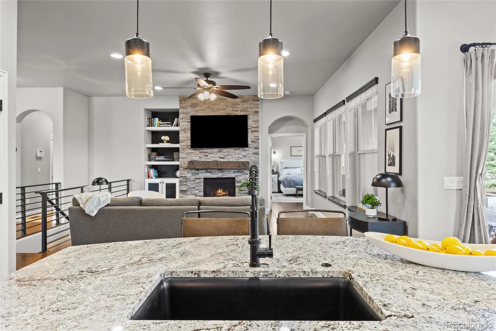 SELLER OFFERING UP TO $20,000 CONCESSION FOR RATE BUY DOWN, CLOSING COSTS, HOA, OR COMBINATION! Nestled in the sought-after Flying Horse community, this extraordinary 5-bedroom, 4-bathroom Classic Homes ranch-style home offers a perfect blend of luxury and comfort. Situated on over a quarter-acre lot providing privacy and spaciousness, enjoy spectacular, unobstructed Pikes Peak views from the patio, kitchen table, and formal dining room. The Magnolia-inspired design showcases soft grays and crisp white accents with custom barn doors adding personalized charm. The open-concept main floor bathes in natural light, featuring a Chef’s kitchen with high-end appliances, European-style grey cabinetry, and slab granite countertops. A generous island provides casual dining and ample workspace. The main floor master suite includes a spacious walk-in closet connected to the laundry room. A second bedroom doubles as an office space, complemented by a formal dining area and great room that blend functionality with style. Downstairs, find a junior en-suite, two additional bedrooms, and a fourth full bathroom. The family recreation room features high ceilings and a fully equipped kitchenette. Wine enthusiasts will appreciate the 120-bottle custom walk-in wine closet. Outside, professional landscaping with lighting upgrades creates a magical nighttime escape. Practical features include an oversized three-car garage with built-in cabinets and epoxy flooring. Located minutes from Discovery Canyon Campus, The Club at Flying Horse, I-25, local amenities, and the Air Force Academy’s north entrance. This cherished home reflects commitment to maintenance and aesthetic excellence—a rare opportunity to own a truly exceptional Flying Horse property.