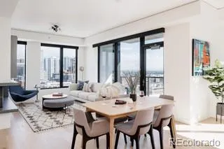 Premier Corner Residence- Elevated Downtown Living! Experience living in one of the most desirable corner units at The Coloradan- just shy of penthouse status. Perched on the 17th floor above Union Station, this stunning unit-crafted with interiors by Joe McGuire Design-showcases panoramic city and mountain views through expansive floor-to-ceiling windows and boasts soaring ceilings for an open, airy feel. Designed for everyday luxury and entertaining, the open-concept living space features a sleek gas fireplace, a covered balcony with southern exposure, and smart home integration including voice-activated shades, lighting, and AV controls. The chef’s kitchen impresses with a quartz waterfall island, Bosch appliances, marble backsplash, and high-end design touches throughout. The primary suite offers a curated accent wall, custom closets, and blackout window treatments for privacy and comfort. A spacious second bedroom also features full glass exposure, which is significant in this building as a stand-out among other two bedrooms. An oversized laundry room adds functional convenience and added storage. Designer lighting upgrades and thoughtful finishes elevate the home’s modern aesthetic. Original owner – gently lived in as a second residence. High-end furnishings are negotiable, making this a rare turn-key opportunity. Step outside and enjoy the best of Denver-Whole Foods, Tavernetta and countless dining and cultural experiences are just steps away. Walk to Coors Field, Ball Arena, Empower Field at Mile High, the Museum of Contemporary Art, or explore nearby LoHi and the Highlands. Walking and biking trails abound. Traveling? The A-Line to DIA is right downstairs. As a resident, enjoy access to The Coloradan’s resort-style amenities, including a rooftop pool and hot tub, state-of-the-art fitness center, owner’s lounge, library, community garden, & 24-hour front desk and security. Luxury, location, and lifestyle—perfectly combined in this showstopping corner unit.