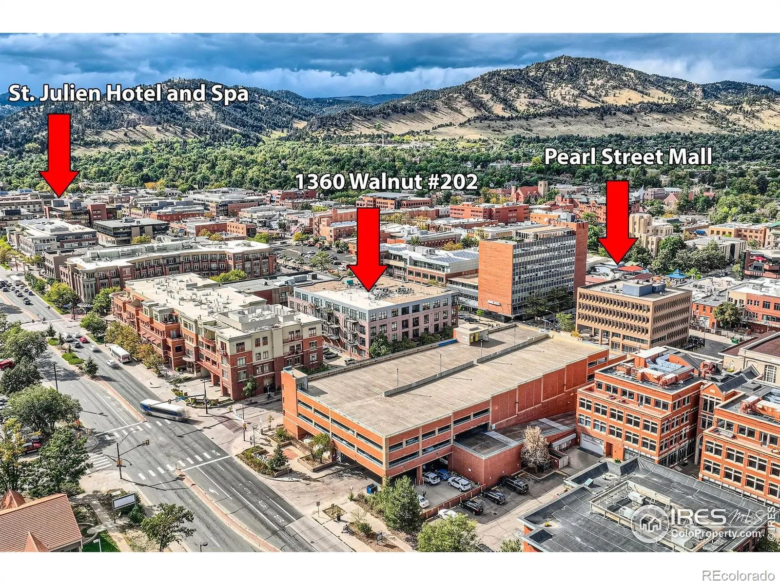 Embrace luxury living in the heart of Boulder! A true industrial-style unit @ One Boulder Plaza with the best floor plan in the building! 1496 sq ft! This will make an excellent unit to enjoy the Sundance Festival coming to Boulder! Experience all that Downtown offers just steps away from popular Pearl Street Mall, fine dining, shopping, trails, farmer’s market and so much more! Glance up the street from your spacious patio to see the mountains or catch an occasional parade. Rich with amenities such as bamboo floors, spacious chef’s kitchen, stainless steel appliances, extra high ceilings, open living/dining areas, custom fireplace made of Italian marble, generous covered deck for entertaining. Enjoy full height wall shelving to display your fine art and possessions, and floor to ceiling windows for plenty of light and fresh air to come in. Pamper yourself in a custom 5-piece bath with steam shower and soaking tub, large primary bedroom & walk-in closet. Extra space for an office area or murphy bed plus ample storage throughout or add a wall to close it off. Secure building monitored 24 hours w/elevator, underground parking and storage. Convenient deeded parking space right off the elevator. Perfect lock & leave home or rental investment with easy access to the airport! LOAN might be assumable! Call for details!