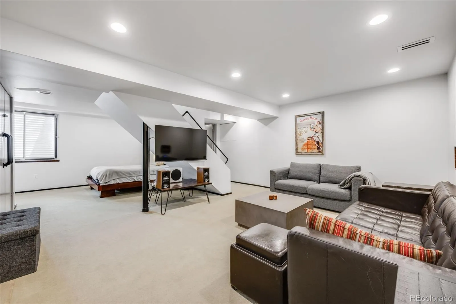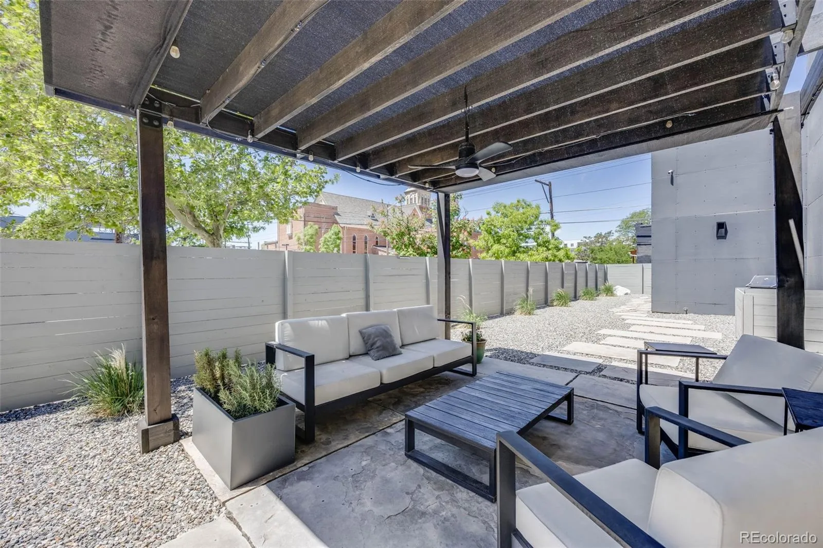 BRUTALIST ARCHITECTURE GEM – Incredible RiNo / Five Points / Curtis Park / Downtown opportunity. 3 bedroom that lives like a 4 bedroom in loft, recently complete remodel on a double corner lot. New cabinetry throughout with Cafe appliances including Advantium microwave/air fryer. New nearly everything: Refrigerator, dishwasher, cooktop with hood, extra deep sink in kitchen and laundry, washer and dryer, furnace, A/C core, tankless water heater, silent gas fireplace, tile and wood flooring, and SO MUCH MORE. New high end smart lighting, new landscaping low maintenance yard including fence, pergola, exterior cement board siding and rare oversized 3-car garage with EV charger. Primary and guest bathrooms have dual shower heads and primary with jetted tub. 20+ foot ceilings with ample natural light from high wall windows and skylights. 3 New smart Big Ass Fans. Insulation R40 ceilings and R30 walls, plus an extra layer of sound dampening Dynamat. Roof replaced in 2023, the home was built with security and safety in mind using steel reinforced doors and metal security doors and outside windows with custom steel covers inside. UNIQUE AND RARE FIND NOT TO BE MISSED!