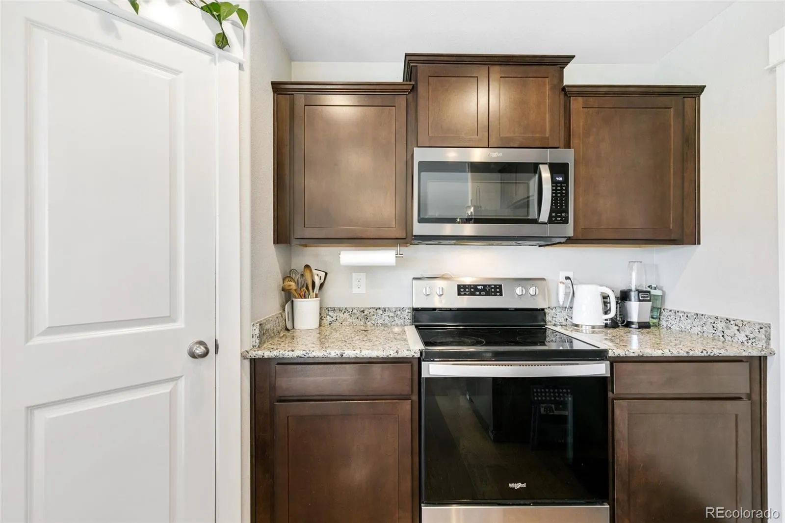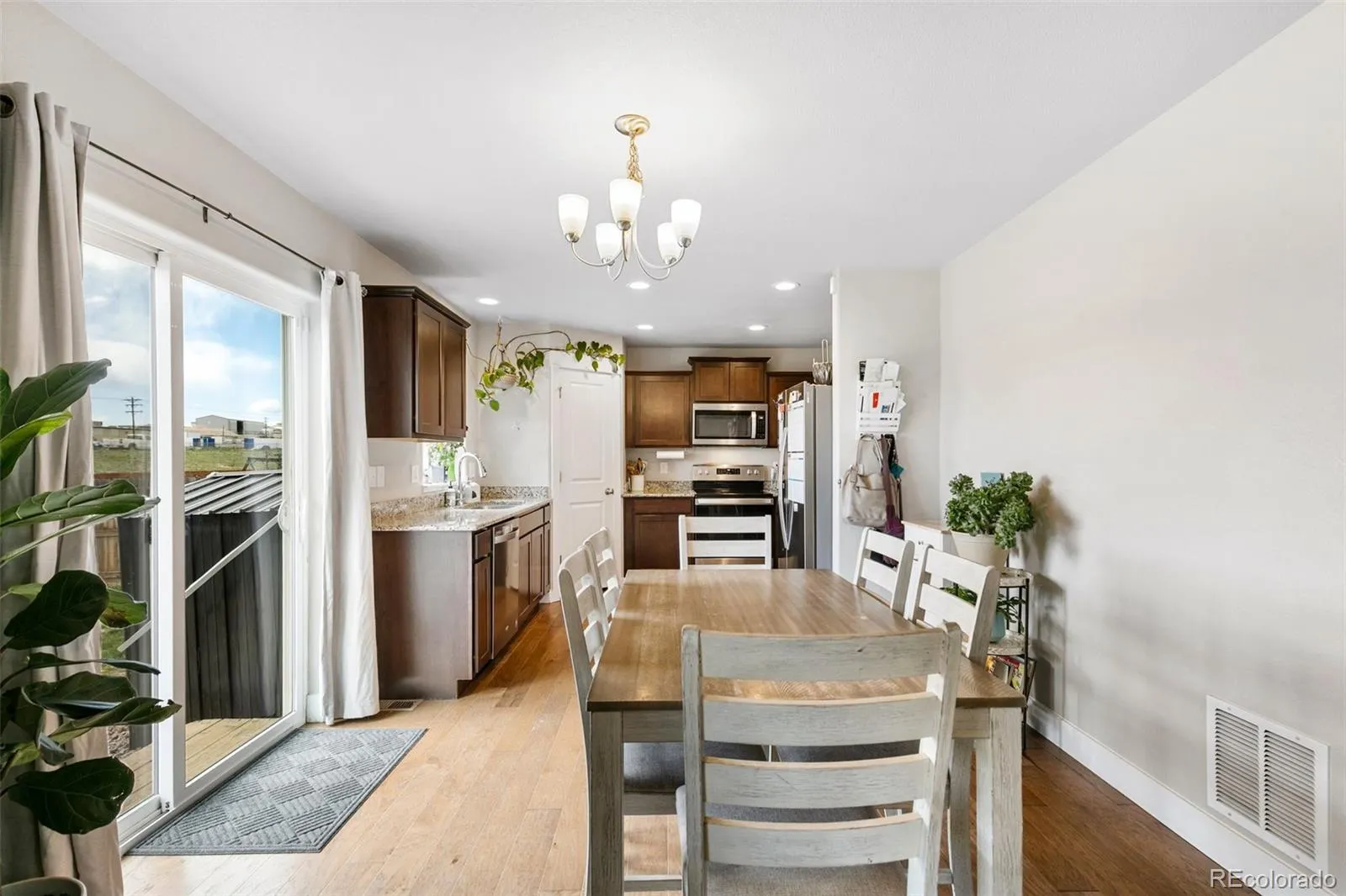 This inviting two-story home welcomes you with a LVP entry, leading into an open-concept floor plan with kitchen and dining area, seamlessly connecting to the spacious living room. The kitchen is equipped with sleek stainless steel appliances and birch cabinetry with crown molding, complemented by recessed lighting. The newly renovated stairs and upstairs hallway lead to the spacious primary suite which offers a private retreat with an attached bathroom featuring double vanity, a separate shower and toilet room, and a walk-in closet. Two additional bedrooms provide ample space, while the upstairs laundry room adds convenience. Energy efficiency is ensured with the use of solar panels. This large lot is located near shopping centers, commuting routes, and offers mountain views, this home combines convenience with natural beauty. The blend of modern amenities and thoughtful design, make this home worth seeing!
