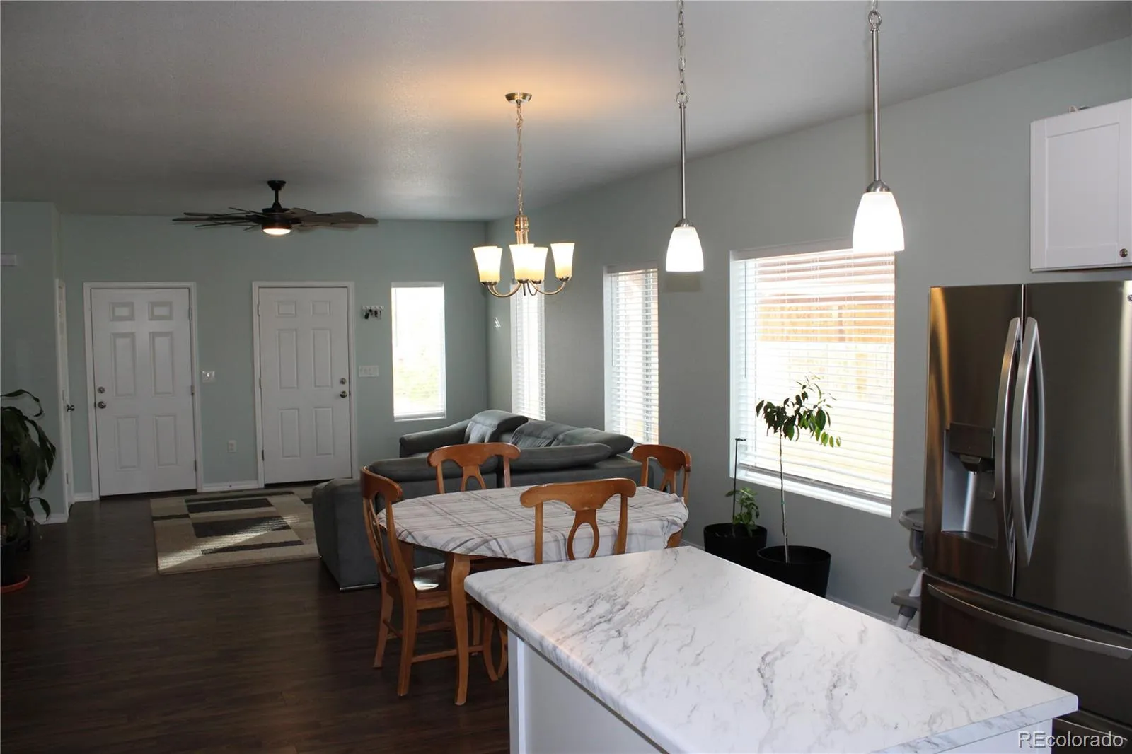 HUGE PRICE REDUCTION!!! Must see! Charming ranch home featuring two bedrooms, two baths and oversized two car garage-22′ x 24′.2″ in the Four Mile Ranch Subdivision. Home has an open concept floor plan with wood laminate flooring in the great room, dining room and kitchen area. Both bedrooms are carpeted and are warm and inviting. Both full bathrooms have tile floors and tile in the main shower. The kitchen is bright and inviting showcasing a beautiful island and all stainless appliances – refrigerator, gas range/oven and dishwasher. There is also ample storage in the kitchen with plenty of cabinets and drawers as well as a pantry. Home has forced air gas heat and central air. The laundry area is right off the hallway for ease and convenience. The interior was freshly painted in April ’25. Stunning views of the mountains from the rear of the home. Great place to sit outside in the evening while watching the sunset or enjoy your morning coffee. The property is fully xeriscaped and a retaining wall built. Fencing added for privacy as well. 638 Cowboy Way’s convenient location has easy access to Hwy. 50 for commuting to Colorado Springs, Pueblo, Penrose and Florence for work, shopping, museums, schools, and all the outdoor adventures this area has to offer. Four Mile Ranch Golf Club is part of the community and just a stone’s throw away from this lovely home. Minutes to Gold Medal Fishing in the Arkansas River, river rafting, endless hiking, biking and exploring Colorado’s most beautiful Sangre de Cristo Mountains to climb five of Colorado’s 14’ers! Great home in a great location – – come to temperate Canon City, known as the Banana Belt, and see how relaxing life could be!