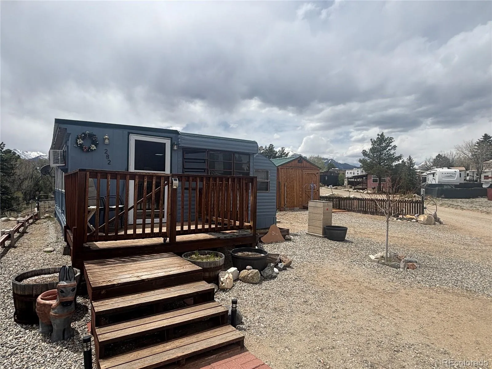 Immaculate, move-in ready home with amazing mountain views including Mt Princeton. This home consists of 2 lots has winter water, (2) AC units, front deck and back patio, a 10 X 12 storage shed, 28 x 12 storage shed and a partially fenced yard. Chateau Chaparral is a great community for part-time and/or full time use. This home has already been set up on the new electric system with Sangre De Cristo. The home backs up to Chateau Chaparral’s fresh water reservoir. Chateau Chaparral is an HOA Condominium park with 306 privately owned lots. They are located on the Arkansas River, snuggled in the Arkansas Valley surrounded by The Collegiate Peaks, most rising over 14,000′. Chateau is close to a countless number of outdoor activities including rafting, hiking, fishing, dog trails, Mt Princeton Hot Springs to name a few. The park includes a clubhouse for the use of all property owners including wifi, laundry facilities, a kitchen, river access and many more. There was an addition built on to the original 37 X 8 trailer.The information contained herein should be verified after Buyer contracts to buy the Property.