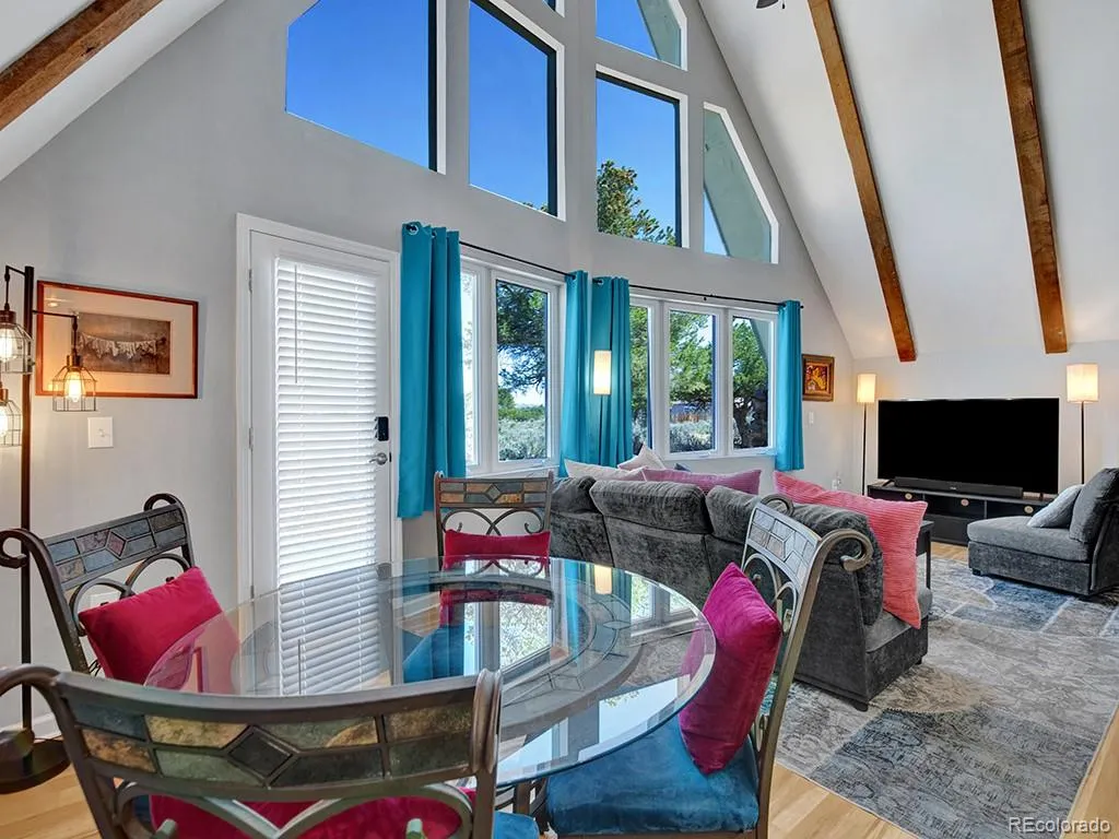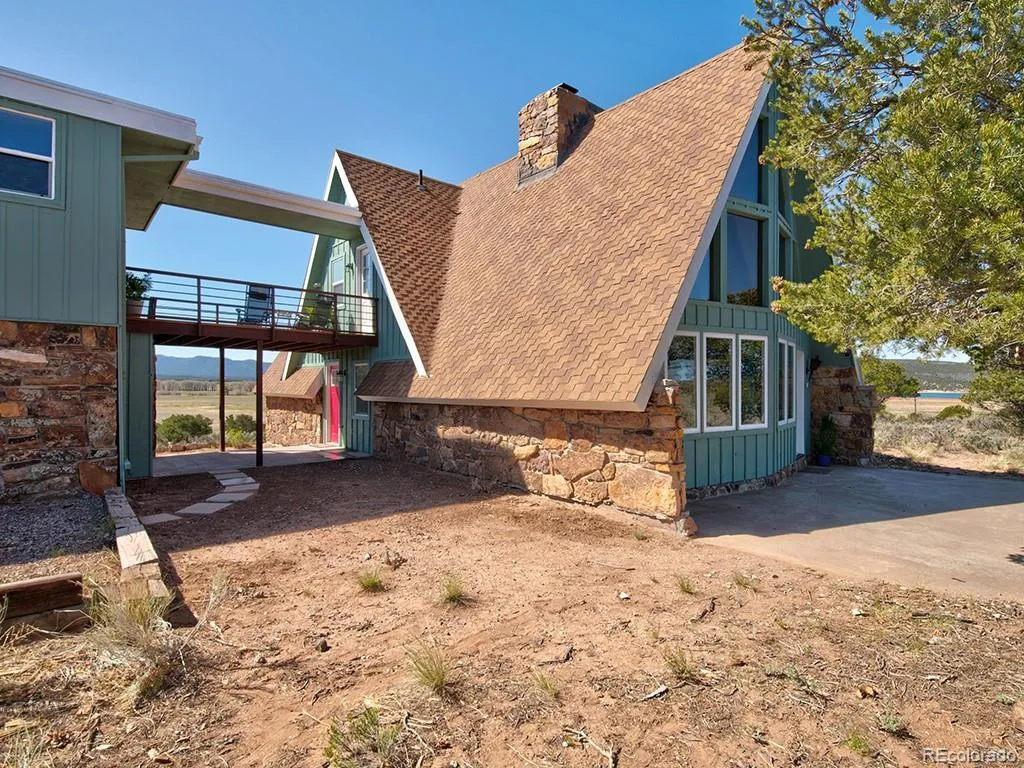 Newly remodeled, fully-furnished mountain retreat, perfectly positioned to capture breathtaking views of the Sangre de Cristo Mountains and Mountain Home Reservoir! This immaculate home offers comfort amongst many modern updates, making it a truly unique and exciting property. Airbnb-ready functionality means the home is ideal as a primary residence, vacation home, or income property. The main level features two bedrooms and one full bathroom. The upper level offers a loft space for an office or sitting area, plus one bedroom and one full bath. High ceilings and large double-pane windows fill the home with natural light, complemented by a cozy wood-burning stone fireplace. The kitchen is on the main level and is stocked and ready, with modern appliances and incredible views of the water from the sink. Electric heat runs throughout the home with individual thermostats in each bedroom. Nearly all plumbing has been updated to copper, and lines are protected with a heating wire on a thermostat. The basement has the laundry room with a new water heater, well pressure tank, washer and dryer; plus it’s a finished space with a sink, wine fridge, half bath, closet space, windows, and concrete floors. The detached two-car garage is 20×18 and has a concrete floor and exterior access. A private studio ADU is accessed via a breezeway from the upper level, which has a gated staircase down to the ground level. The ADU features a full kitchen, brand-new water heater, full bath, and a composite deck balcony with sweeping views—ideal for guests or rental income. The 1,250-gallon septic tank was replaced four years ago; a new leach field was installed in 2025. Weekly trash pickup is available, and the home includes high-speed fiber optic internet, Simplisafe alarm system, Blink cameras, and a one-year home warranty credit at closing. The home gym and all furnishings, including TVs and a fully stocked kitchen, are included if the buyer desires. This is a rare opportunity. Call today!