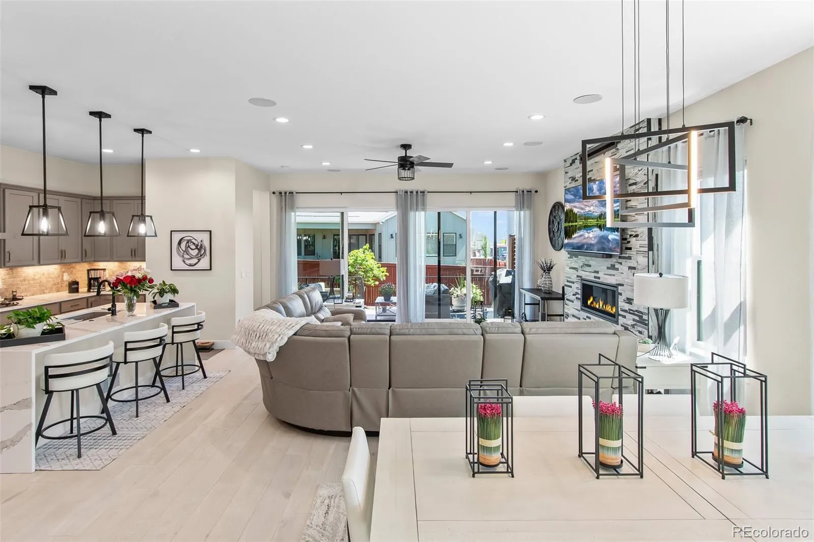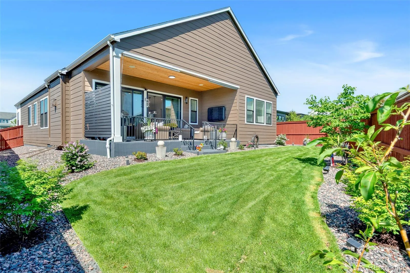 Welcome to the desired Sub Area of Raindance in Windsor Colorado! This immaculate property offers 5 bedrooms, 4 bathrooms, a flex room/office, the fully finished two car garage features custom hot water faucet with epoxy flooring. The main level features brand new gray stained wood flooring throughout, a gourmet kitchen with ample cabinet space, waterfall kitchen countertops, walk in pantry, gas range top. The living room features a floor to ceiling backsplash gas fireplace that is absolutely beautiful. Power remote window shades and new LED light fixtures. Enjoy walking out from your main level to an oversized patio with rod ironed railing, privacy wall, custom winter proof tv cover with LG TV with a 110 electrical outlet included, custom cedar ceiling and a plumbed gas line for grilling! Three bedrooms on the upper level with a bonus flex room/office area and a laundry room for convenience. Your large primary bedroom features a five-piece bathroom with an oversized shower, free standing bathtub, double vanities and a massive walk-in closet. Enjoy dual zone thermostats and OLEO Lighting on the exterior. The newly finished basement offers an open concept area, a full wet bar with custom 10′ quarts countertop. two huge bedrooms one with a walk-in closet, a dedicated workout area with rubber flooring. The designer bathroom in the basement offers a 72-inch square sink quartz double vanity countertop, with overhead rainfall shower. Amazing location with festival park directly in front of the home. Raindance National Golf course which is the longest course in the United States is .2 miles away from hole 1! Hoe Down sledding Hill is a block away. Golf pro-shop and Grainhouse bar within walking distance (1 block) This is truly a one-of-a-kind custom home and a must see in person!