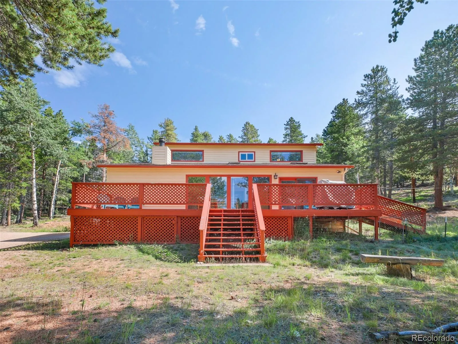 A Rare Gem on Conifer Mountain with TWO acres of flat, usable land. Nestled atop one of Conifer’s most desirable locations, this charming 3-bedroom, 2-bath home offers the perfect blend of mountain serenity and affordability. Set on a picturesque 2-acre lot, partially fenced and dotted with graceful aspens, this property is a true retreat. Enjoy outdoor living with a private dog run, a powered pavilion ideal for gatherings, and a horseshoe pit for summer fun. The main level features an open-concept layout with a cozy living room complete with a wood-burning stove, dining area, and kitchen that all flow seamlessly to a spacious front deck—wired with 220V service for a future hot tub. A main-floor bedroom and full bath provide flexible living options. Upstairs, the inviting primary suite is complemented by a third bedroom, perfect for guests or a home office. Car enthusiasts and hobbyists will love the oversized garage, complete with automotive deck tile flooring and a modular workbench that stays with the home. Additional storage is available in the detached shed, which includes a built-in workbench and tool storage. Recent updates include a brand-new hot water heater, and the home has been modestly refreshed throughout. Whether you’re looking for a full-time residence or a weekend escape, this well-priced mountain home offers incredible value and endless potential. Don’t miss your chance to own a slice of paradise in Conifer!