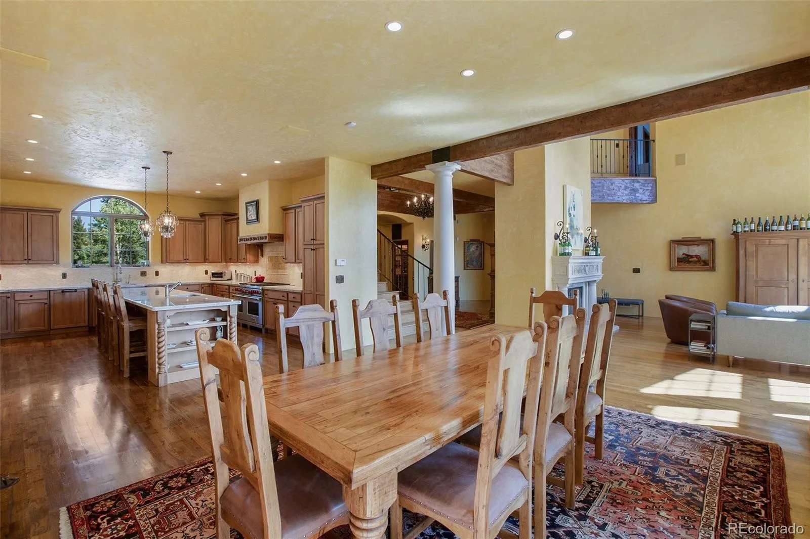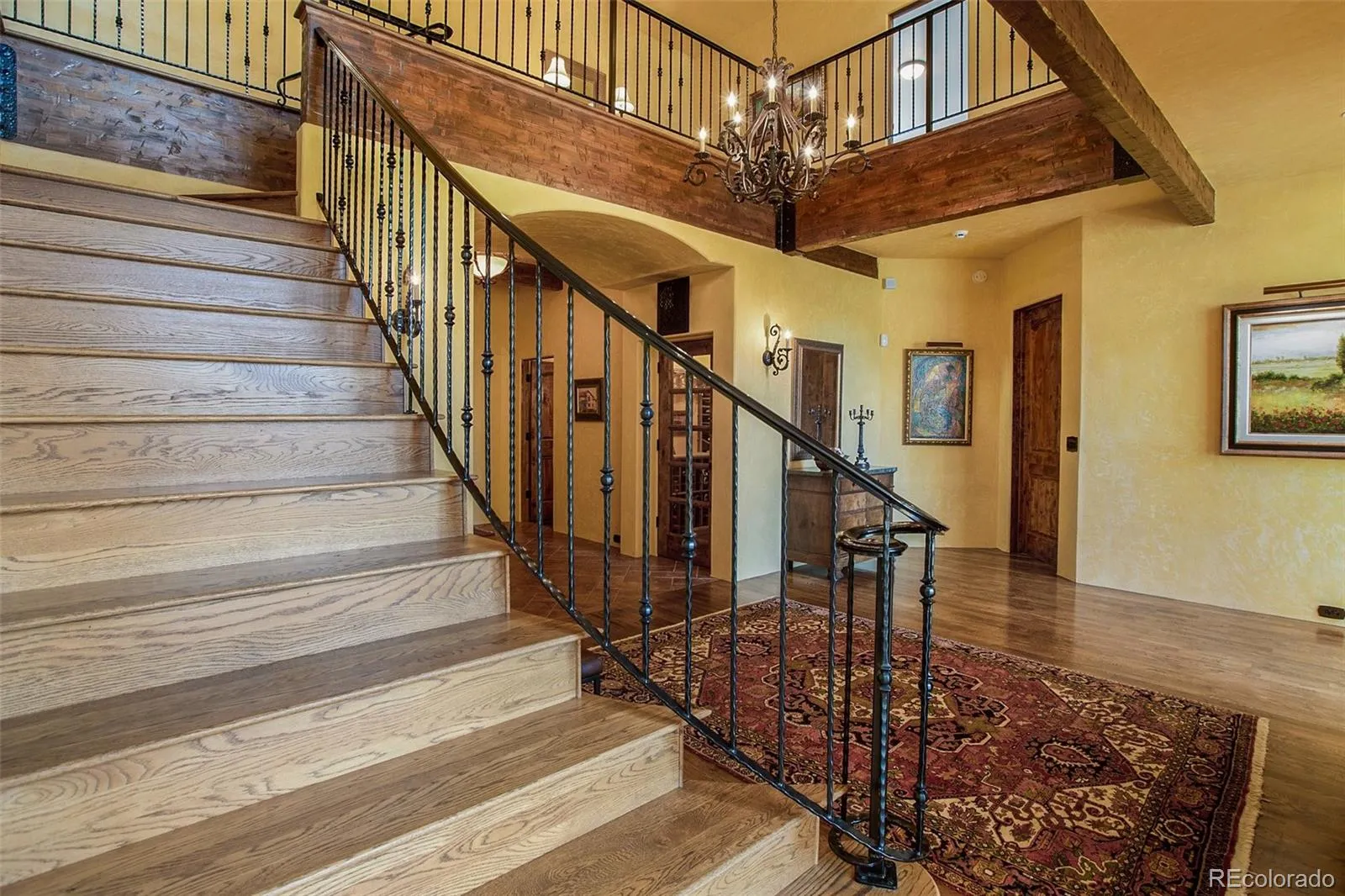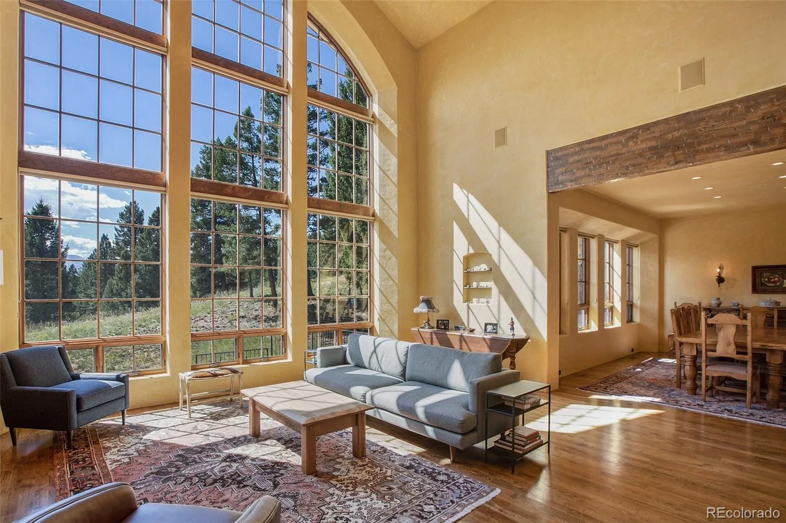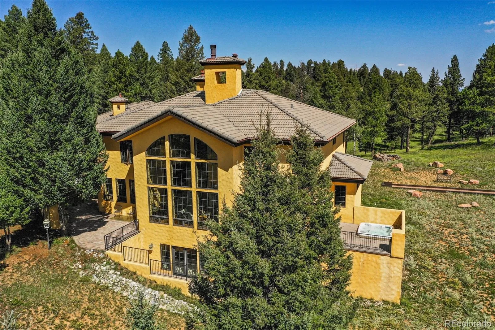 This meticulously designed luxury estate sits on 40 acres of wooded land zoned A-1 (agricultural), bordered by National Forest on 2 sides and BLM land on the third, and only 10 minutes from Woodland Park, offering a unique blend of elegance and tranquility. This custom home was constructed in 2004 and has been used as a second home by the original owners. A heated 3-car garage, new cobblestone driveway, flagstone entry, and exterior copper gutters add a touch of grandeur to your arrival. The gourmet kitchen is equipped with top-of-the-line appliances, including two Bosch dishwashers, a Subzero refrigerator, and a Wolf gas range with double ovens. The decorative features such as hand-painted Italian backsplash tile and hand-trowled stucco walls are set against custom alder cabinets and oak flooring. The spacious living areas provide stunning views of Pike’s Peak. Cozy up by one of the two fireplaces indoors or enjoy the outdoor stone fireplace in the patio kitchen, perfect for alfresco dining. Immerse yourself in the natural beauty surrounding the property. Engage in outdoor activities like horseshoes, unwind in the serenity of your private hot tub, or take a short 10-minute drive to play golf. This home is perfect for a couple’s solitude or hosting friends and family (easily providing lodging for 16-20). A few of this home’s unique features include a wine cellar, limestone columns/fireplace mantle, a “bunkhouse” (or exercise room, quilting room, or whatever you desire), 2 laundry facilities, and a mudroom/butler’s pantry/bar with lighted mullion cabinet doors. Structural integrity and insulation are ensured with exterior walls 18 inches thick, providing durability and peace of mind. New security system installed in 2024. This Tuscan-inspired masterpiece offers a sanctuary where luxury, comfort, and natural beauty converge seamlessly. Escape to this idyllic retreat where convenience meets seclusion in the heart of Colorado’s beautiful landscape.