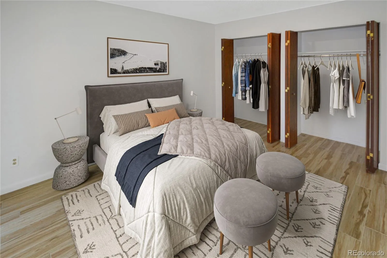 Welcome home to main floor living with two patio areas. No stairs involved with this condo. Recently updated and ready for it’s new owners. This spacious two bedroom, two bath condo is easy to move right into and relax. Enjoy the patio off the primary bedroom in the mornings with your cup of coffee, or the second patio off the living room area as the sun sets. The primary bedroom area has a large full wall closet. Central air conditioning keeps it cool in the summer, and the fireplace keeps you warm and cozy in the winter. The washer and dryer are included. The deeded parking space #65 is just outside the front door. The storage closet is also very close, with the entrance just left of the mail boxes in the main storage building. The community has much to offer with its private pool, sport court, fitness center, community room, along with a walking trail to either Bible Park or Hutchinson Park next door. Conveniently located to shopping, restaurants, parks and golf courses, this is in an ideal setting. Light Rail to Downtown or the DTC is just a few minutes away.