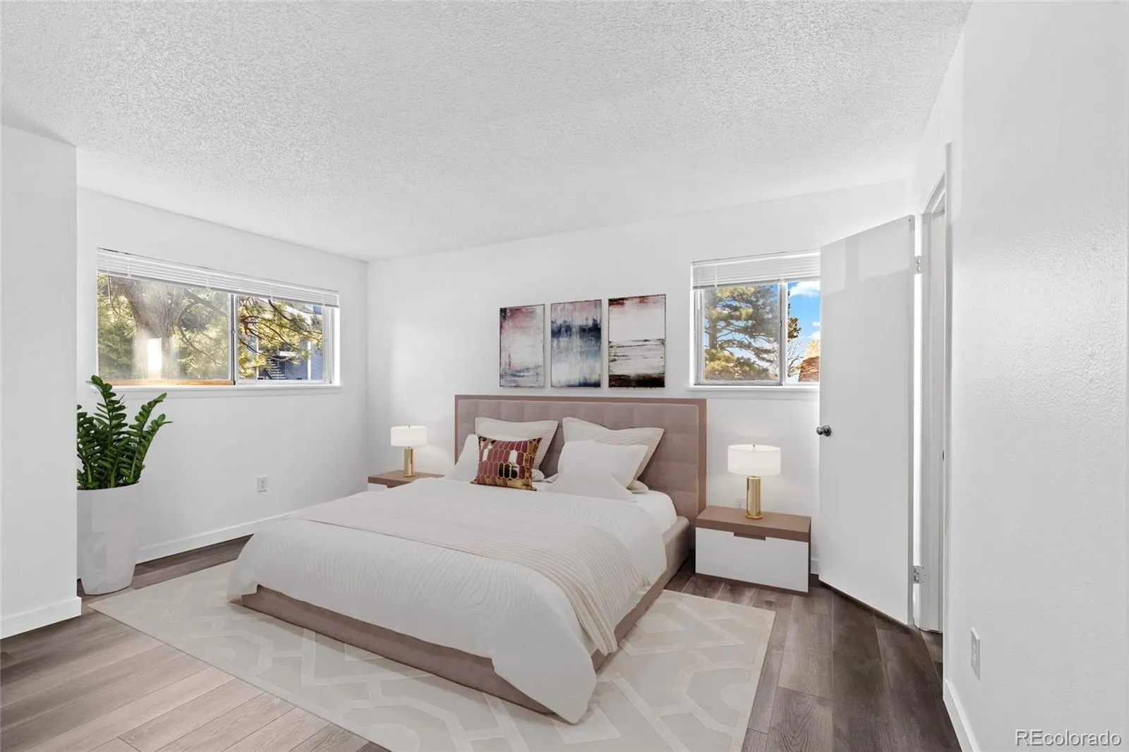 Welcome to a sought after, ground-level unit with Zero stairs, in Southglenn Commons. Modern updates, bright paint and streamlined grey plank laminate floors, gleam throughout this TWO BEDROOM, TWO BATH HOME minutes from C470 and University Blvd. Affordable living close to DENVER UNIVERSITY, Arapahoe High School, and Arapahoe Community College.