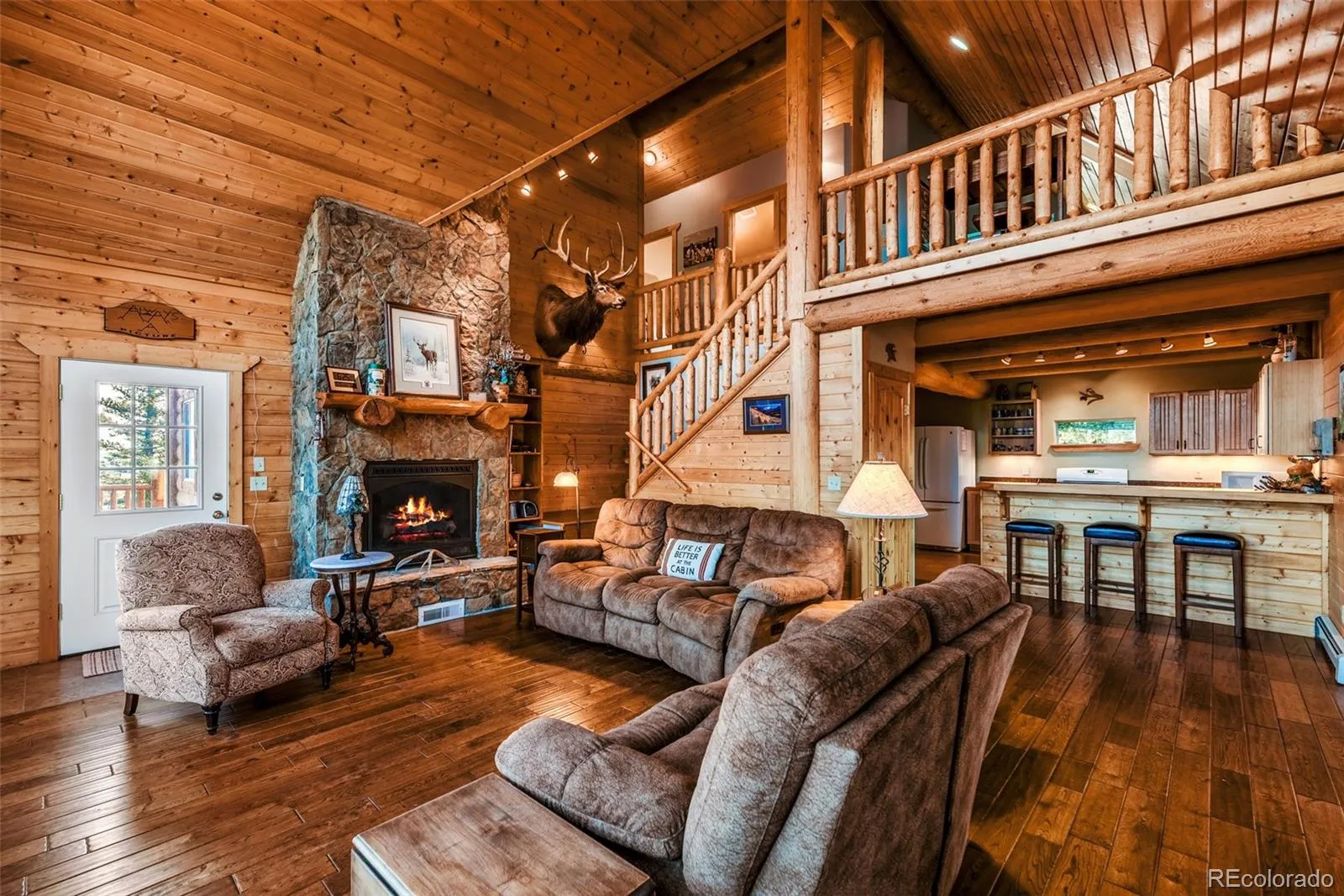 This cabin in the most beautiful part of Indian Mountain is true luxury, off-grid, cabin living. From the native landscaping to the unique design of the home so many details make this a truly special cabin. This log sided cabin in a beautiful location would be the perfect vacation cabin, family home, or rental property. The main level living area has a spacious great room with a gas log fireplace, a well appointed kitchen with a pantry and extra seating, and dining space. This is an ideal space for spending time with family or entertaining. Tongue and groove walls and ceilings and beautiful log beams add a cabin ambiance. A wall of windows lets you take in the mountain and valley views. A half bath and laundry room are also located on the main level. The primary suite is tucked away at the back of the main level with a roomy bedroom and a lovely bathroom with a soaking tub and walk in shower. The wrap around deck, a great spot for entertaining and relaxing, is accessible from both the living area and the primary suite. The upper level has two bedrooms with walk in closets, a 3/4 bath, and a loft space perfect for a home office or extra sleeping. The lower level completes the cabin with a game room and a utility room. This level leads you out to a lovely stone patio where you can enjoy the clear night skies and cozy up to the firepit. A massive solar system with new batteries, a Kohler generator, a tankless water heater, and a boiler which provides baseboard heat will keep you cozy year round. This elegant, off-grid, self sufficient cabin is a must see.