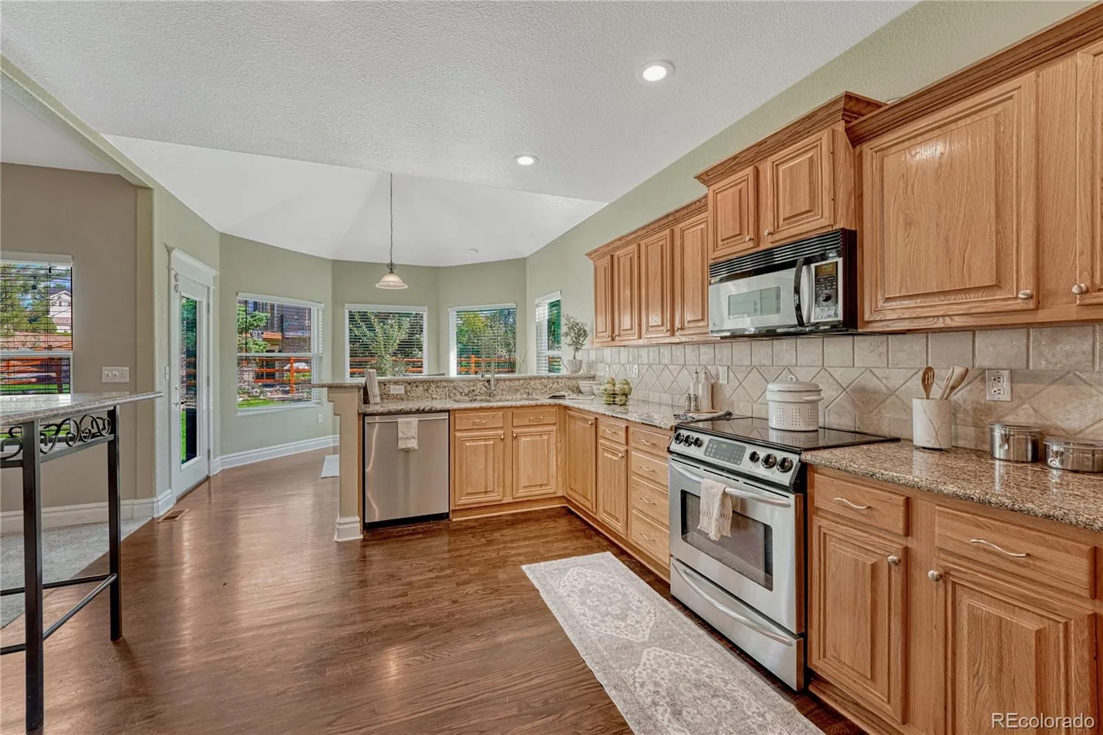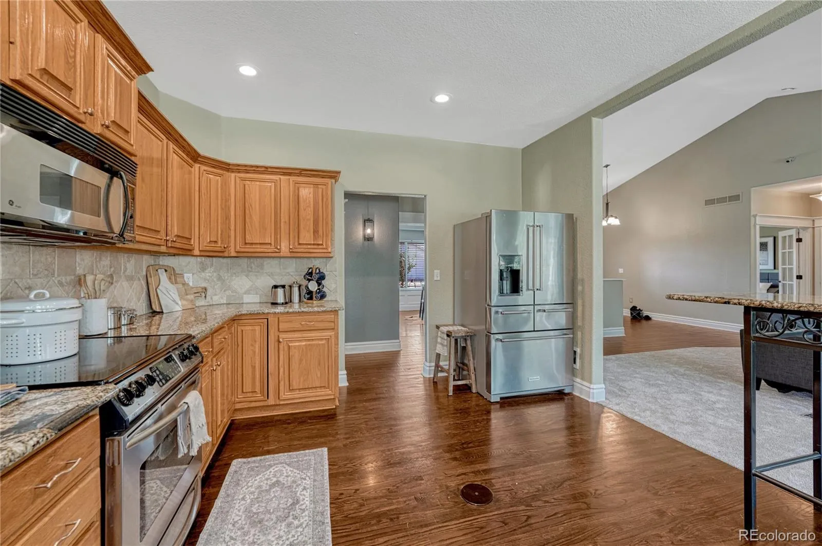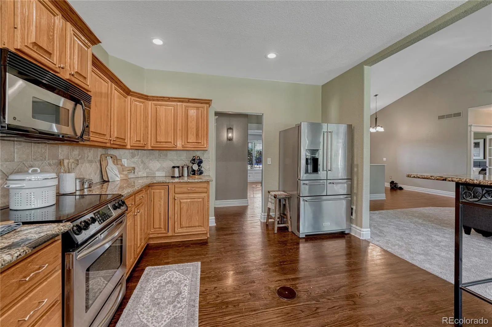 The open concept layout connects the kitchen and family room, creating a welcoming space for everyday living and entertaining. The kitchen features stainless steel appliances, slab granite countertops, and ample cabinetry. A formal dining room adds flexibility for hosting.
