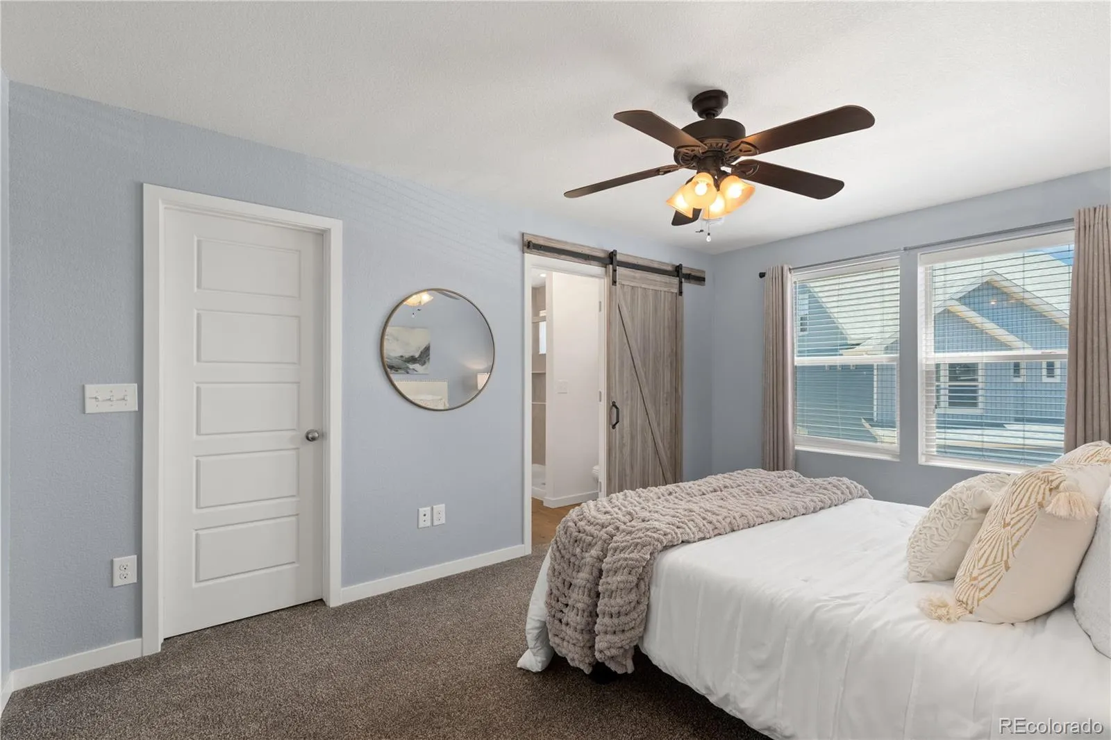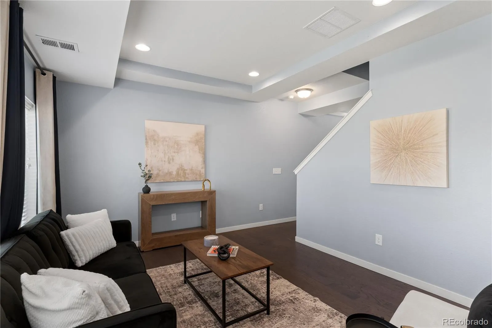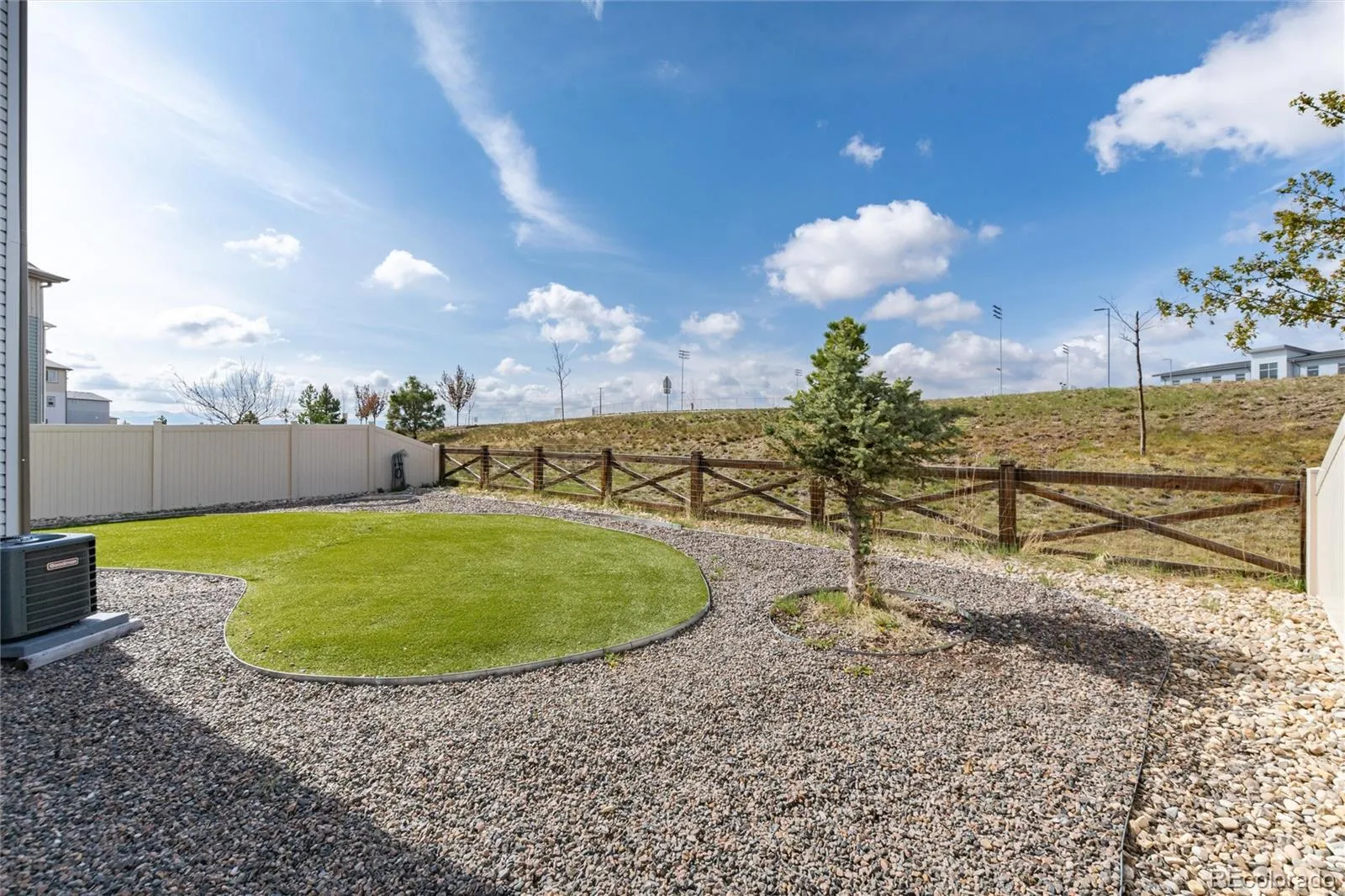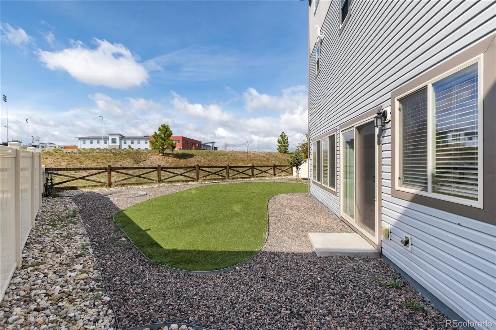 Welcome to this charming, turn-key home on a generous lot within the Banning Lewis community with a PRIVATE roof top patio. This well-kept three-story home is designed for comfort and convenience, boasting three bedrooms, 2.5 baths, and approximately 1,960 square feet of stylish living space. The home’s standout feature is its expansive xeriscaped lot, offering a sprawling artificial turf lawn that requires minimal maintenance. Enjoy one of the more private setups in the community with a backyard that doesn’t back directly to other homes. Step inside to the rich hardwood floors that flow throughout the first level where you’ll enjoy an open layout of the kitchen and living space, accompanied by 9ft ceilings and tons of natural light, giving you the open, airy vibes you’ve been looking for! The kitchen is equipped with Whirlpool appliances and complemented by a sleek black LG refrigerator, perfect for culinary enthusiasts. Don’t miss the additional counter space offered by the oversized kitchen island! Upstairs, the primary suite impresses with a spacious walk-in closet and an ensuite with oversized shower and dual vanities. Additional bedrooms offer versatility, with one room ideal for an office conversion. The third floor presents a versatile bonus room leading to a private rooftop patio, a unique builder upgrade that opens up endless possibilities. With metro district fees covering essential services, this home is the epitome of Colorado living – allowing you to either lock-and-leave or stay and entertain!