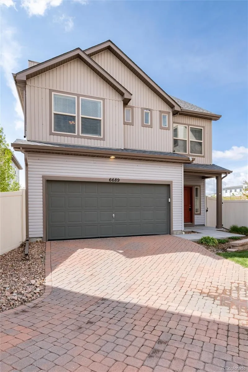 Welcome to this charming, turn-key home on a generous lot within the Banning Lewis community with a PRIVATE roof top patio. This well-kept three-story home is designed for comfort and convenience, boasting three bedrooms, 2.5 baths, and approximately 1,960 square feet of stylish living space. The home’s standout feature is its expansive xeriscaped lot, offering a sprawling artificial turf lawn that requires minimal maintenance. Enjoy one of the more private setups in the community with a backyard that doesn’t back directly to other homes. Step inside to the rich hardwood floors that flow throughout the first level where you’ll enjoy an open layout of the kitchen and living space, accompanied by 9ft ceilings and tons of natural light, giving you the open, airy vibes you’ve been looking for! The kitchen is equipped with Whirlpool appliances and complemented by a sleek black LG refrigerator, perfect for culinary enthusiasts. Don’t miss the additional counter space offered by the oversized kitchen island! Upstairs, the primary suite impresses with a spacious walk-in closet and an ensuite with oversized shower and dual vanities. Additional bedrooms offer versatility, with one room ideal for an office conversion. The third floor presents a versatile bonus room leading to a private rooftop patio, a unique builder upgrade that opens up endless possibilities. With metro district fees covering essential services, this home is the epitome of Colorado living – allowing you to either lock-and-leave or stay and entertain!