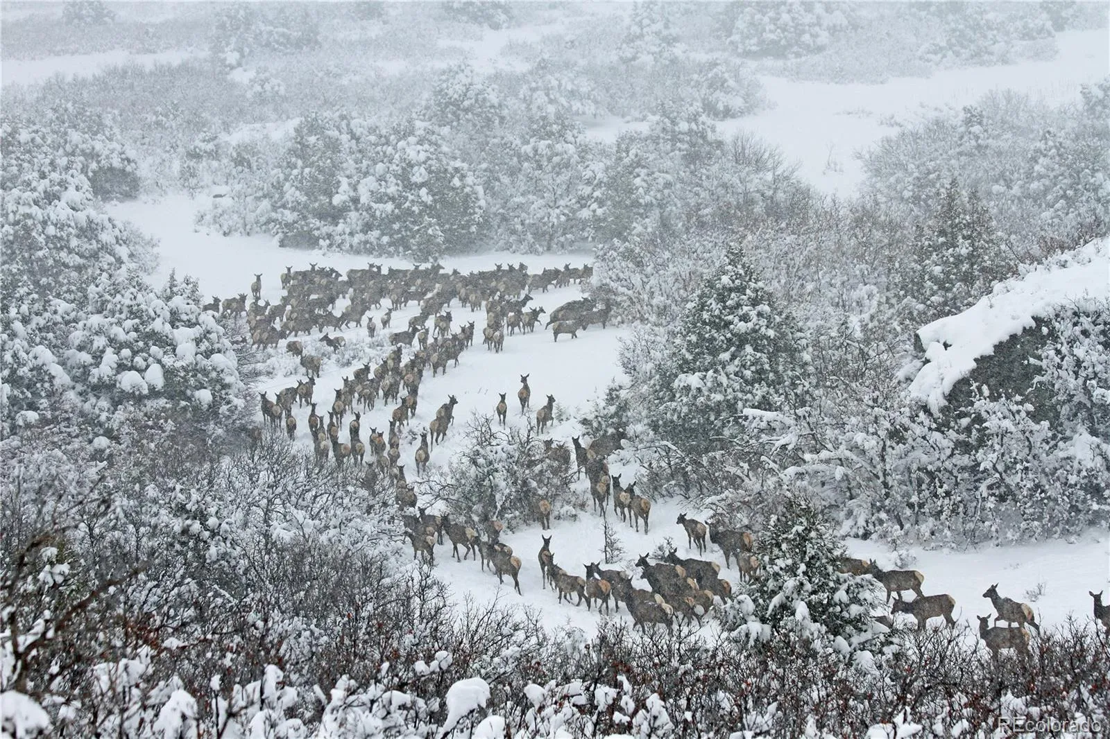 Elk Gap Ranchette proves the old real estate adage of, location, location, location as the most important consideration when purchasing a property. Elk Gap is situated at the base of the West Spanish Peak and adjacent to the Big Wall, an iconic geological anomaly created through a process of molten rock subsequently hardening and erosion over millenia. Near La Veta, Colorado the property also just happens to sit at a gap in the Big Wall that serves as a wildlife corridor, and more specifically as the prime passage for elk herds to move from one valley to another. Elk Gap is one of 20 large parcels in the highly desirable Hole In The Wall Ranch subdivision, known for it’s unparalleled privacy, dark skies, quiet, and abundant wildlife. Located in over-the-counter elk Game Management Unit 85 elk tags are easy to get. If a camera is your tool of choice you won’t be disappointed as all of the elk photos in this brochure were taken on the property. A very tasteful and perfectly situated 2800 sf home with an oversized garage allows grandiose 360 degree views and a view from every window in the house. A recent addition of the garage and more living space was completed this year. The design of the house allows for it to be reconfigured with up to four bedrooms if needed. A wood burning fireplace, hardwood floors and patios with views contribute to it’s Colorado ambiance. Bring your horses if that’s your interest. There is plenty of territory to ride. Minutes away, La Veta offers shopping, restaurants, live music and houses of worship. A regional hospital is approximately 30 minutes away and offers a variety of medical specialties. Elk Gap Ranchette is a special property. Quick Facts 2552 sf newer home, 39+/- acres, Excellent Elk hunting or viewing on the property, Stunning Views of Spanish Peaks & towering rock walls, 3-4 Bedrooms, 15 min to La Veta for shopping restaurants, gated ranch community, Dark skies, privacy, & extremely quiet, Abundant wildlife