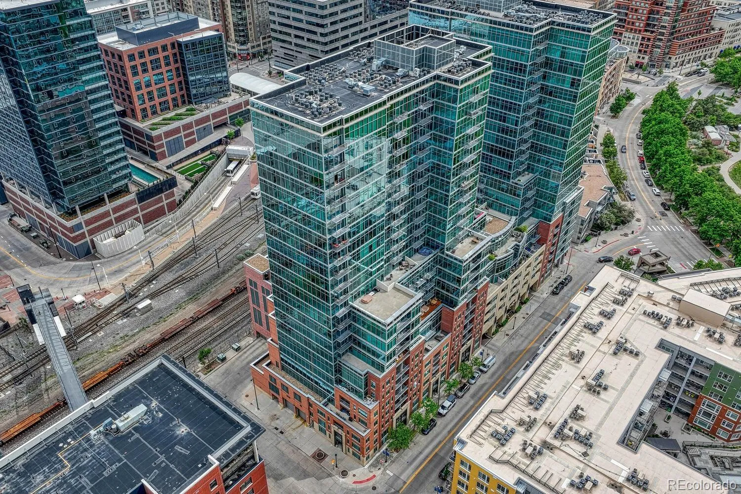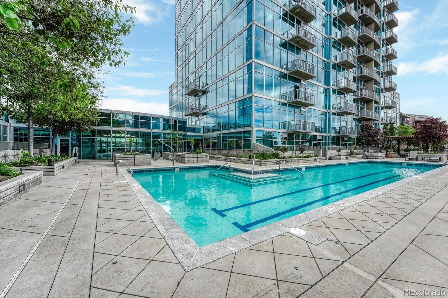 The open-concept main level boasts lovely luxury vinyl flooring, soaring high ceilings, and walls of glass that flood the space with natural light. The exposed cement walls and unique architecture adds a chic, industrial touch. This beautifully decorated unit comes fully furnished, including all furniture and decor, making it move-in ready. Enjoy the convenience of two access doors – one at street level and another through the interior lobby. The Glass House offers 24/7 concierge services, an outdoor pool with a large terrace, gazebo, grills, fire pit, gourmet coffee machines, kitchen, theater room and multiple seating/working areas for working remotely, social gatherings or hosting events. Riverfront Athletic Club Membership is included, with personal training, fitness classes, yoga, and more. Two parking spaces and a storage unit are included, offering ample space for your belongings. The elite parking spots are rentable and sellable assets. Easy access to everything that Denver has to offer; fine dining, Commons Park, Union Station, Breweries and Trails. Embrace the vibrant lifestyle of downtown Denver while enjoying the luxury and convenience of living in the Glass House. Welcome home!