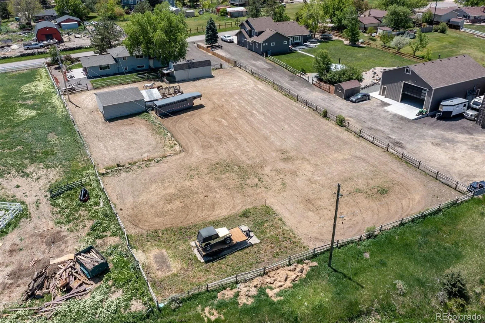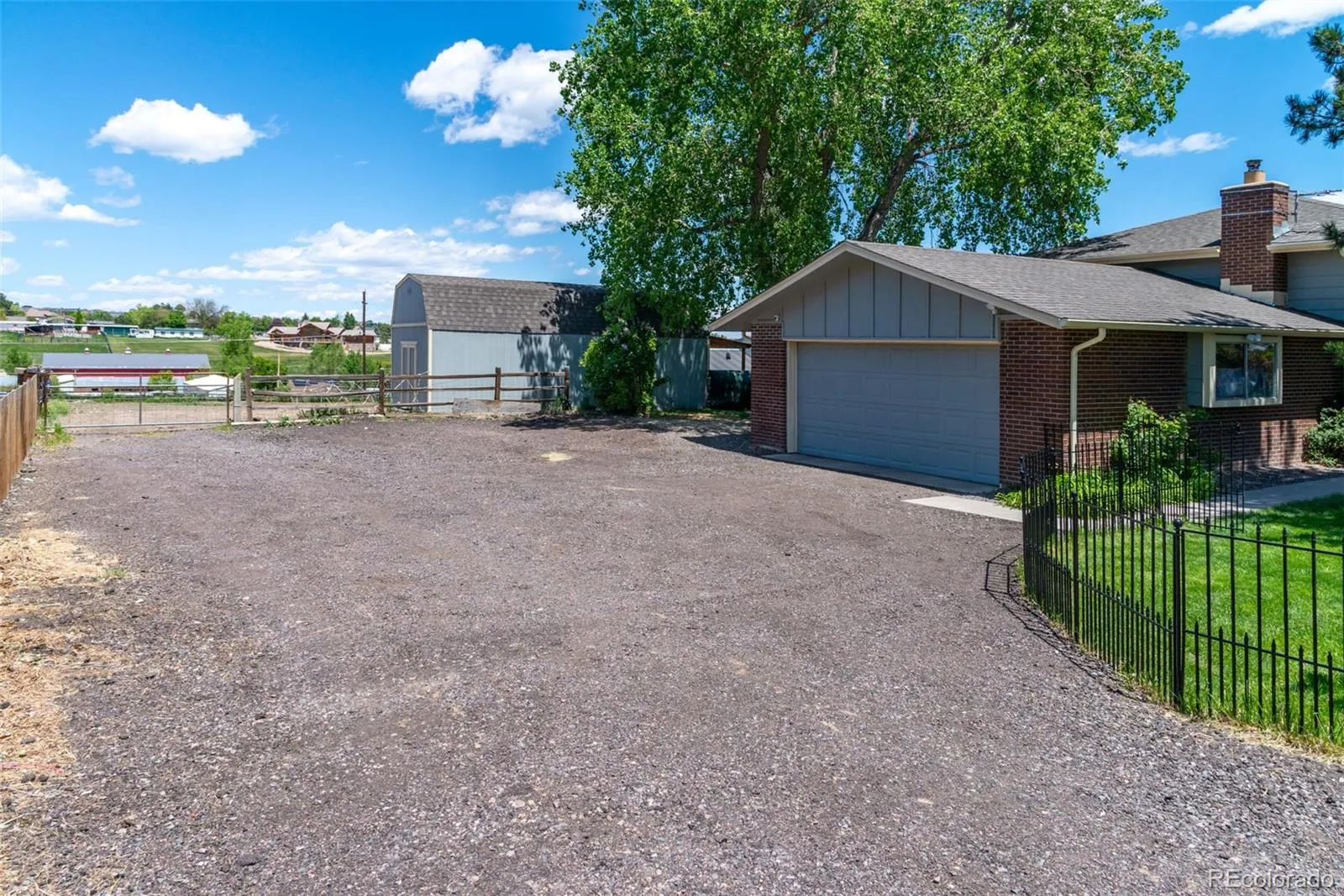 Full Acre in Prime Arvada Location! Just minutes to West Woods Golf Course, Arvada Equestrian Center, trails, shopping, and schools—this rare acre property blends freedom, convenience, and mountain views. No HOA. Horse-ready. Fully set up for your homestead vision. The land is fenced and gated with a 2-stall barn & tack room, fenced pasture, chicken run & coop, mature fruit trees, oversized storage shed, and plenty of room to grow. Bring your animals, your garden, and your plans—this property is ready to go. The tri-level home offers over 2,000 sq ft of finished living space with warm wood floors, an updated kitchen with soft-close cabinetry and all appliances, refreshed baths, and a cozy family room with wood-burning stove. The unfinished basement provides space to expand or create a workshop. Updates you’ll love: new furnace & A/C (Dec 2024), fresh interior paint (2025), oversized 2-car garage with 220V power, and city water. Rare opportunity to own usable acreage in one of Arvada’s most desirable areas—come walk the property and see the lifestyle waiting for you!