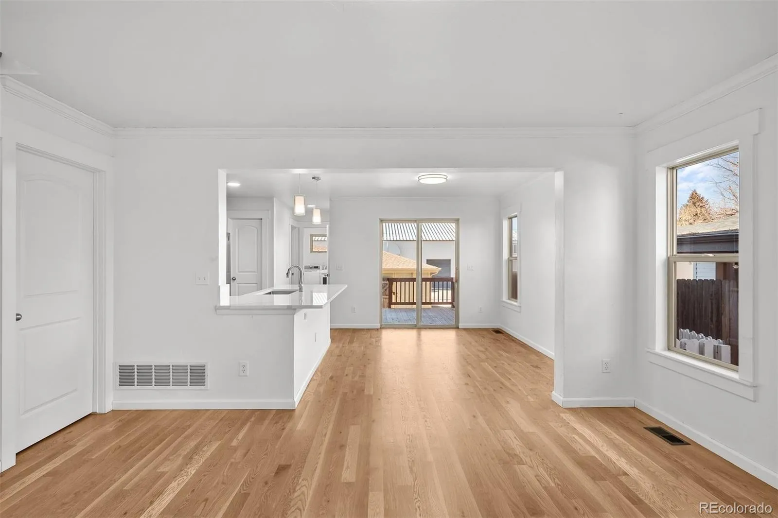 New wood floors, fresh new paint, quartz counter tops just installed, amazing open floor plan with a ton of light, 1 block to the Emporium!