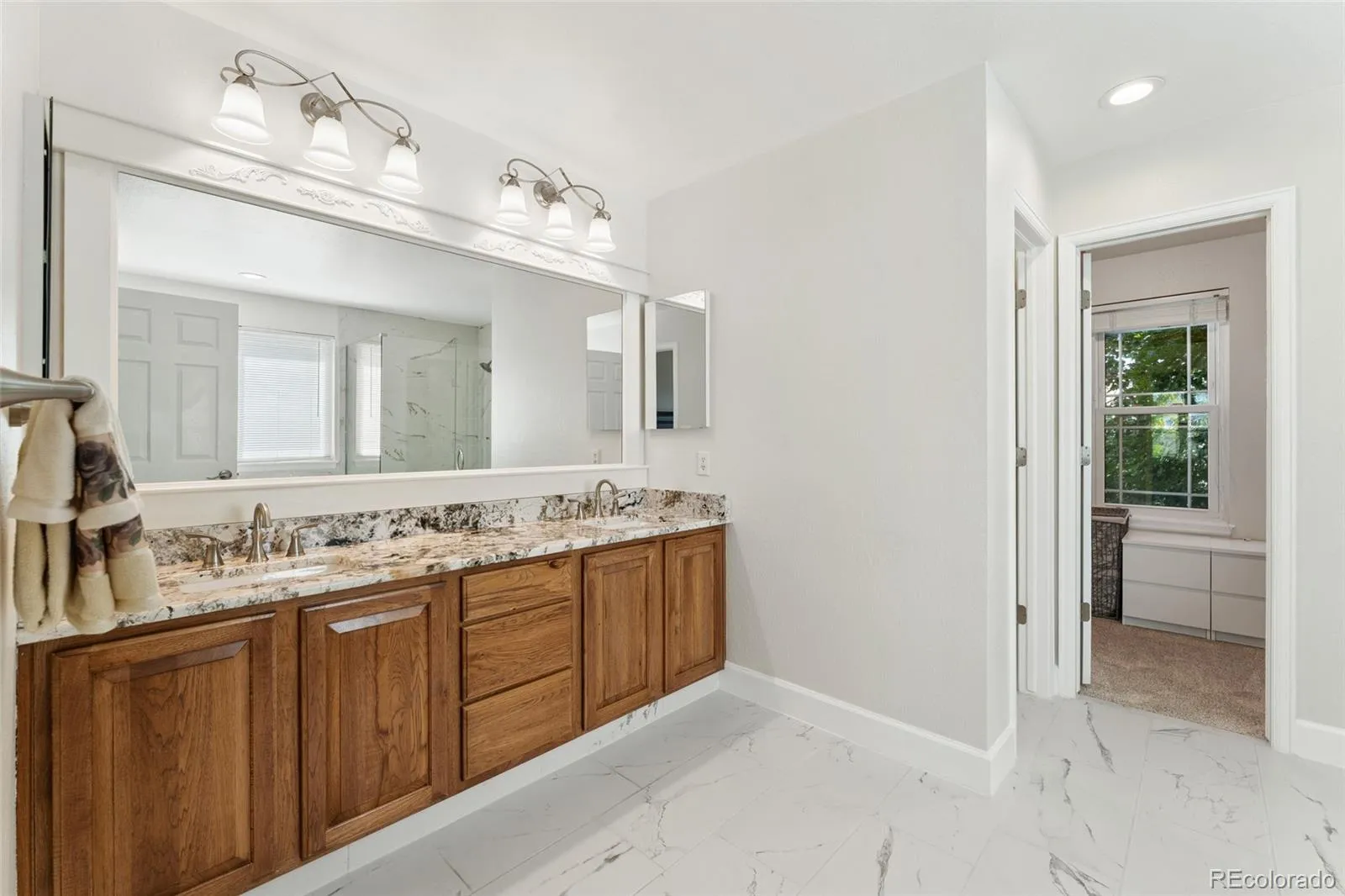 The main level offers semi-open living with formal dining and living rooms, a cozy gas fireplace, built-ins, crown molding, and a guest bedroom. Upstairs, you’ll find a spacious primary suite, two secondary bedrooms, laundry room, brand-new carpet, and walnut-stained oak floors.