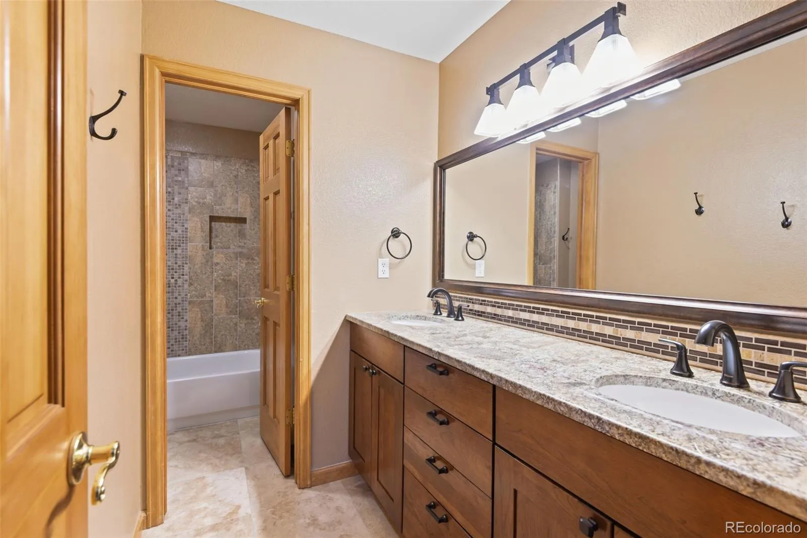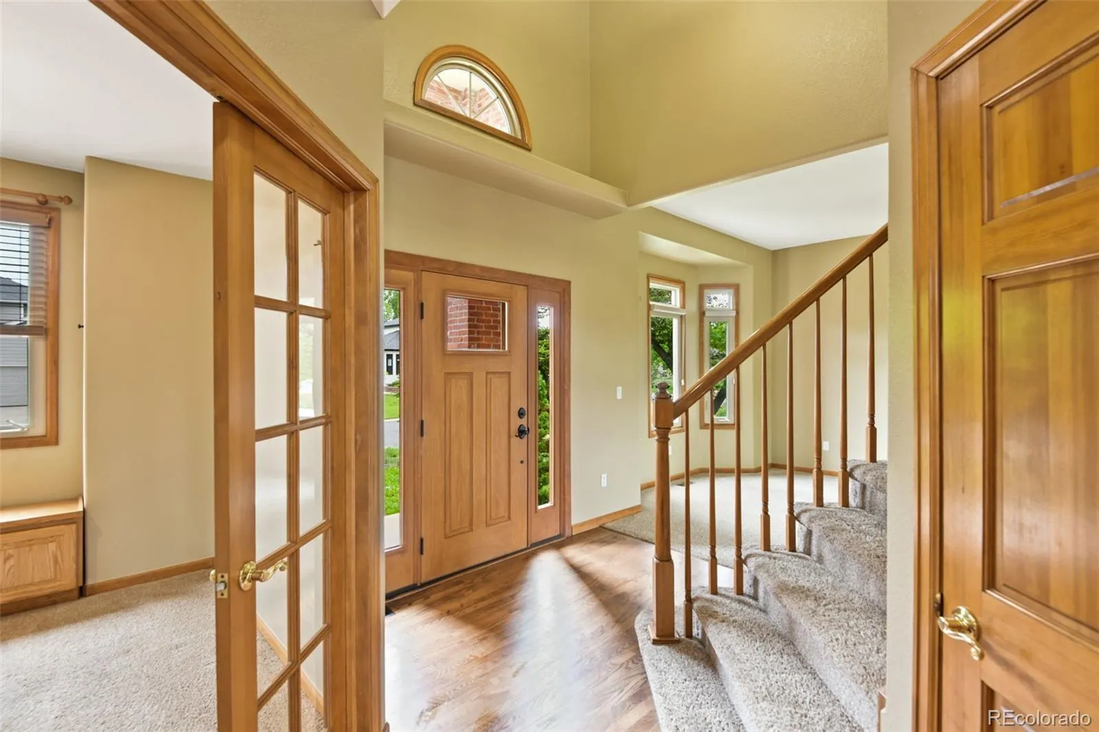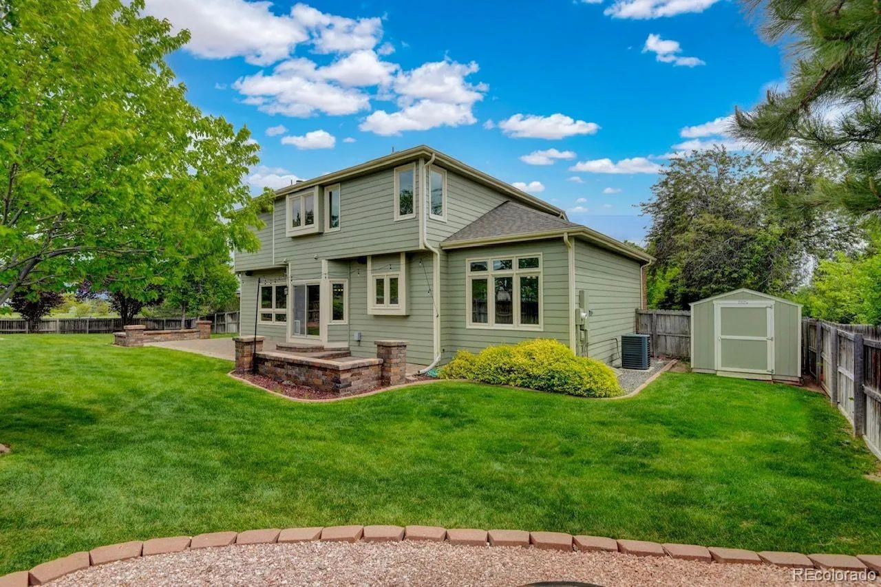 BACKS TO PARK & OPEN SPACE! Rare 1/3-acre corner lot on a quiet, no-through street, backing directly to Green Knolls Park & Jefferson county owned space. This lovingly maintained two-story shines with a remodeled chef’s kitchen, granite counters, stainless appliances, built-ins, and sunny breakfast nook. Formal dining with built in cabinets that frame the view of the back yard, a home office on the main floor with French doors, and inviting family room with fireplace add function and charm. Upstairs features 4 bedrooms, including a spa-like primary suite with heated floors, plus an updated secondary bath with dual sinks. Finished basement offers media center, wet bar, and included TV/speakers—perfect for movie nights! Step outside to lush .35 acre lot with great landscaping, large patio, firepit area, large Tuff Shed, and 220 for hot tub installed. Newer windows with UV tint, and custom blinds. Roof is 4years new. Thoughtful updates, timeless care, and an unbeatable location make this a true gem!