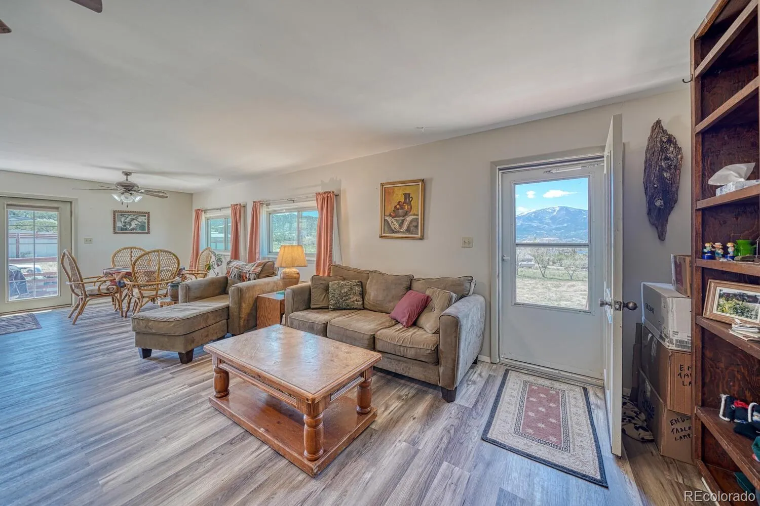 Just minutes from Salida, this home provides lots of value! Brand new roof and gutters in 2025, new exterior paint and deck stain in 2025, finished lock-off basement living area, new replacement windows, new flooring, and so much more! Bring your ideas and make this one your own. Basement living area provides extra income opportunities. Main level features 2 bedrooms, bonus room / office, large living area, and mountain views. Basement features a one room apartment, shared laundry and storage room, plus a workshop area for flex space, art room, or toy storage. Located in the desirable Pinon Hills neighborhood, enjoy no HOA and great mountains views. Check this one out today!