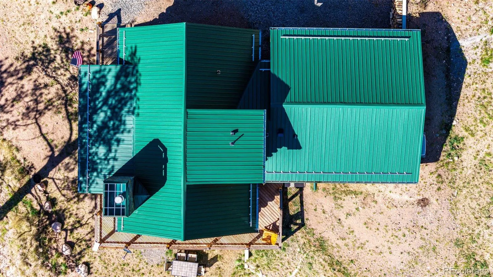 Ask about short-term rental potential! Enjoy AND earn passive income! See the last photo! Nestled in the mountains, this luxury log home offers a wonderful alpine living experience. Situated on 35 acres, this 2 bed, 2 bath haven combines rustic charm with modern luxury and sunrise to sunset views including Pike’s Peak. Efficient use of space with an open-concept living and dining area features vaulted ceilings and a wood-burning fireplace offers the perfect setting to gather with friends and family. Heated floors throughout the home (even the primary shower) will keep you warm all winter long. The kitchen has stainless steel appliances, granite countertops, custom cabinetry and pantry. The primary bedroom includes an en-suite bathroom. The upstairs bedroom and full bathroom are perfect for guests. The unfinished walkout basement provides potential to create more living space, a game room, home theater, additional bedrooms, or whatever you can imagine. The basement has 12-foot ceilings and a reinforced safe room, offering you peace of mind and a secure retreat. The wraparound deck invites you to bask in the fresh mountain air all day, where you can experience the beauty of Colorado’s four seasons in your own backyard. Whether you’re seeking a peaceful mountain retreat or a base for your outdoor adventures, this property offers the perfect blend of comfort and natural beauty. Nearby fly fishing on the North Fork of the S Platte River. Other features include a whole house Generac generator for backup power. A whole house fire sprinkler system (this is what the discreet, round fixtures are on the ceiling). Full RV hookups with 30 amp service. A 1000-gallon buried propane tank. Metal roof with snow dams. Domestic well. The Sellers’ original idea was to build another home nearby and keep this as an ADU for potential short-term rental income or space for family. That’s why the septic is adequate for 6-7 bedrooms. The road maintenance agreement plans to pave the road.