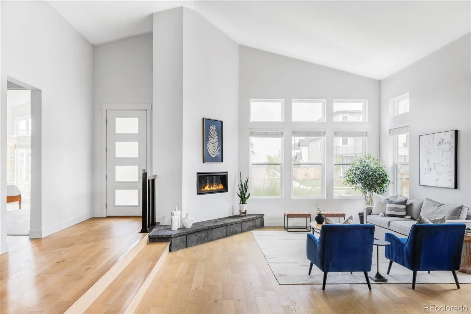 Built in 2021, this beautifully designed mid-century modern inspired home offers the perfect balance of style and everyday comfort. The open-concept main level features warm oak flooring, soaring vaulted ceilings and large windows that fill the space with natural light. A sleek gas fireplace anchors the living room, while the gourmet kitchen impresses with stainless steel appliances—including a gas range—quartz countertops, statement pendant lighting, ample cabinetry and a walk-in pantry. The main-floor primary suite is a true retreat with a spacious walk-in closet and a spa-like en-suite bathroom with a floating double vanity and a glass-enclosed shower. Two additional bedrooms, a full bath, a stylish powder room, and a convenient laundry room are also on the main level. The mudroom connects directly to the attached two-car oversized garage, providing a practical and polished transition space. The finished basement adds valuable versatility with a large second living area, a fourth bedroom, full bath and storage. Outside, enjoy a private backyard oasis with a covered patio, poured concrete extension and fire pit—perfect for entertaining or relaxing under the stars. Ideally located across from Butterfly Park and within walking distance to Central Park’s largest pool with a waterslide, playgrounds, basketball and pickleball courts, top-rated schools, Pearl Market, the Wildlife Refuge and miles of trails. Minutes to Northfield Shopping Center, Anschutz Medical Campus, DIA, Cherry Creek and Downtown Denver. Hurry to see this one!