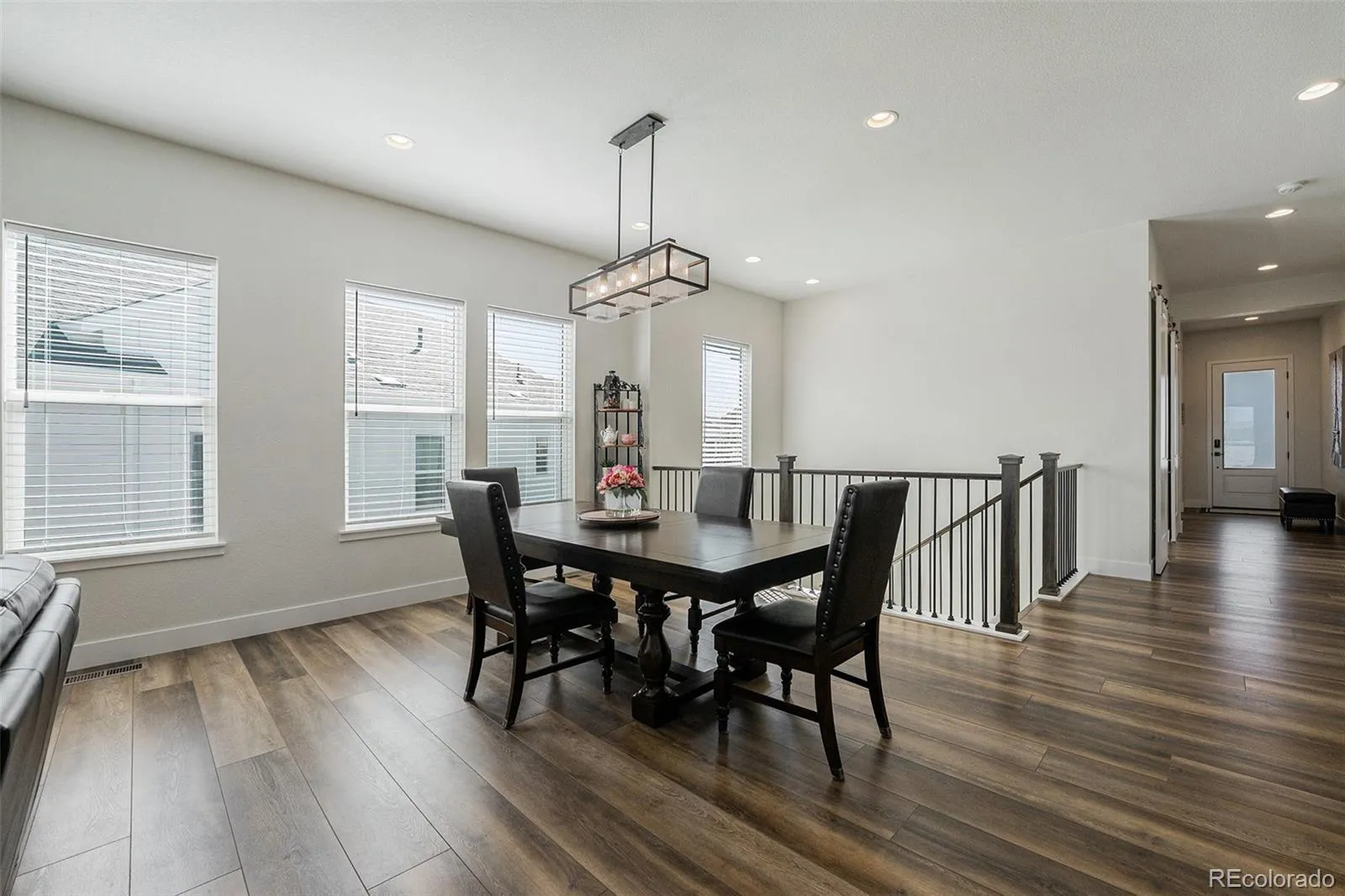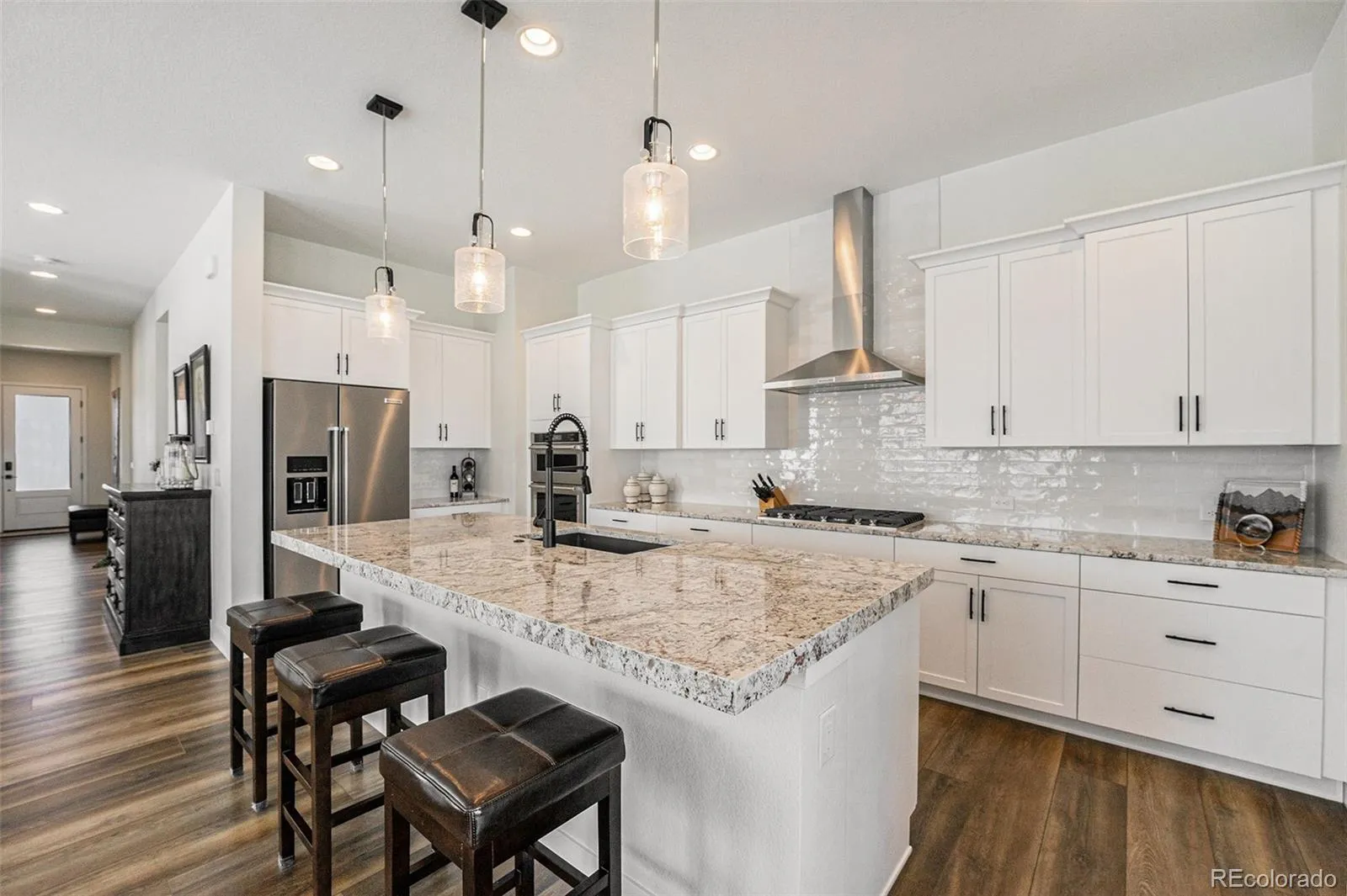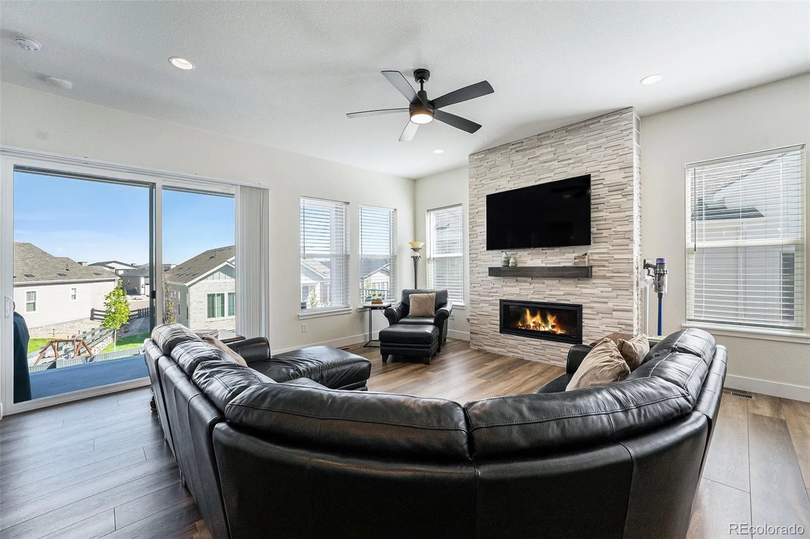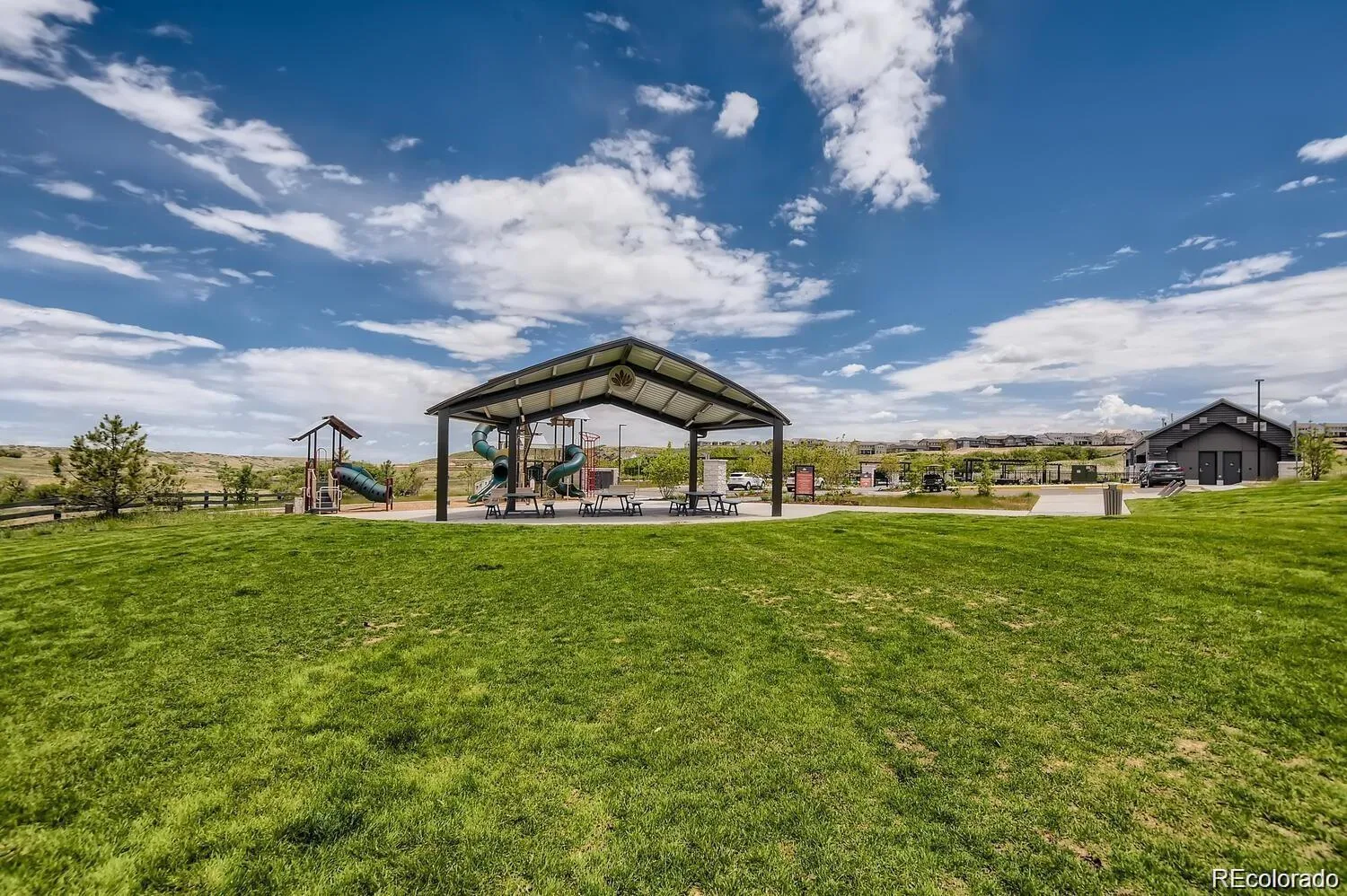 Move-In Ready! Luxury ranch with main floor primary suite in The Canyons, Castle Pines! Welcome to this stunning, move-in-ready ranch-style home in the coveted Canyons community of Castle Pines. This 3-bedroom, 4-bathroom gem features a main floor primary suite and a light-filled, open floor plan with soaring ceilings and luxury vinyl plank flooring throughout. The expansive great room, anchored by a modern linear gas fireplace, flows seamlessly into a gourmet kitchen designed for culinary enthusiasts. Enjoy a 5-burner gas cooktop, quartz countertops, upgraded cabinetry, stainless steel appliances, and a spacious island with a breakfast bar. The adjacent dining/morning room is perfect for casual meals or entertaining. Retreat to the luxurious primary suite, complete with an upgraded bath featuring a step-in shower and a large walk-in closet. Two additional spacious bedrooms offer private full and 3/4 baths, ensuring comfort for family or guests. A versatile office/den/reading room with stylish barn doors, main floor laundry with sink, and a mud room with built-ins add practicality and charm. Step outside to a large covered patio with a firepit, garden planter, and a gas stub for your grill, creating an ideal outdoor living area. The home is equipped with modern conveniences, including a high-efficiency furnace, air cleaner, and a 220V garage outlet for electric vehicles. Designer paint, custom window treatments, and wrought iron railings elevate the home’s sophisticated aesthetic. Located minutes from I-25/C-470, Park Meadows Mall, Denver Tech Center (DTC), Light Rail, SkyRidge Medical Center, Charles Schwab Campus, and factory outlets, this home offers unparalleled convenience. Enjoy walkable access to parks, trails, pool, fitness, clubhouse, pickleball, The Exchange Coffee House, The Canyon House, and exceptional amenities in The Canyons community. Don’t miss this opportunity to own a move-in-ready masterpiece in one of Castle Pines’ premier neighborhood!
