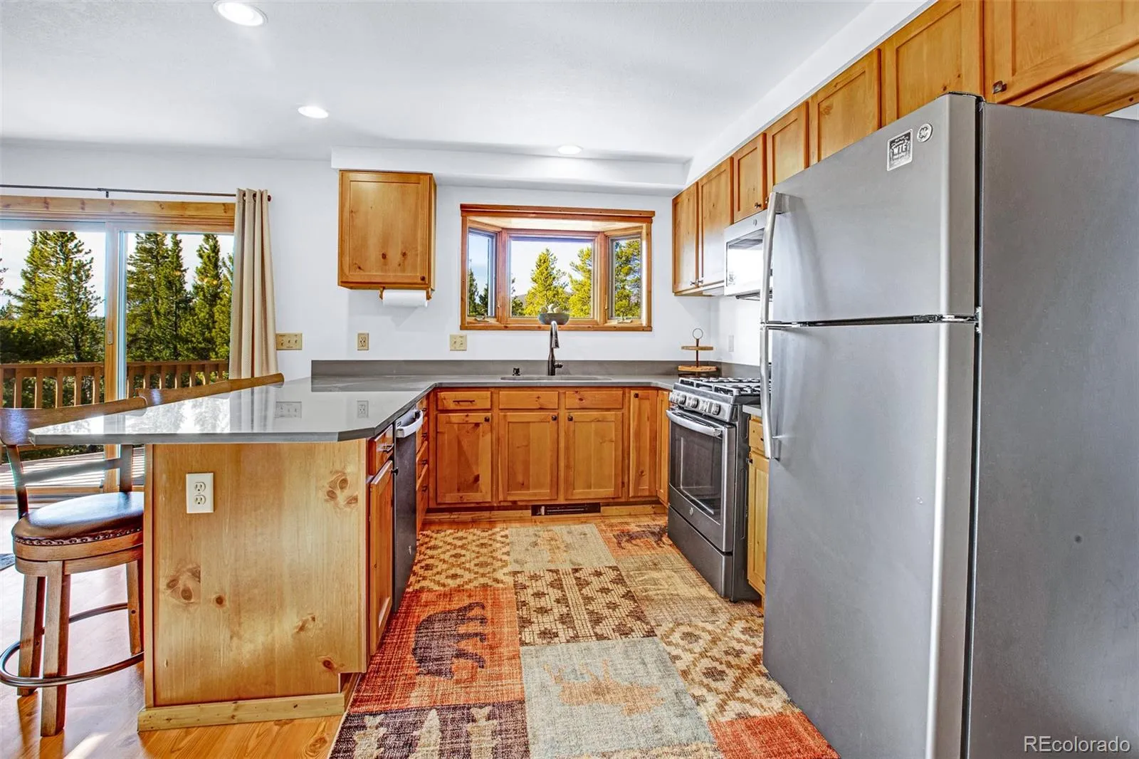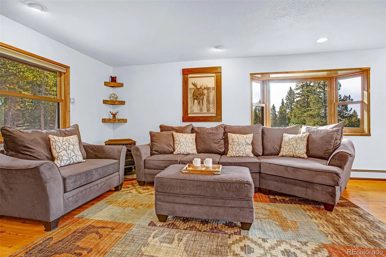 Discover your very own mountain retreat in this UPDATED and FULLY FURNISHED 3-bedroom, 2-bathroom home WITH A ENTLY STAINED EXTERIOR (2025) & FRESHLY PAINTED INTERIOR (2026), perfectly situated on 2 EXPANSIVE ACRES near Fairplay, Colorado! Tucked away near the end of a peaceful dead-end road, this 1,844 sq ft residence offers the BEST OF MOUNTAIN LIVING with breathtaking MOUNTAIN VIEWS and a desirable SOUTH-FACING orientation, ensuring abundant natural light throughout the day. The recently updated kitchen and bathrooms elevate the interior, while 2 sunny decks provide ideal spots for relaxation and enjoying the panorama and the park like setting! And just wait until you see all of the available space in the ATTACHED 2-CAR GARAGE PLUS the OVERSIZED DETACHED 3+ CAR GARAGE/QUONSET HUT/WORKSHOP AND the ADDITIONAL STORAGE SHED! There is definitely no lack of storage or work space here! Stay comfortable year-round with both a PELLET STOVE and NATURAL GAS hot water baseboard heat. For ultimate peace of mind, backup solar and generator are in place, guaranteeing uninterrupted power if the electricity ever goes out. Just 25 miles from Main Street Breckenridge! You can easily drive there, or you can catch the FREE BUS in nearby Fairplay or Alma! This mountain property is close enough to the world renowned ski town to enjoy all of its benefits, yet far enough away from the hustle and bustle so that you can have your PEACE AND QUIET too. Whether you’re living here full time, visiting on the weekends, or using it as a Short Term Rental, 375 Gold Trail is ready for you!