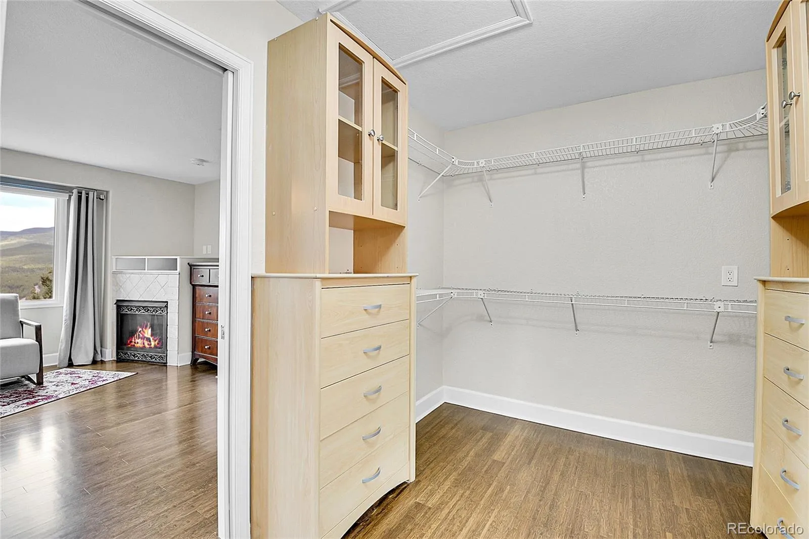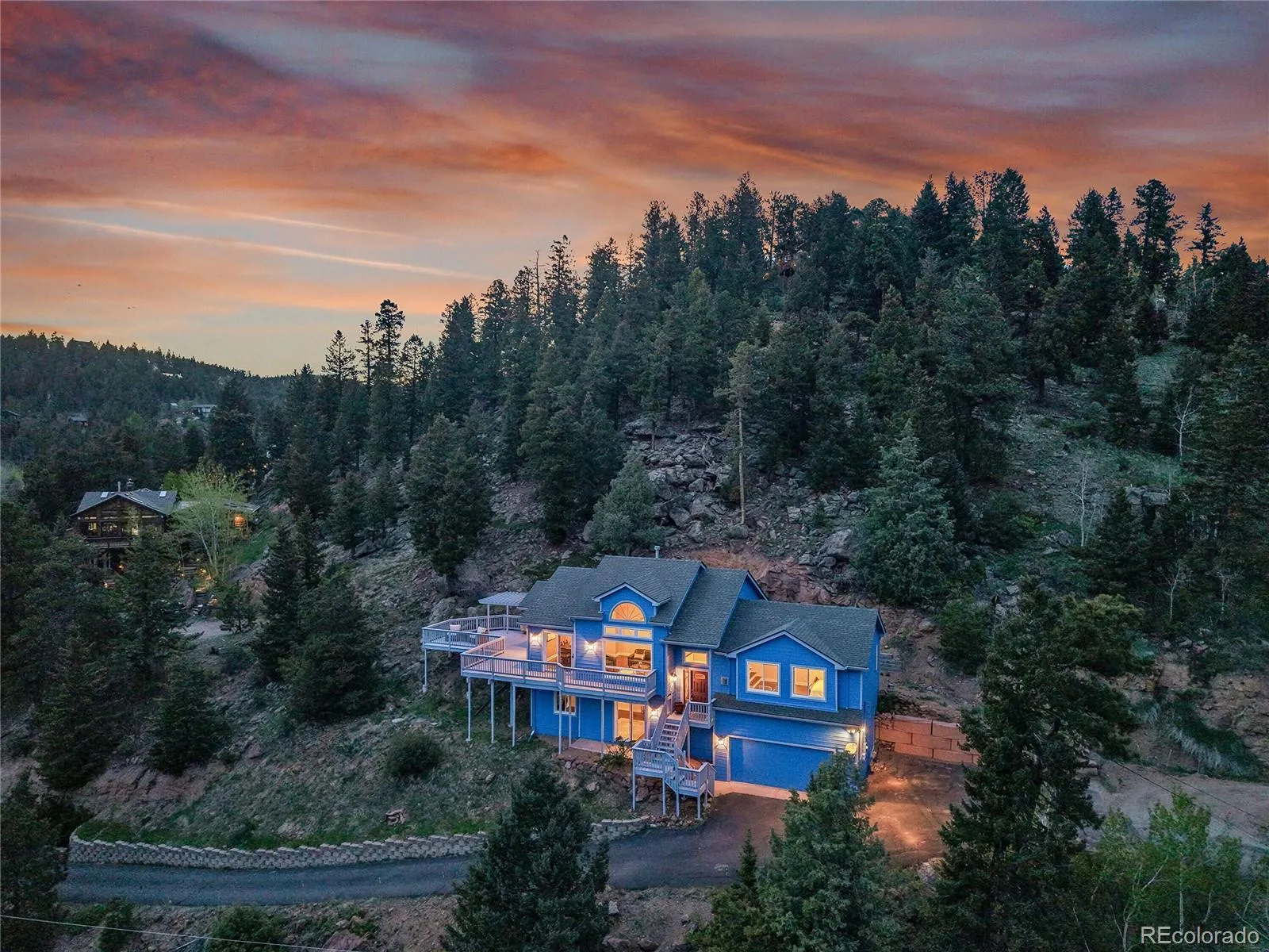 Explore this stunning 3-bed, 3-bath Evergreen retreat via video & 3D tour at www.3363ElkRun.com. Mountain views from every window, a spacious deck & modern upgrades make this your perfect Colorado escape. This move-in ready home is perfect for nature lovers and remote workers, as it blends privacy and beauty with modern comfort. Inside, you’ll find bright, open main-level living with beautiful bamboo flooring & a large view window to take in the sweeping scenery. The main level also offers an oversized primary suite w/ fireplace & luxurious spa-inspired bathroom with steam shower & walk-in closet. The newly updated modern kitchen features quartz countertops, brand-new appliances, large pantry closet, breakfast nook & bar seating. Step out onto the expansive deck, where there’s ample space for lounging, dining, & soaking in the beauty of outdoor living. A second ensuite bedroom w/ walk-in closet & double doors can serve beautifully as a home office. Downstairs, the bright walk-out lower level features a media/family room with exterior access, & a flex space/3rd bedroom with generous closet. A bathroom & large utility/storage room complete this level. The paved driveway has southern exposure that melts snow quickly & parking is abundant with an oversized 2 car garage & parking spaces outside. The home is exquisitely cared for and move-in ready with new furnace, newer high efficiency windows, high-end window shades throughout, new appliances, and more. And, a $7,000 paint credit is offered if blue isn’t your color! High speed internet means working at home is effortless, & there are county maintained paved roads all the way to Golden (35 min) & metro Denver for easy commuting in both summer & winter. This is Colorado living at its best with miles of trails at Maxwell Falls & National Forest, all just 6 min away, only 13 min to amenities in Evergreen, & a little over an hour to DIA. Welcome to your mountain oasis!