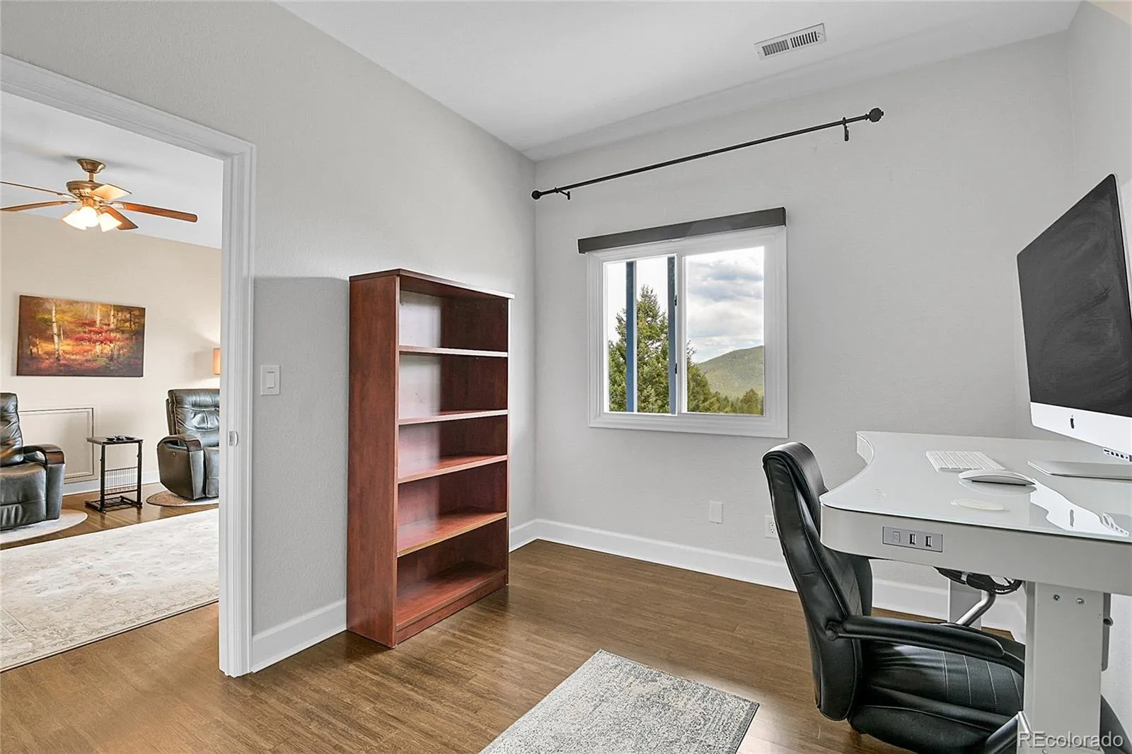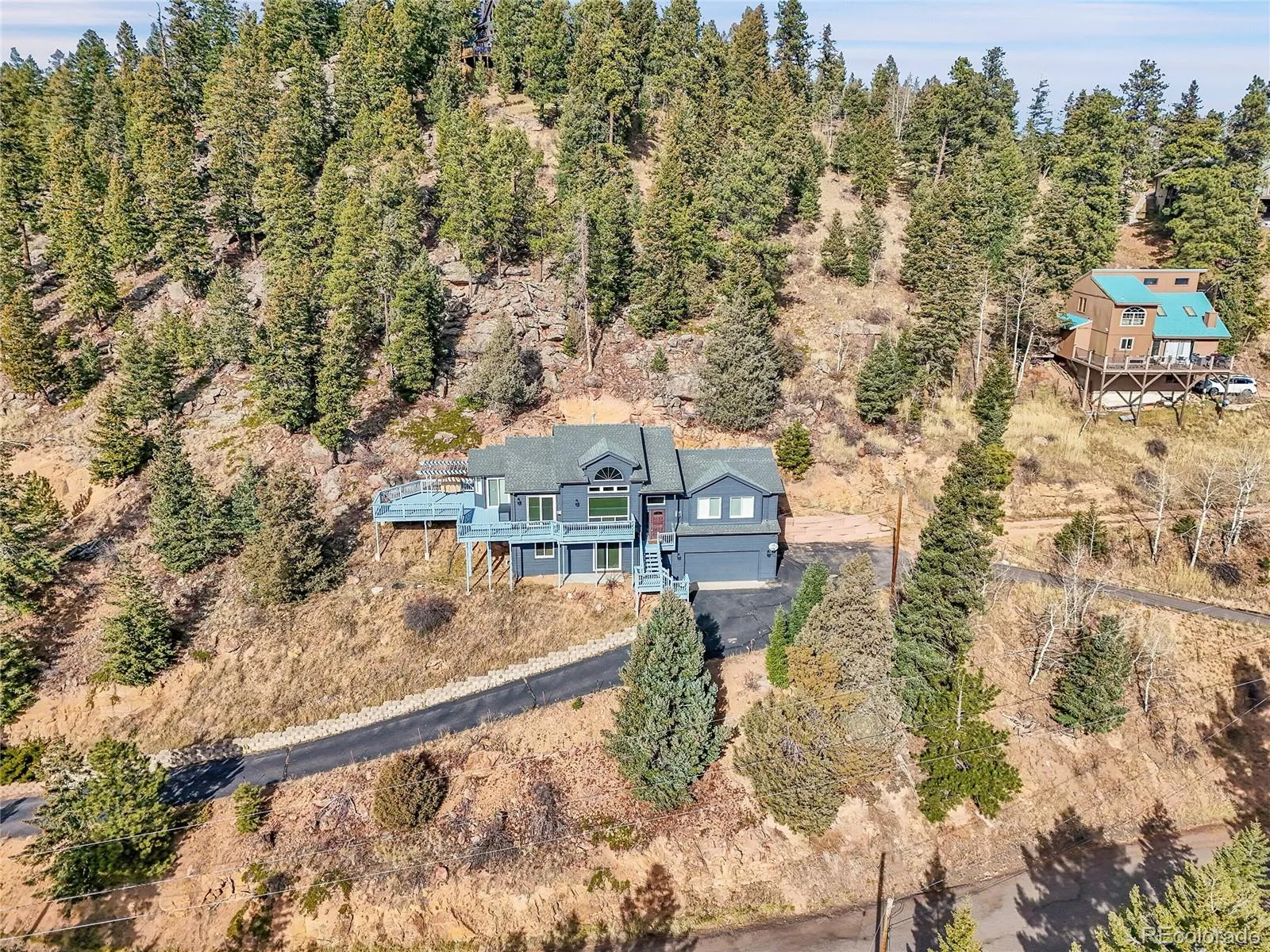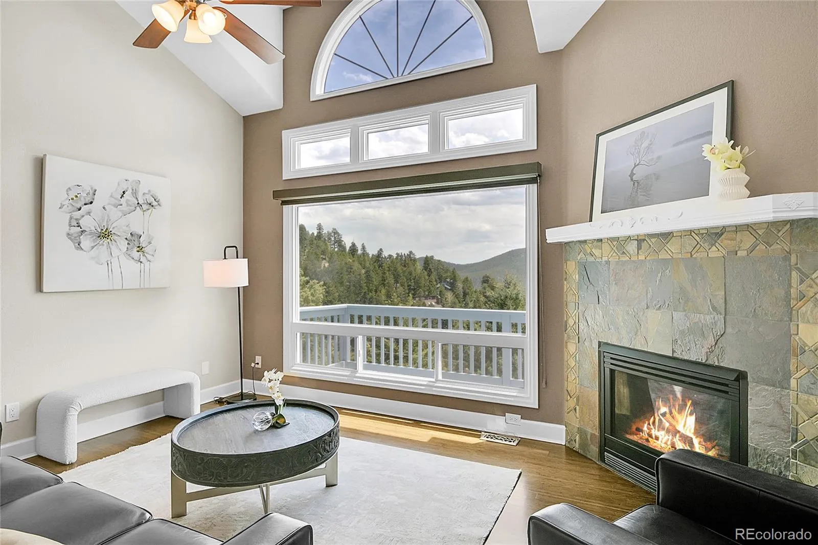 Seller is offering at 15,000 concession in addition to this price improvement! Explore this beautiful Evergreen home via video & 3D tour at www.33633ElkRun.com. (Note that the home is now painted gray!) Mountain views from every window, a spacious deck & modern upgrades make this your perfect Colorado escape. This move-in ready home is perfect for nature lovers and remote workers, as it blends privacy and beauty with modern comfort. Inside, you’ll find bright, open main-level living with beautiful bamboo flooring & a large view window to take in the sweeping scenery. The main level also offers an oversized primary suite w/ fireplace & luxurious spa-inspired bathroom with steam shower & walk-in closet. The newly updated modern kitchen features quartz countertops, brand-new appliances, large pantry closet, breakfast nook & bar seating. Step out onto the expansive deck, where there’s ample space for lounging, dining, & soaking in the beauty of outdoor living. A second ensuite bedroom w/ walk-in closet & double doors can serve beautifully as a home office. Downstairs, the bright walk-out lower level features a media/family room with exterior access, & a flex space/3rd bedroom with generous closet. A bathroom & large utility/storage room complete this level. The paved driveway has southern exposure that melts snow quickly & parking is abundant with an oversized 2 car garage & parking spaces outside. The home is exquisitely cared for and move-in ready with new furnace, newer high efficiency windows, high-end window shades throughout, new appliances, and more. High speed internet means working at home is effortless, & there are county maintained paved roads all the way to Golden (35 min) & metro Denver for easy commuting in both summer & winter. This is Colorado living at its best with miles of trails at Maxwell Falls & National Forest, all just 6 min away, only 13 min to amenities in Evergreen, & a little over an hour to DIA. Welcome to your mountain oasis!
