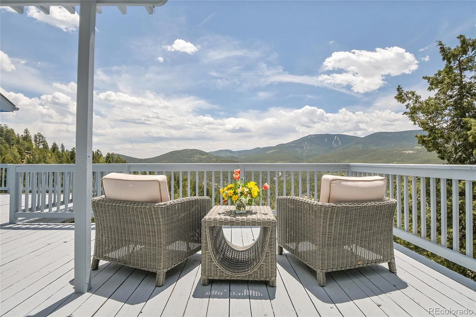 Experience elevated mountain living with breathtaking views from nearly every window in this impeccably maintained and thoughtfully upgraded Evergreen home! $15,000 IN BUYER INCENTIVES INCLUDED! The seller is providing a $7,500 permanent interest rate buydown (boosting your buying power by $18,000) PLUS an additional $7,500 toward exterior paint credit OR extra rate buydown (your choice) AND a Home Warranty! Live here & savor the panoramic views, privacy & beauty around you. This truly magnificent natural scenery is irreplaceable and inherently special and valuable. These gifts of nature can be enjoyed from the sunny expansive deck or light-filled interior. Inside, you’ll find bright, open main-level living with beautiful bamboo flooring. The living room offers a new dramatic view window & lofted ceilings creating the ideal ambiance as you take in the sweeping scenery. The main level also offers a spacious primary suite w/ fireplace & luxurious spa-inspired bathroom complete with a steam shower & walk-in closet. The heart of the home is a newly updated kitchen with quartz countertops & brand-new appliances. Also find a large pantry closet, breakfast nook, & bar seating. A second ensuite bedroom with walk-in closet and double-door entry serves beautifully as a guest room or a home office. Downstairs, the bright walk-out lower level features a family room w/ exterior access, a 3rd bedroom with generous closet space, bathroom & large utility/storage room. The paved driveway offers southern exposure, & parking is abundant with an oversized 2 car garage & flat parking outside. The home is exquisitely cared for and offers peace of mind with new furnace, newer high efficiency windows, high-end window shades throughout, new appliances, newer exterior paint, high-speed internet & more. This is Colorado living at its best w/ a multitude of trails, Maxwell Falls, & National Forest just 6 min away, & only 13 min to amenities in Evergreen. Video, 3D at www.33633ElkRun.com
