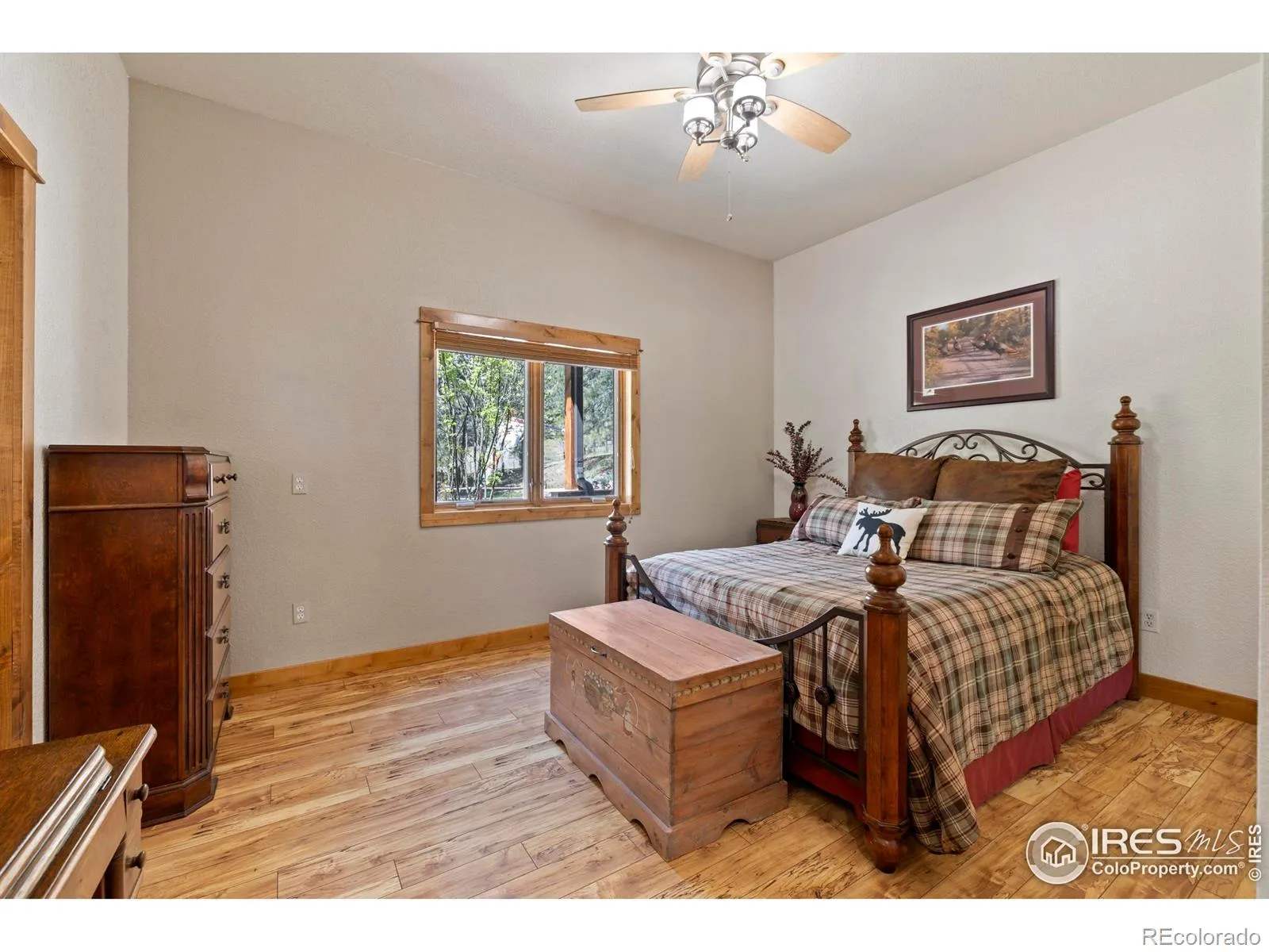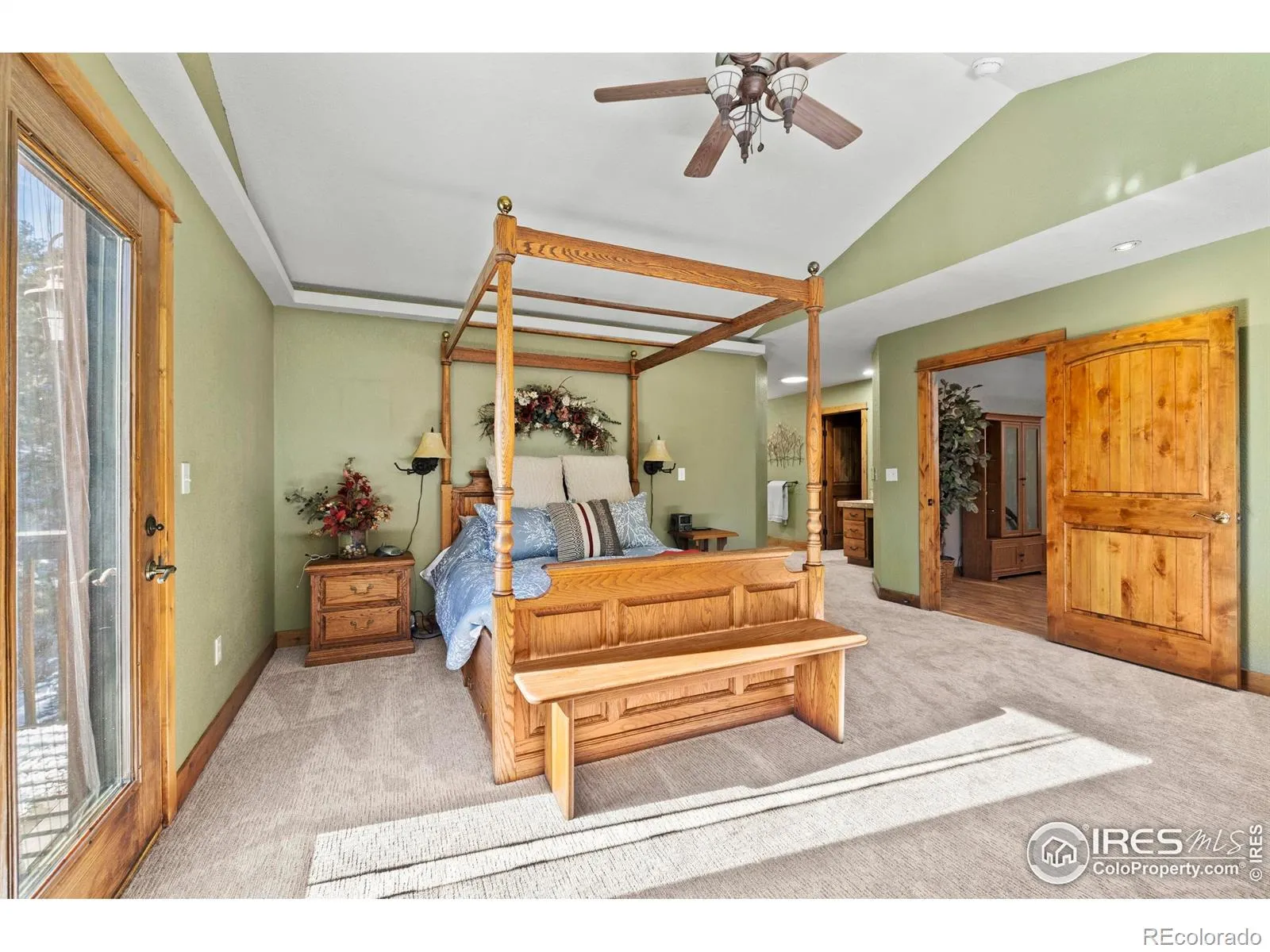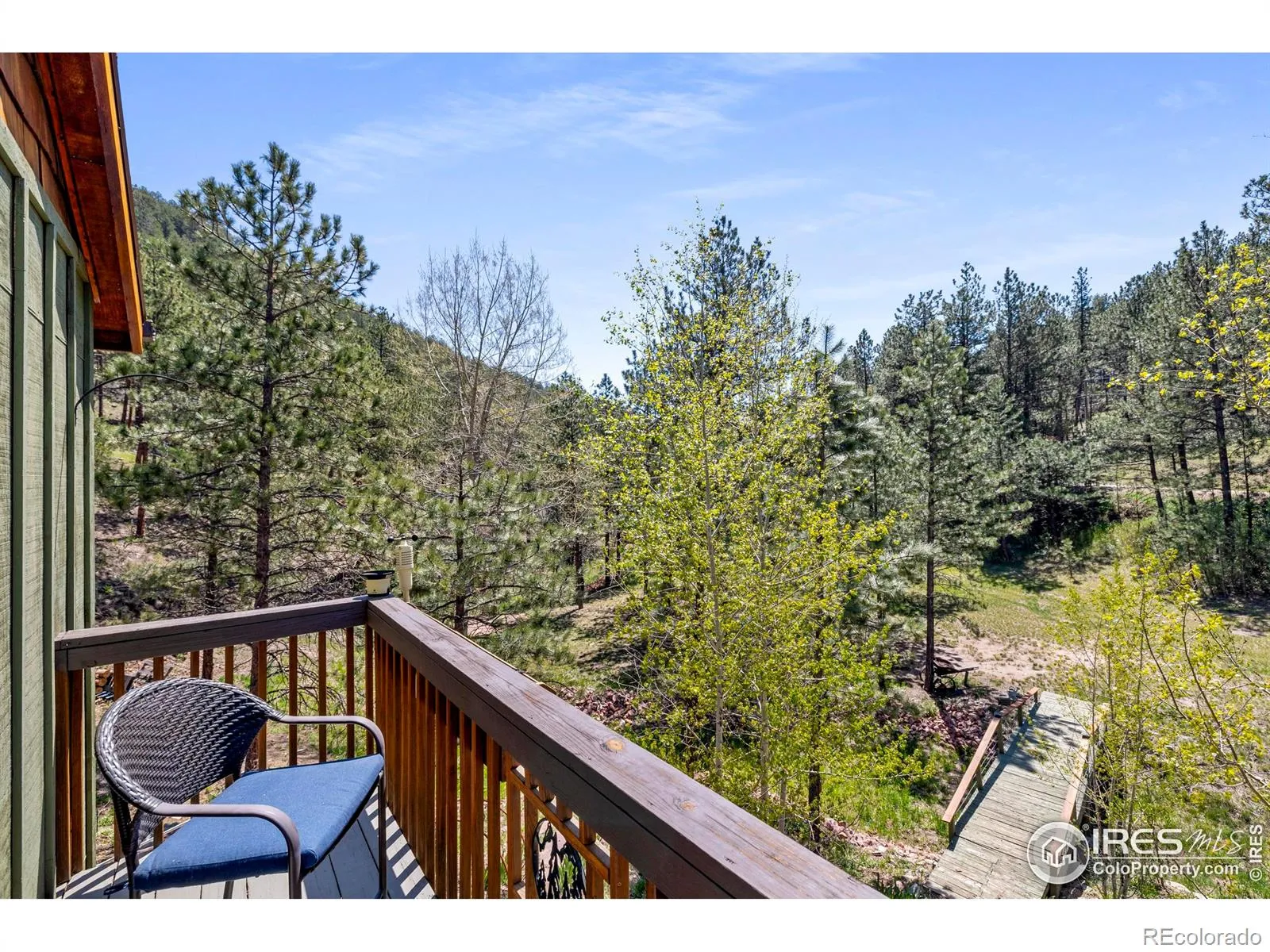 Remarkable custom-built residence nestled on almost 38 acres & within a 450-acre private wildlife conservation easement, offering an extraordinary blend of luxury & natural beauty. The heart of this home features a stunning 2-story great room with a wood stove, adorned with tongue and groove ceiling, creating an impressive architectural statement. The gourmet kitchen showcases high-end appliances & opens to the great room filled with abundant natural light streaming through large windows bringing the forest right into the living room. The spacious primary bedroom suite provides a private balcony retreat, complemented by a luxurious bathroom featuring a walk-in shower, 6-foot soaking tub & water feature. A versatile loft space off the primary bathroom serves perfectly as an office or additional living area. Outdoor living reaches new heights with a wraparound deck, complete with a step-in hot tub surrounded by a serene waterfall & koi pond. There is lovely outdoor space with a separate driveway that can easily accommodate a horse barn, while a charming bridge crosses a seasonal stream, adding to the property’s enchanting atmosphere. Additional upgrades include: new boiler heating system, brand new carpet, some new interior paint, a 12 x 16 shed, custom closets, in-floor radiant heat, RV dump station, storage above the garage attic, & an almost 1200sf garage which could fit up to 4 vehicles & all your toys. The home’s thoughtful design includes 3 bedrooms, 3 bathrooms, with the option to create a 4th bedroom in the upper floor loft/exercise room. Located near Ramsay-Shockey Open Space & just 20 minutes to the city of Loveland, this property presents possibilities for hosting weddings and events. With only a road association HOA, this sanctuary combines privacy with accessibility, offering a truly distinctive Colorado living experience. Property has been pre-inspected and is in top-notch shape! Recent hail storm in July 2025- Seller will replace roof prior to closing.