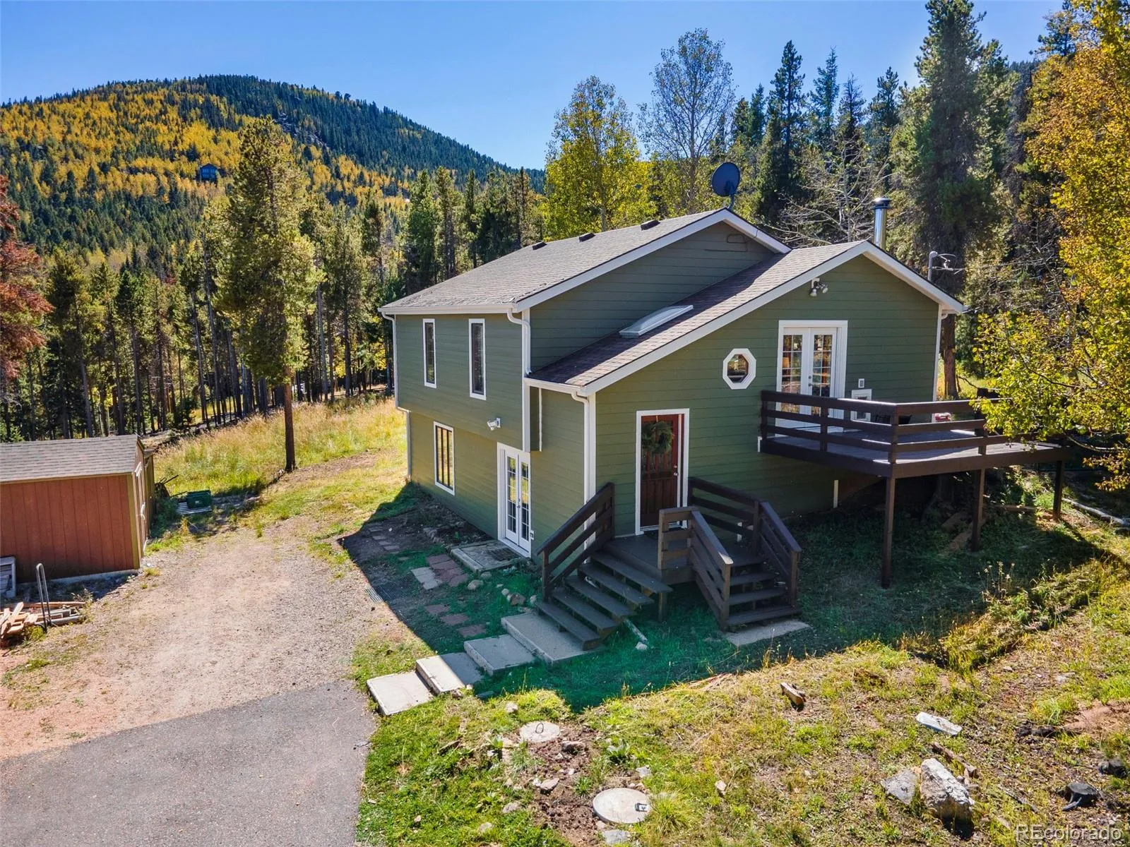 Incredible price on this peaceful mountain retreat in beautiful Conifer, Colorado! Nestled on 2 relatively flat, usable acres surrounded by majestic pines, this charming home offers the perfect blend of privacy, comfort, and natural beauty. Whether you’re looking for a full-time residence or a weekend escape, this property invites you to slow down, breathe deep, and enjoy the serenity of Colorado living. Inside, you’ll find a warm and welcoming layout with 3 bedrooms and 2 bathrooms, thoughtfully designed to maximize space and flow. There is a secondary primary suite on the lower level, perfect for guests or family. The great room with vaulted ceilings, large windows and woodburning stove makes it easy to relax, entertain, and feel right at home. Step out onto the deck or back patio —ideal for enjoying your morning coffee, unwinding after a long day, or hosting casual gatherings with friends and family. There is even a place to put a hot tub if you choose. A major highlight of this home is the recently installed Hardie board siding. Built to last, it’s not only low maintenance, but also fire resistant, color fade resistant, and woodpecker resistant—giving you long-term durability and peace of mind in Colorado’s mountain environment. It will help with Homeowners costs too! And with a transferable 30-year warranty, your investment is protected for years to come. Home is also in the process of getting a new septic tank. Pet owners will appreciate the fenced area, offering a safe and secure space for your furry companions to roam freely. Located just a short drive from Denver, Conifer combines small-town charm with easy access to outdoor adventure, top-rated schools, and city conveniences. Home is on a school bus route, so roads are plowed first thing. A back-up generator is also included so there is no threat of weather conditions impacting your comfort, ever!