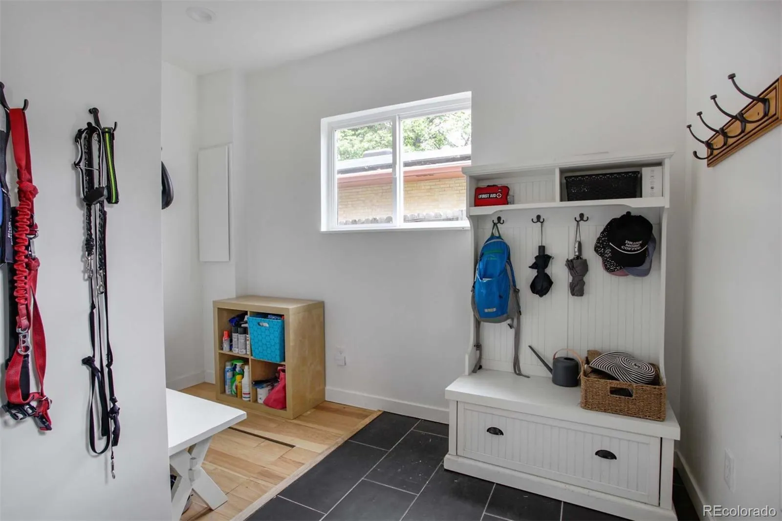 The mudroom leads to the backyard, complete with raised garden beds with irrigation, a storage shed, 2-car garage, and 2 additional off-street parking spaces.