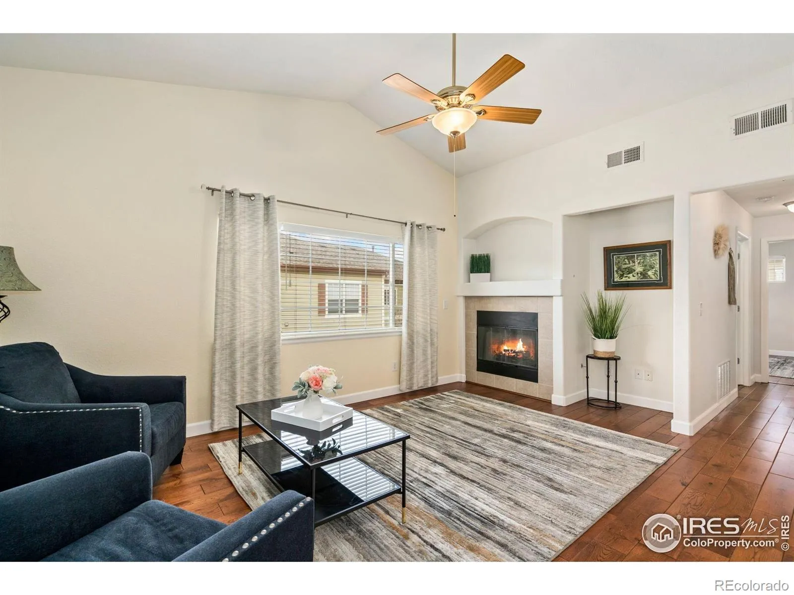 Wonderfully maintained and upgraded condo in desirable Morningside Village features hardwood flooring, 42-inch cherry cabinets, stainless appliances, gas fireplace, vaulted ceilings, fresh paint, attached garage, and a sunny patio to enjoy your morning coffee. Just down the street from the HOA maintained pool and clubhouse, this is truly a move-in ready condo with myriad features. The spacious and sunny primary bedroom features vaulted ceiling and a walk-in closet and connects to a shared full primary bathroom with dual vanity that has recently installed LVP flooring. With a very efficient and well-thought-out layout, this condo has all the space you need while offering a low-maintenance lock-and-leave lifestyle. HOA covers pool, clubhouse, water/sewer, exterior maintenance, and common area maintenance. Great southeast Fort Collins location with easy access to shopping, restaurants, and I-25 for commuters. This is truly an impressive condo for this price not to be missed. Seller is including a First American Home Warranty with purchase for buyer peace of mind!