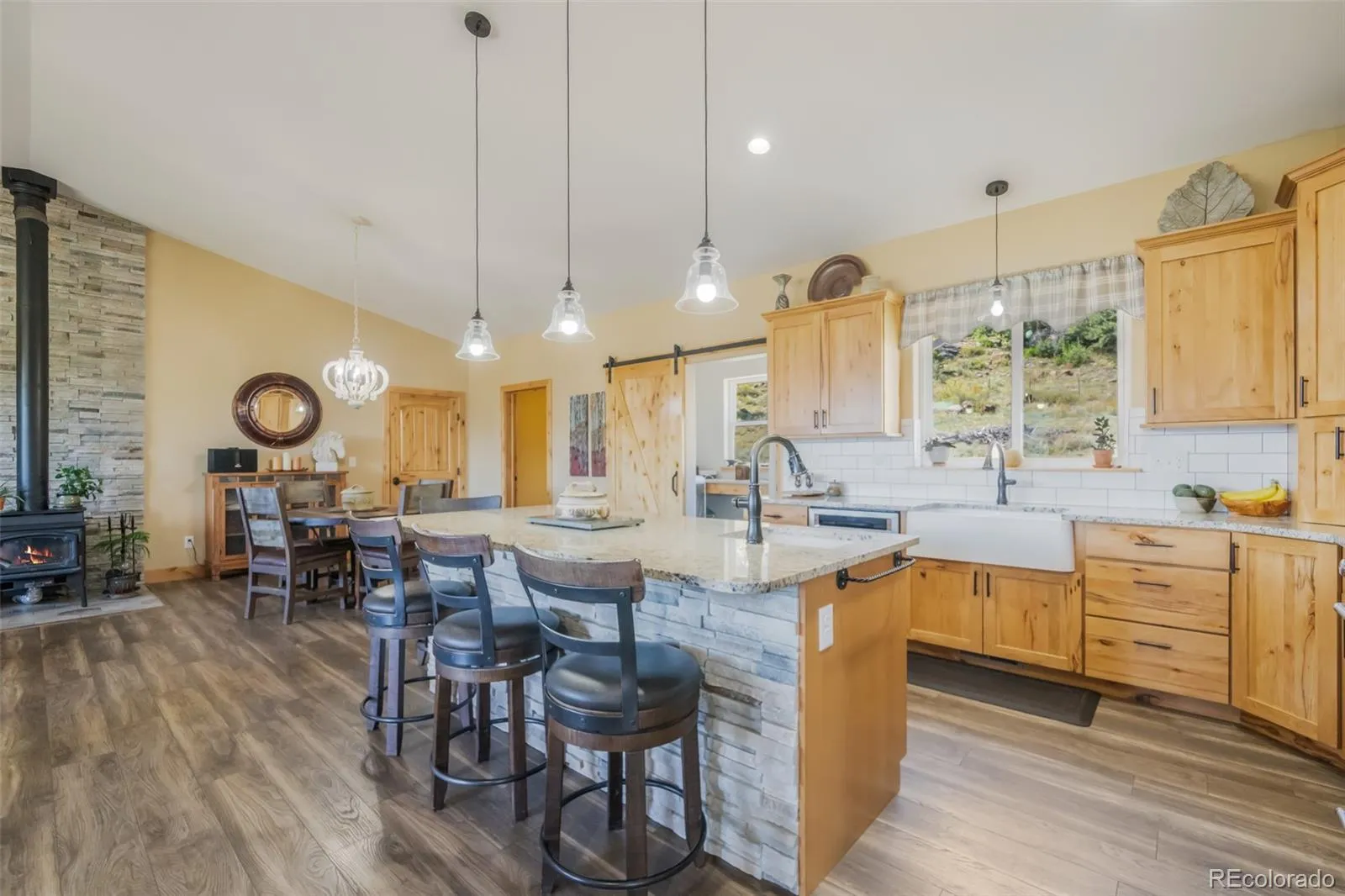 Inside, the home boasts a seamless blend of rustic charm and modern sophistication. The heart of the home is its open concept great room and the kitchen is a chef’s dream outfitted with top-of-the-line appliances, sleek finishes, and ample storage. Whether preparing gourmet meals or hosting friends and family, this kitchen ensures effortless functionality and style.