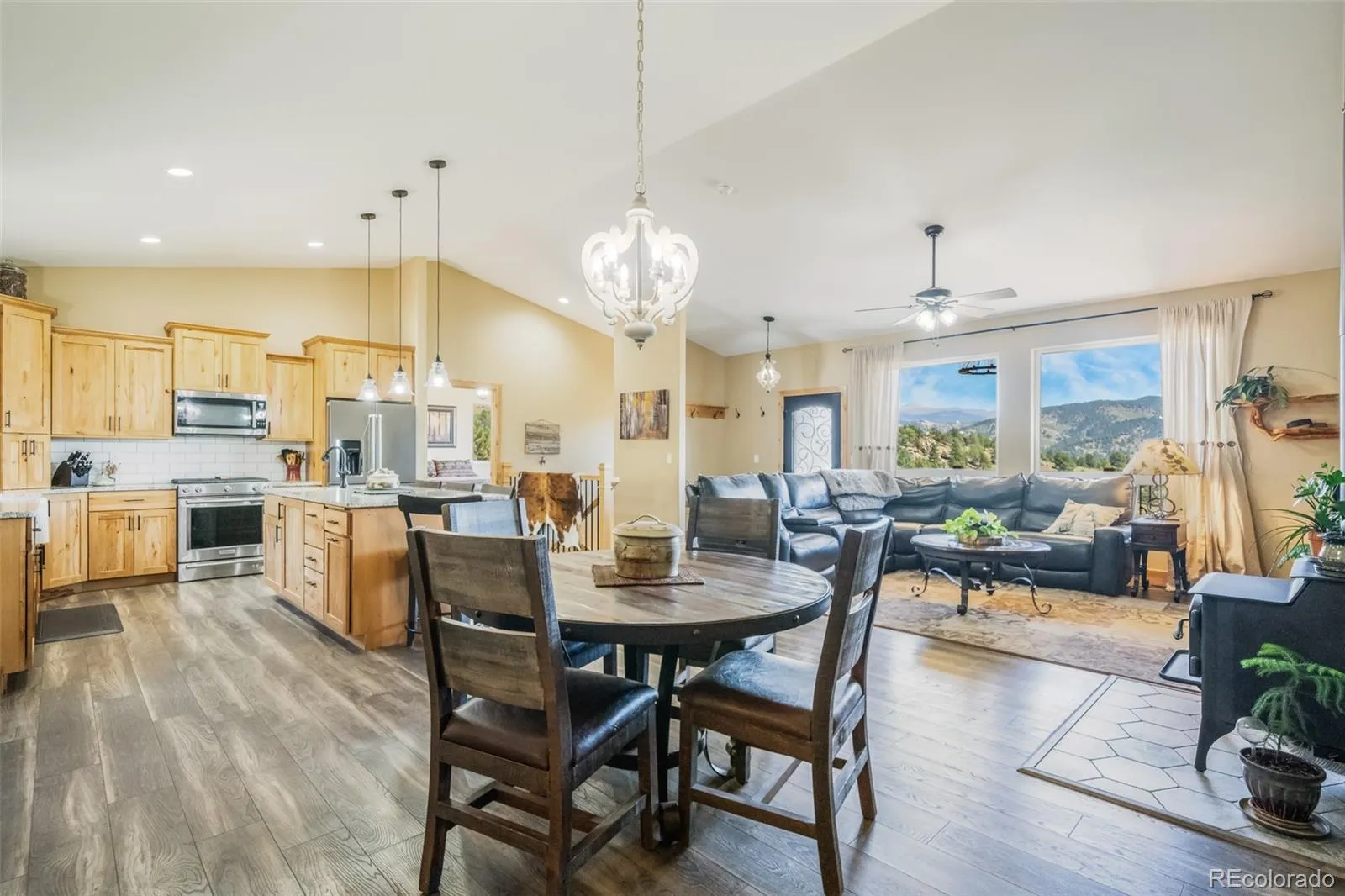Experience the essence of mountain living in this custom-built ranch-style home on 11.8 picturesque acres in Florissant, CO. Designed with comfort mountain style, this stucco home combines elegance with rugged beauty, perfectly complementing the natural surroundings. As you approach, you’ll be captivated by sweeping views of the iconic Pikes Peak and the striking rock outcroppings scattered across the property. The expansive acreage offers ample space for both leisure and livestock, complete with a barn featuring 2 stalls and multiple fenced pastures, ideal for equestrian enthusiasts or those seeking a hobby farm.