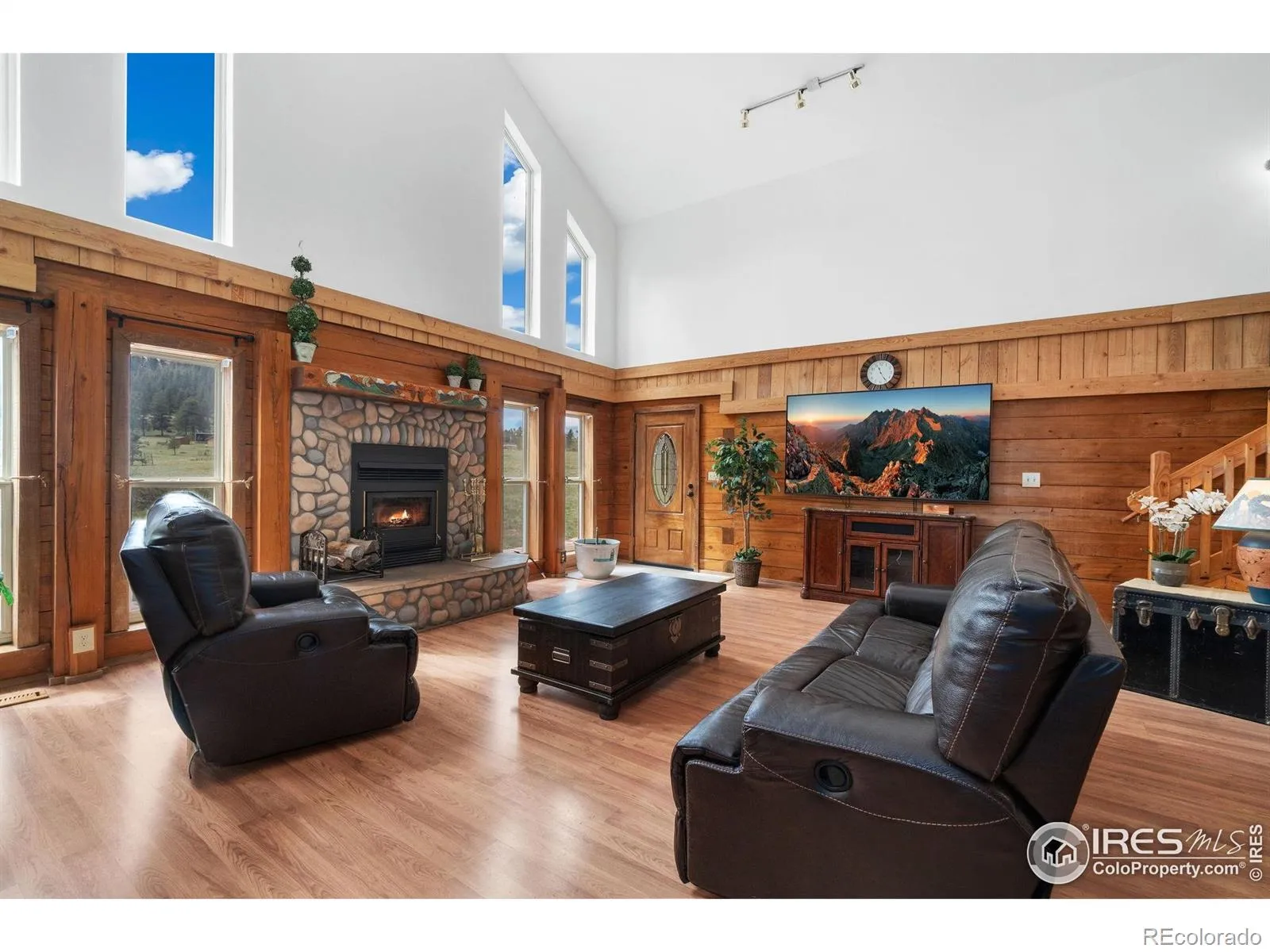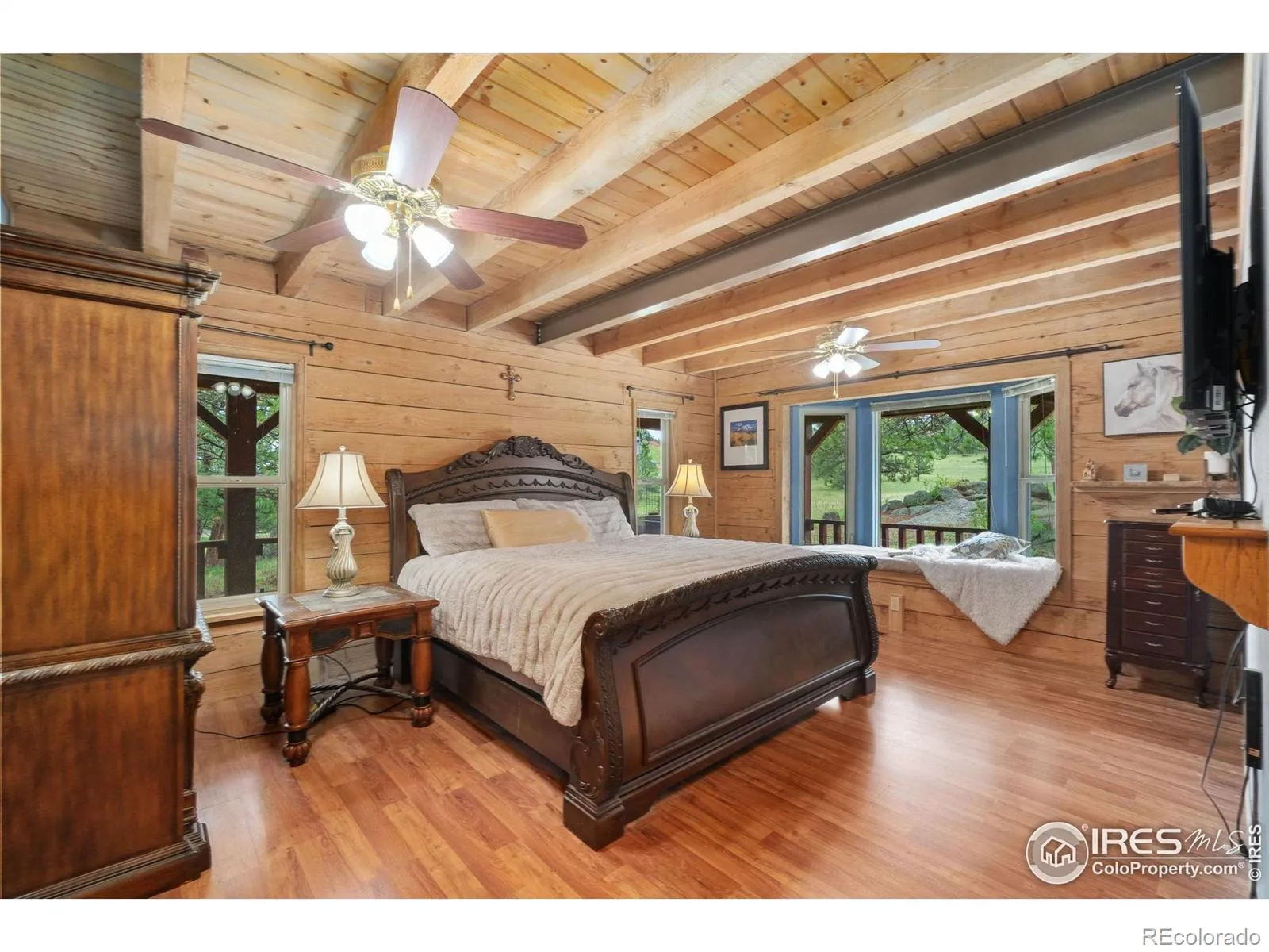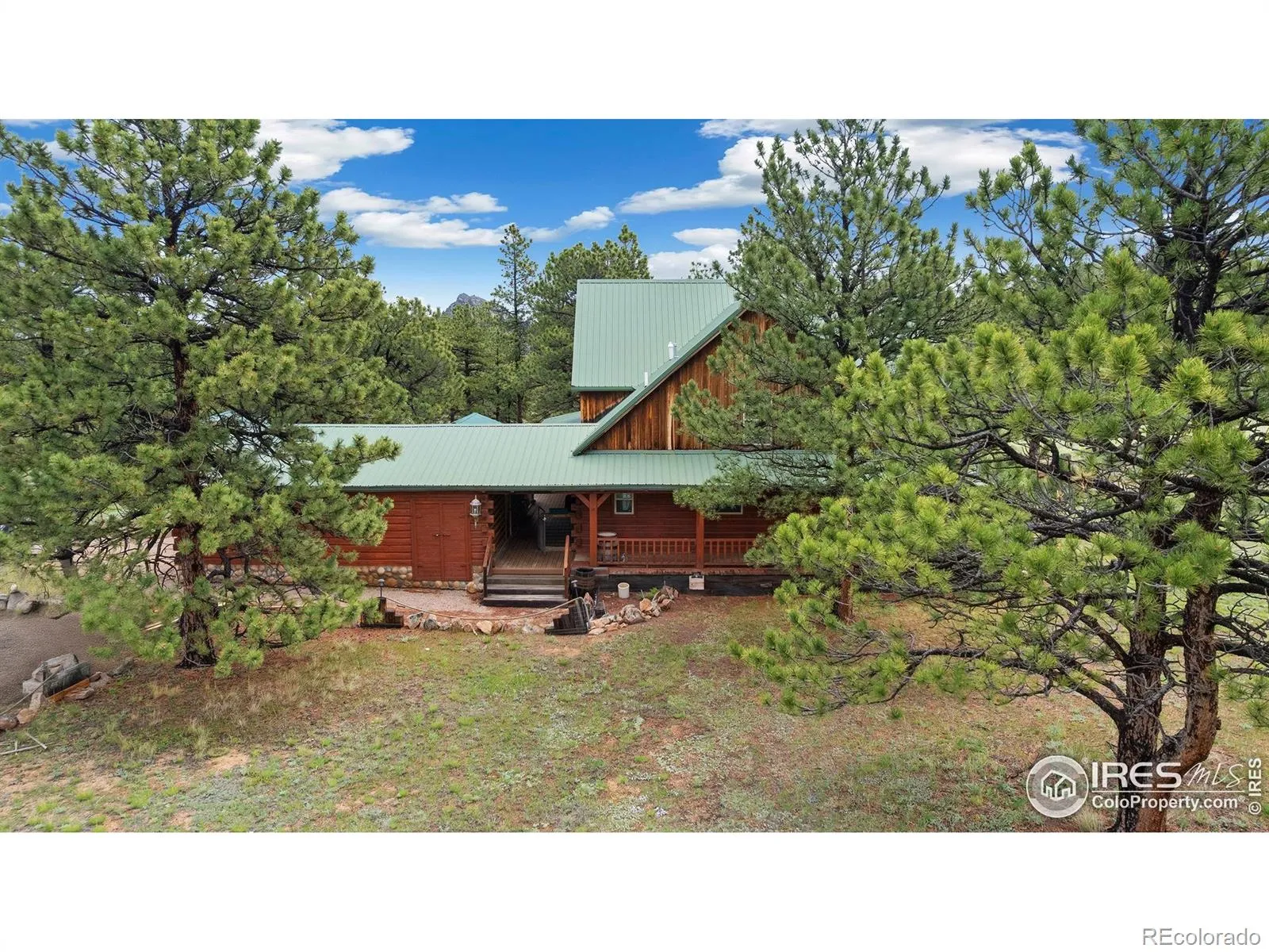 Experience the perfect blend of craftsmanship and natural beauty in this exceptional 4-bedroom, 3-bath custom log home nestled on 3.52 acres in the heart of Glacier View Meadows. Constructed with rare sinker cypress logs sourced from Mississippi trees, this 3,037 sq ft residence offers a unique and timeless appeal. Step inside to discover soaring cathedral ceilings and tongue-and-groove beamed ceilings that enhance the spacious living areas. The impressive great room features a handcrafted mantel and carved staircase timbers, adding to the home’s rustic charm. The spacious kitchen and dining area, adorned with timber ceilings, provide the perfect setting for gatherings. The master suite boasts a luxurious 5-piece bath and dual walk-in closets, offering a private retreat. A loft-style recreation room provides ample space to entertain. Enjoy the outdoors on the expansive wraparound deck, or relax in the hot tub under star-filled skies. The property also includes a heated 2-car garage, a shop/workout room, and a 20×24 pole barn, providing ample space for hobbies and storage. Located just 50 minutes from Fort Collins, this home offers easy access to hiking trails, fishing spots, and the amenities of Red Feather Lakes. The Glacier View Meadows HOA maintains roads, private community ponds, open spaces, and hiking trails, ensuring a well-kept and vibrant community. Don’t miss the opportunity to own this one-of-a-kind mountain retreat that seamlessly combines rustic elegance with modern comforts.
