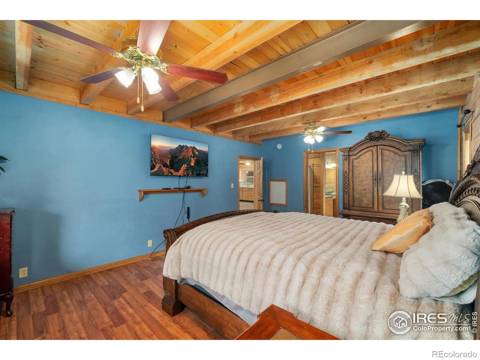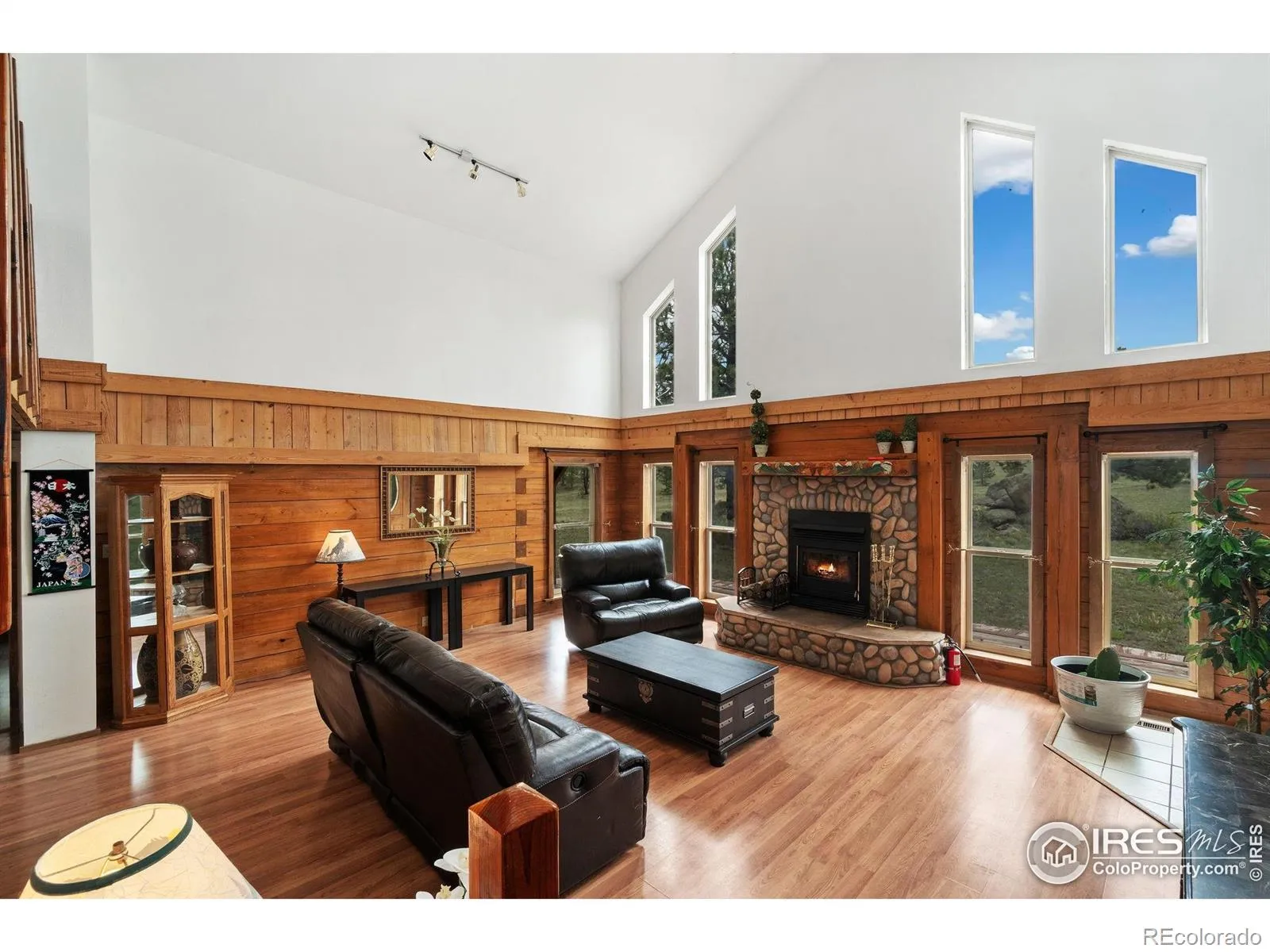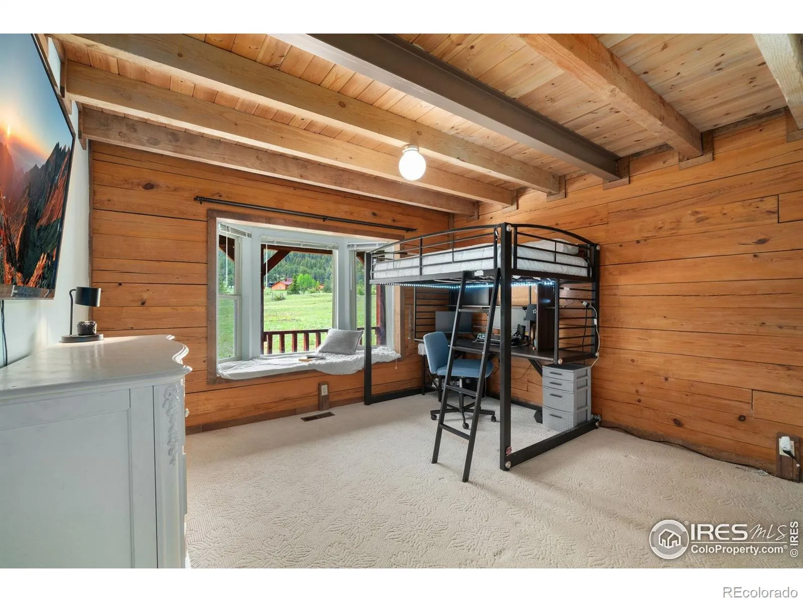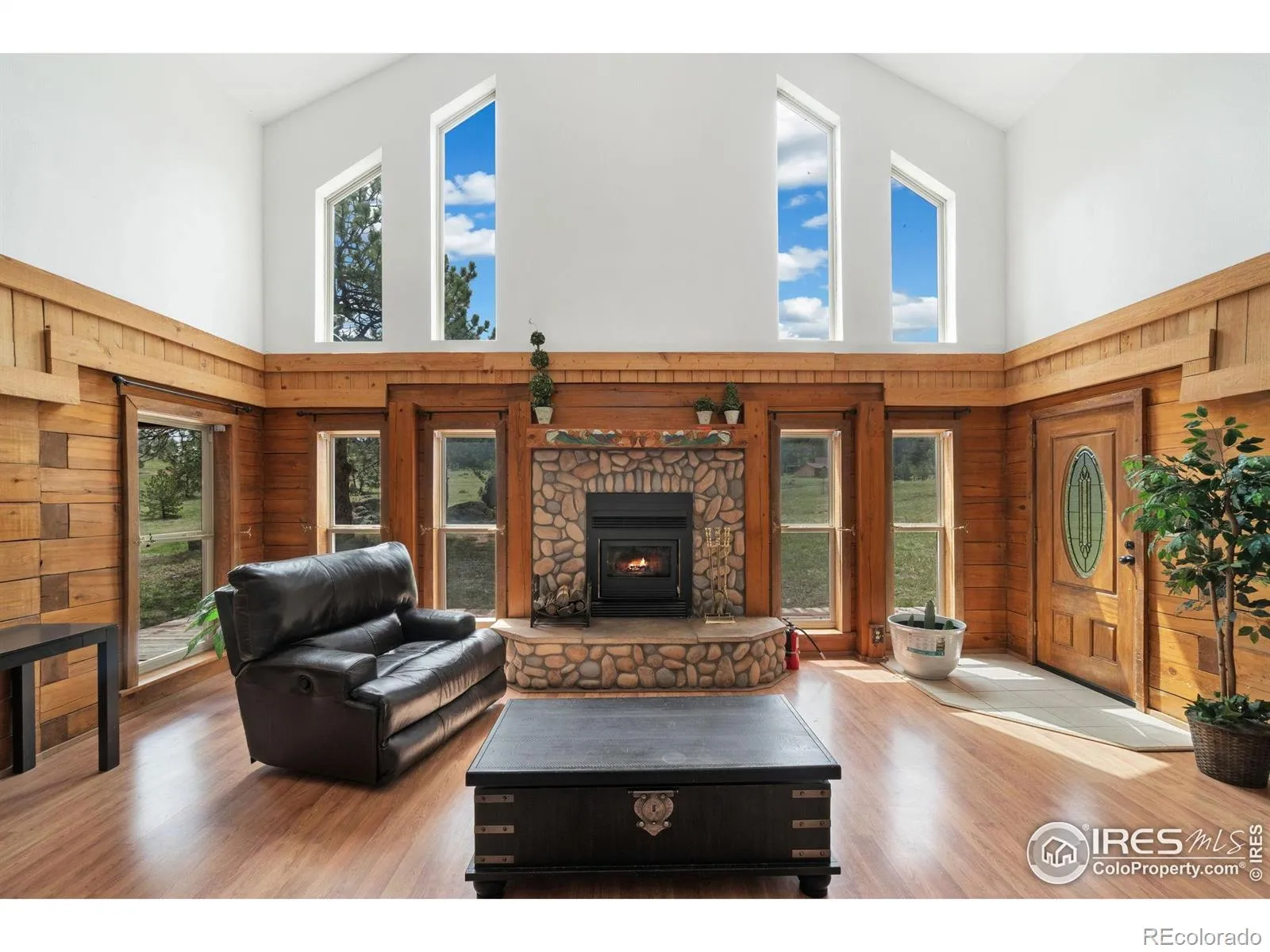 Experience the perfect blend of craftsmanship and natural beauty in this exceptional 4-bedroom, 3-bath custom log home nestled on 3.52 acres in the heart of Glacier View Meadows. Constructed with rare sinker cypress logs sourced from Mississippi trees, this 3,037 sq ft residence offers a unique and timeless appeal. Step inside to discover soaring cathedral ceilings and tongue-and-groove beamed ceilings that enhance the spacious living areas. The impressive great room features a handcrafted mantel and carved staircase timbers, adding to the home’s rustic charm. The spacious kitchen and dining area, adorned with timber ceilings, provide the perfect setting for gatherings. The master suite boasts a luxurious 5-piece bath and dual walk-in closets, offering a private retreat. A loft-style recreation room provides ample space to entertain. Enjoy the outdoors on the expansive wraparound deck, or relax in the hot tub under star-filled skies. The property also includes a heated 2-car garage, a shop/workout room, and a 20×24 pole barn, providing ample space for hobbies and storage. Located just 50 minutes from Fort Collins, this home offers easy access to hiking trails, fishing spots, and the amenities of Red Feather Lakes. The Glacier View Meadows HOA maintains roads, private community ponds, open spaces, and hiking trails, ensuring a well-kept and vibrant community. Don’t miss the opportunity to own this one-of-a-kind mountain retreat that seamlessly combines rustic elegance with modern comforts.