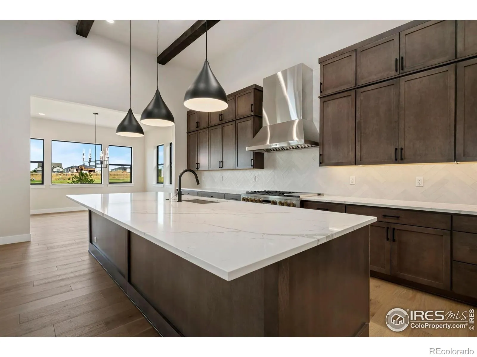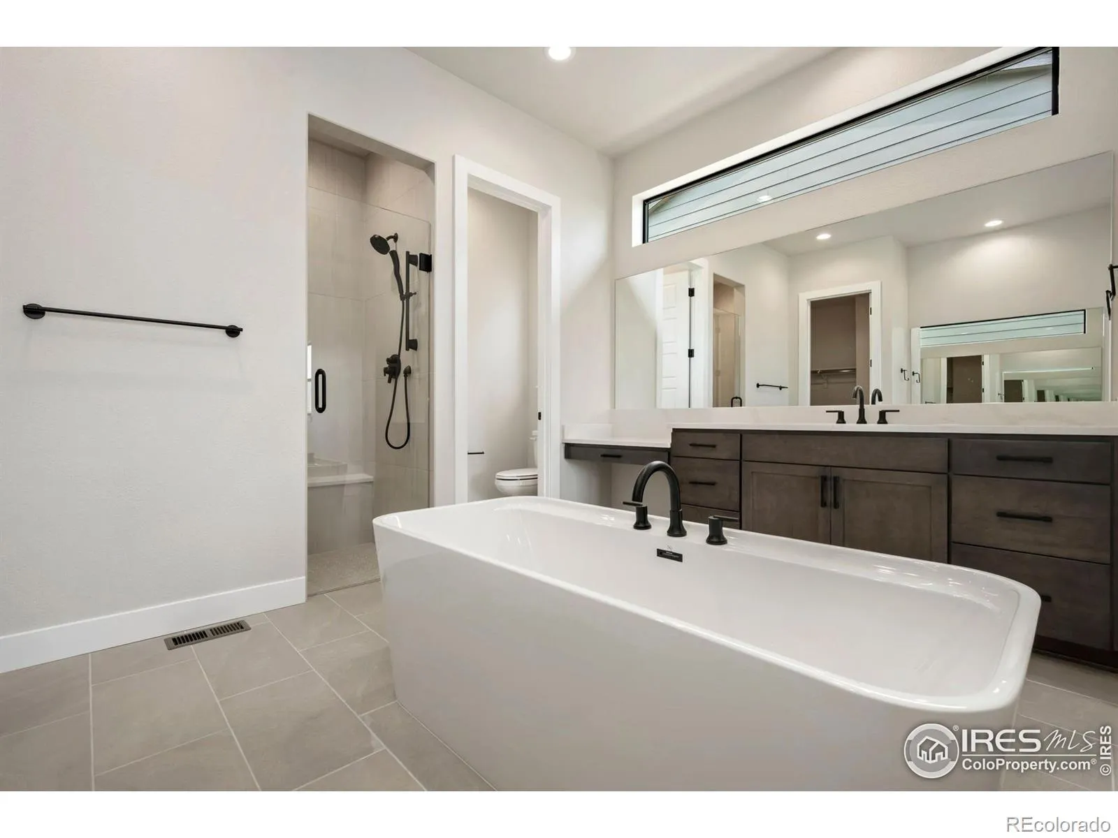 The stunning Modern Prairie Broadmoor at The Fairways in RainDance by Trumark Homes features an inviting porch. Beautiful single-story home offers 4,871 sq. ft. of finished space with 4 bedrooms and 4.5 baths. Past the entryway is a large great room and gourmet kitchen with a walk-in pantry and a prep island. Enjoy dusk-stained shaker-style cabinetry, Calacatta Laza countertops with tile backsplash, chef grade stainless steel appliance package, and decorative matte black fixtures. The great room, complete with stained ceiling beams and a modern linear gas fireplace, is filled with natural light and overlooks the covered outdoor deck to take in the stunning views of the high-plains links-style golf course at RainDance National. Down the hall you’ll find a second sitting room, spacious laundry with sink, and two bedrooms both with ensuite baths. Off the great room is the office with glass wall and door and contemporary grand suite, including a luxurious bathroom with two sinks, walk-in shower, and an elegant freestanding tub. An expansive walk-in closet completes the primary suite. The home also comes with natural stained engineered hardwood flooring throughout the main floor with luxurious carpet in bedrooms, spacious 10-foot ceilings on the main floor and the partially finished walkout basement is complete with wet bar, bedroom, bath and large rec room for entertaining with a sliding glass door and oversized private concrete patio. Eight- foot interior doors, insulated steel garage doors, tankless water heater, AC, front yard landscaping, golf cart garage, and more! Neighborhood amenities; trails, orchards, non-potable water, trash, included in your metro district fees. Membership to the Raindance pool is optional/currently $510/year; other options combining amenities in Raindance and Water Valley – “WaterDance”! Trumark Online Sales Counselor, Brooke Bails, can be reached at 720.556.8422 or [email protected]