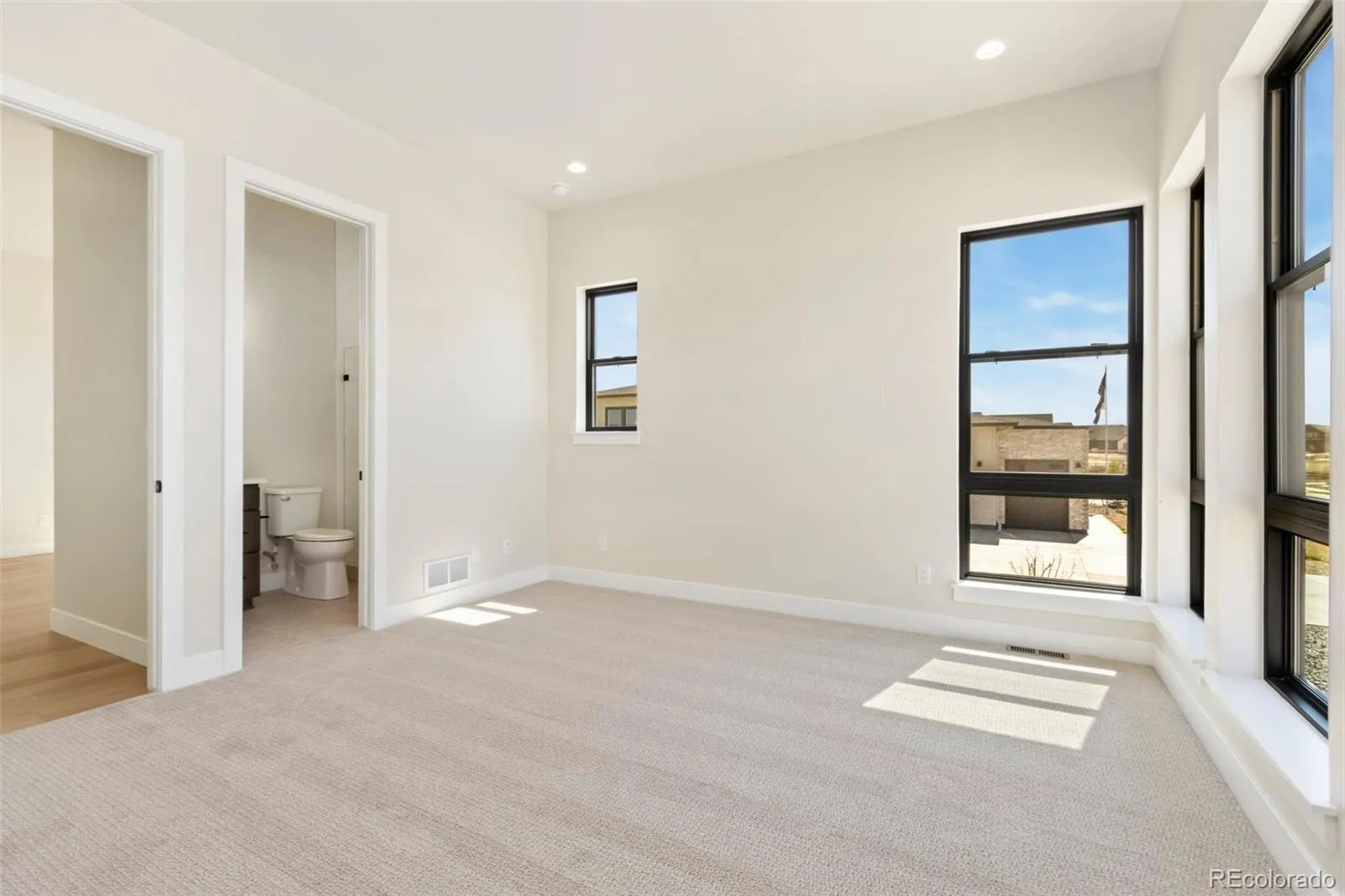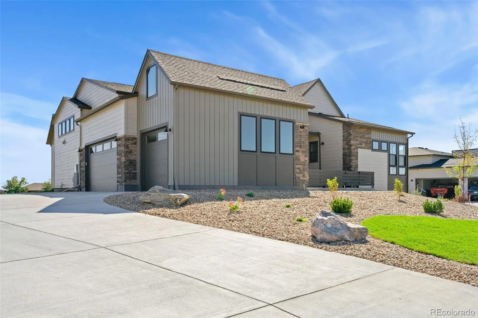 One of the last Alexandra’s at Acadia in RainDance by Trumark Homes, is a stunning, single-story home offering 4,710 finished sq.ft. with 4 bedrooms and 4.5 baths. Past the entry is the spacious great room with stained ceiling beams and contemporary fireplace with tile detail to the vaulted ceiling. The gourmet kitchen, featuring a walk-in pantry and an oversized center island, perfect for entertaining. The open kitchen includes dusk-stained shaker style with glass stacked cabinetry, Calacatta Classique quartz countertops with subway tile backsplash, Monogram/Electrolux stainless steel appliance package, and decorative matte black fixtures. A center-meet sliding glass door connects the light-filled dining room and great room to the covered outdoor east facing deck which features cedar tongue & groove ceiling detail, perfect for lazy afternoon gatherings. A dedicated office with a glass wall and door overlooks the covered deck. The primary suite features ample windows, a luxurious bathroom, walk-in shower, and an elegant freestanding tub. An oversized walk-in closet completes the primary suite. On the other side of the home, you’ll find a large laundry, flex room, and two secondary bedrooms, both with ensuite bathrooms. The finished basement includes a rec room with a wet bar, a fourth bedroom and full bath. The home comes with extensive 5″ plank natural stained engineered wood flooring throughout the majority of the main floor, black interior windows, hand trowel drywall finish, luxurious carpet in bedrooms, spacious 10-foot ceilings throughout the main level and basement, eight-foot interior doors, 3-car side-load garage with insulated steel doors, tankless water heater, AC, and much more. Situated on a 1-acre lot close to a neighborhood park and RainDance National Golf Club. Optional Raindance pool amenity.