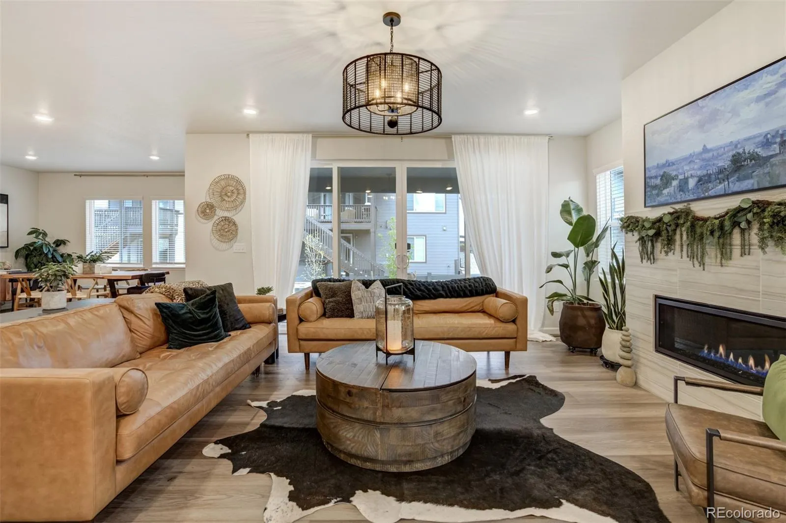 Step into this impeccably upgraded 4-bedroom, 4-bathroom home in The Canyons—better than new and truly move-in ready. With over $40,000 in enhancements, including full landscaping, custom outdoor living features, and window coverings throughout, this home offers more than what you’d expect. Landscaped and meticulously maintained, this home has a 2-car garage and an ideal location within walking distance to the neighborhood coffee shop, park, and pool. Inside, you’ll find an open-concept layout with 9-foot ceilings and luxury vinyl plank flooring throughout the main level. The spacious living room is filled with natural light and features a sleek electric fireplace (no maintenance required), a modern light fixture, and access to an extended covered patio and generous backyard—already complete with lush grass, raised garden beds, and a concrete patio ready for summer gatherings. The kitchen is a chef’s dream with quartz countertops, a large center island with breakfast bar, a pantry, and stainless steel appliances including a gas range. A bright dining area sits just off the kitchen—perfect for everyday meals or hosting. A hallway off the main living space leads to a convenient half bath and access to the finished garage. Upstairs, a spacious loft provides flexible space for a playroom, office, or media area. The primary suite includes an ensuite bathroom with dual vanity, walk-in shower, and a huge walk-in closet. Two additional bedrooms and a full bathroom with dual vanity complete the upper level. The finished basement adds even more versatility with a large family room, a fourth bedroom, full bathroom, and extra storage space. Why wait and spend thousands more on landscaping and interior finishes when you can have it all, right now? This thoughtfully designed home combines space, style, and convenience in one of the area’s most sought-after communities. Don’t miss your chance to own a truly turnkey home that outshines the competition—schedule your showing today!