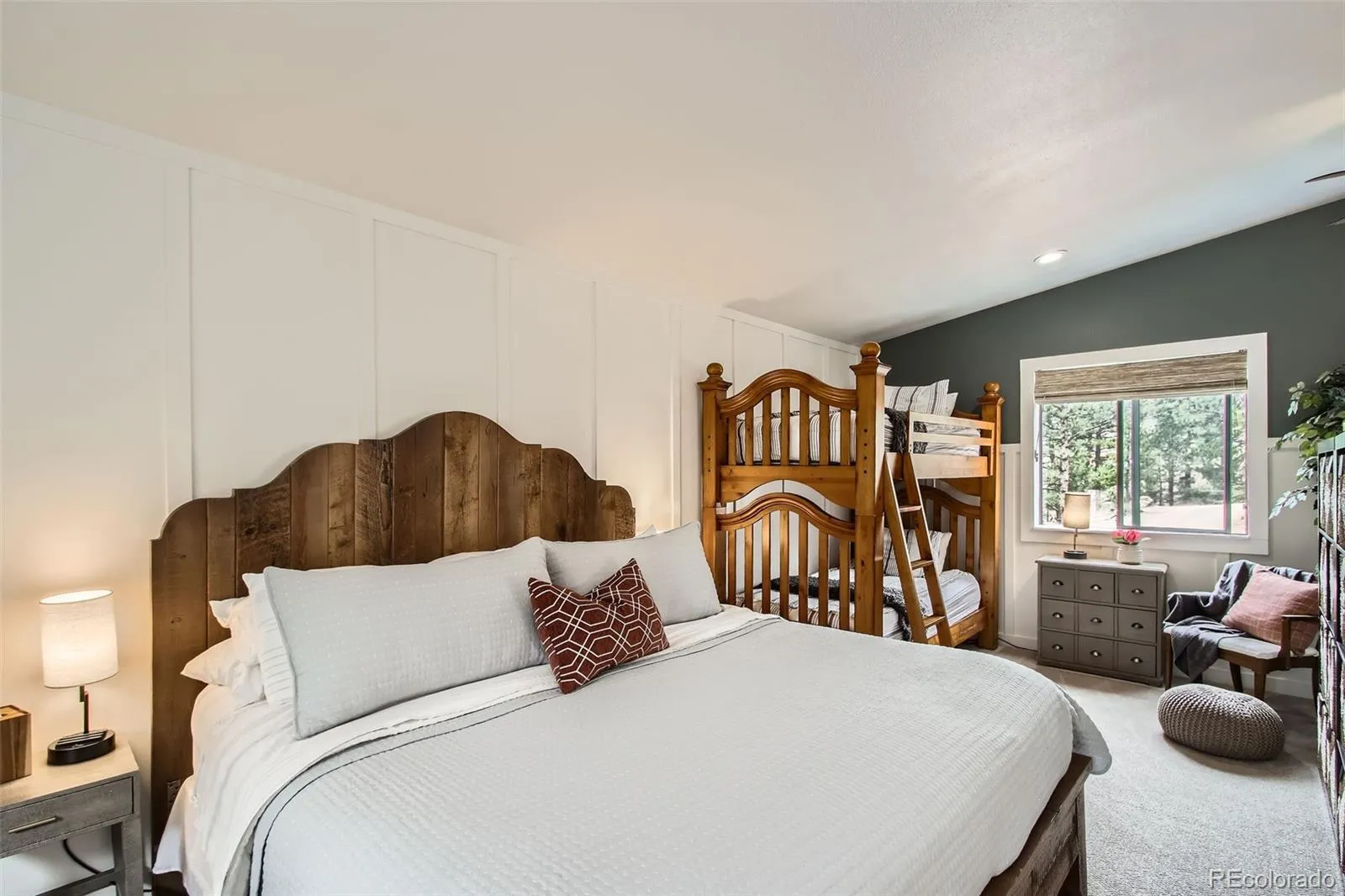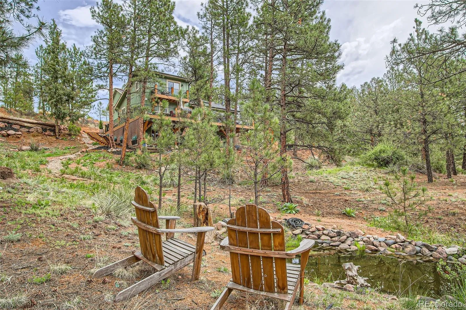 Experience the magic of mountain living in this exceptional custom retreat, where character, charm, and breathtaking views come together to create a truly unforgettable home! Tucked away in a peaceful neighborhood, this one-of-a-kind property is ideally located just 3/4 mile from the scenic Pine Valley Ranch Park, offering immediate access to a “mountain” of outdoor adventures. Whether your passion is hiking, mountain biking, fly fishing, snowshoeing, or simply enjoying miles of serene trails and picnic spots, nature is quite literally at your doorstep. Set on nearly 4 acres of gently rolling terrain with dramatic rock outcroppings and daily wildlife sightings, this property offers both tranquility and wonder. The 3281 sf residence includes not one, but two living areas-making it perfect for multi-generational living, hosting guests, or generating additional income. The main home welcomes you into a spacious, sunlit great room, where the kitchen, dining and living room flow seamlessly together – anchored by cozy window seats and a new gas fireplace. Step outside onto the expansive wraparound deck to soak in sweeping mountain views that will leave you speechless. Just a half level up are two generously sized bedrooms, each with vaulted ceilings and custom closets, separated by a full bathroom. Upstairs, the private primary suite features its own private deck, vaulted ceiling and a convenient attached bath. The walk-out basement is warm and welcoming, full of natural character, offering a charming family room, wet bar, private office, bedroom, an updated bathroom and laundry. The non-permitted attached ADU (Alternative Dwelling Unit) has been fully renovated and offers a large bonus room, bathroom, kitchen and laundry. The outdoor areas include, patios, fire pit areas, a barn and storage sheds. Whether you are seeking a private sanctuary, an investment property, or a place where adventure meets serenity, this remarkable mountain home is ready to welcome you!