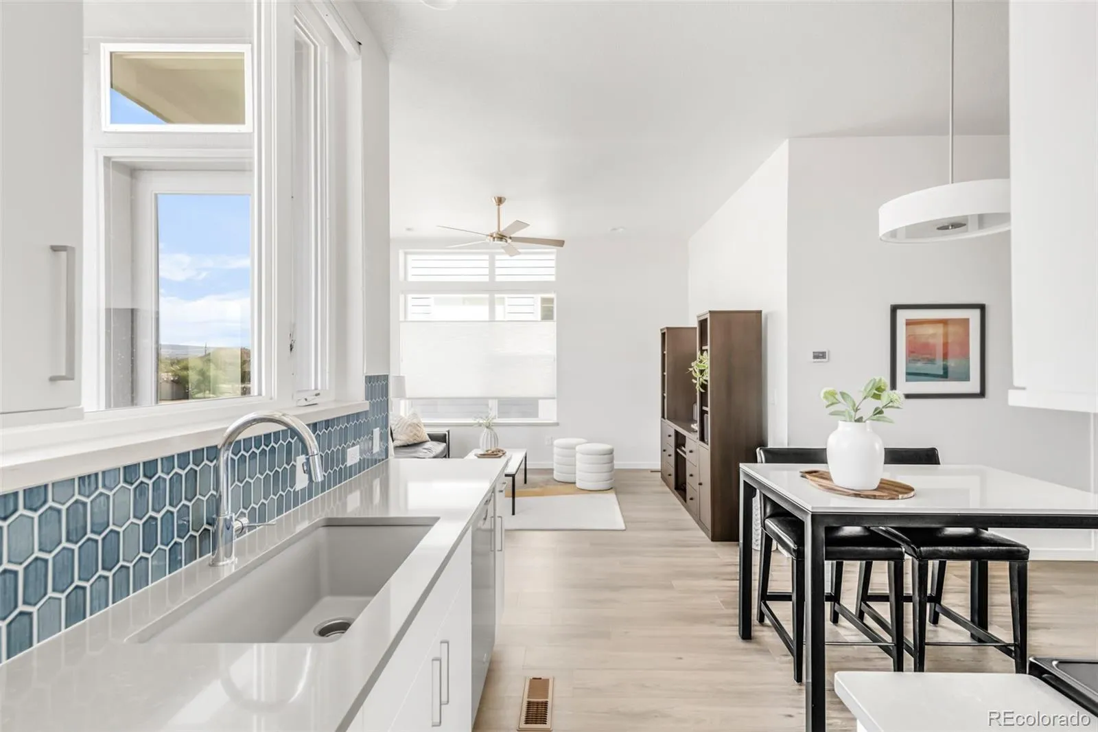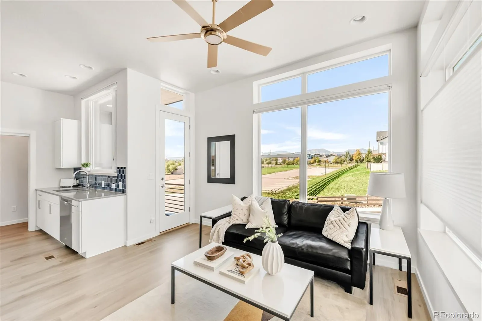 Discover refined, low-maintenance living in this nearly new, impeccably maintained townhome nestled within the Blue Sage community. Featuring a contemporary side-by-side duplex design, this residence boasts expansive windows framing breathtaking Front Range views and glowing evening sunsets from the upper deck. A fenced, landscaped front yard leads into an open-concept layout flowing with LVP flooring throughout. Upstairs, an elegant kitchen flaunts stainless steel appliances and a pantry with a pocket door and Elfa closet system. The main-level bedroom offers an en-suite bath, while the upper-level bedrooms feature walk-in closets with Elfa closet systems for elevated organization. A main-level drop zone/mudroom provides direct access to the attached two-car garage. Surrounded by paths leading to Waneka Lake, Hecla Lake and the Coal Creek Trail, and just moments from downtown Lafayette and Louisville, this is the perfect lock-and-leave haven in a coveted community.
