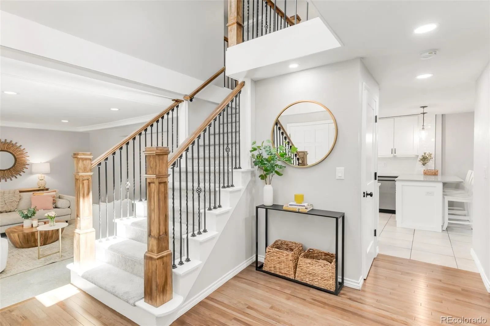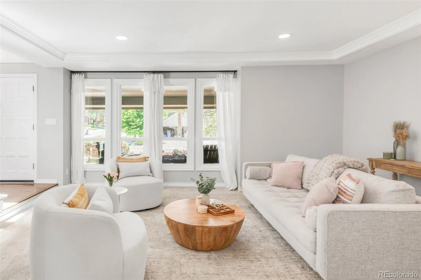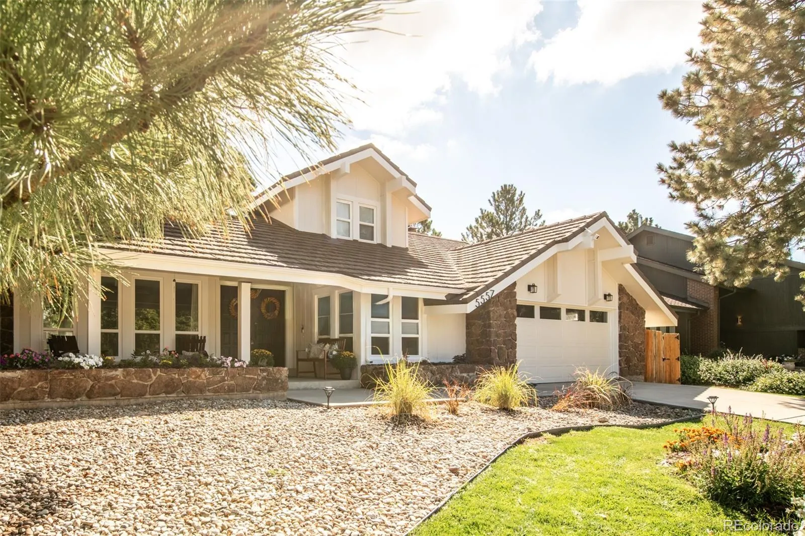 Timeless style and modern comfort are showcased throughout this beautifully updated home tucked in the coveted Heritage Greens community. An inviting covered front porch welcomes you into sunlit interiors, where all new windows, updated flooring and fresh paint enhance every corner. The formal living room flows into an elegant dining area, ideal for entertaining. A sleek kitchen features stainless steel appliances, all-white cabinetry and a peninsula with bar seating. The adjacent living area exudes warmth with a brick fireplace framed by custom built-ins. Upstairs, the generous primary suite impresses with vaulted ceilings, a large walk-in closet and a spa-like, 5-piece bath, while three additional bedrooms provide flexibility. The finished walkout basement adds a spacious rec room and a flexible fifth bedroom. Enjoy outdoor living in the expansive, fenced backyard with a deck and patio. Community amenities include a clubhouse, pool, 4 tennis courts, sand volleyball, soccer field, and ample open space — truly resort-style living. South Suburban golf course is steps away from this bubbling, active community, as well as Linksview Park.